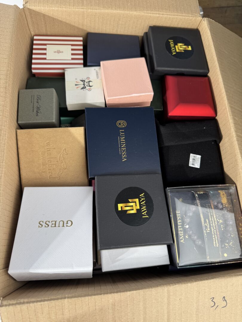 Fort ensemble d'environ 155 bijoux fantaisie comprenant boucles d'oreilles, collier, bracelet, bagues, barettes,… Diverses marques dont EMMA & CHLOE, LES FABULEUSES, AGAPEE, SWAROVSKI, TOMMY HILFIGER, KARL LAGERFELD, JAWAYA, LES BASILES, FRAGMENT, HAPPY BULLE, GRAZIE, LES GEORGETTES,.. En l'état