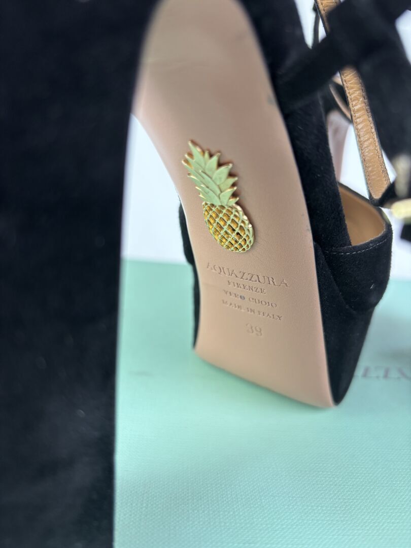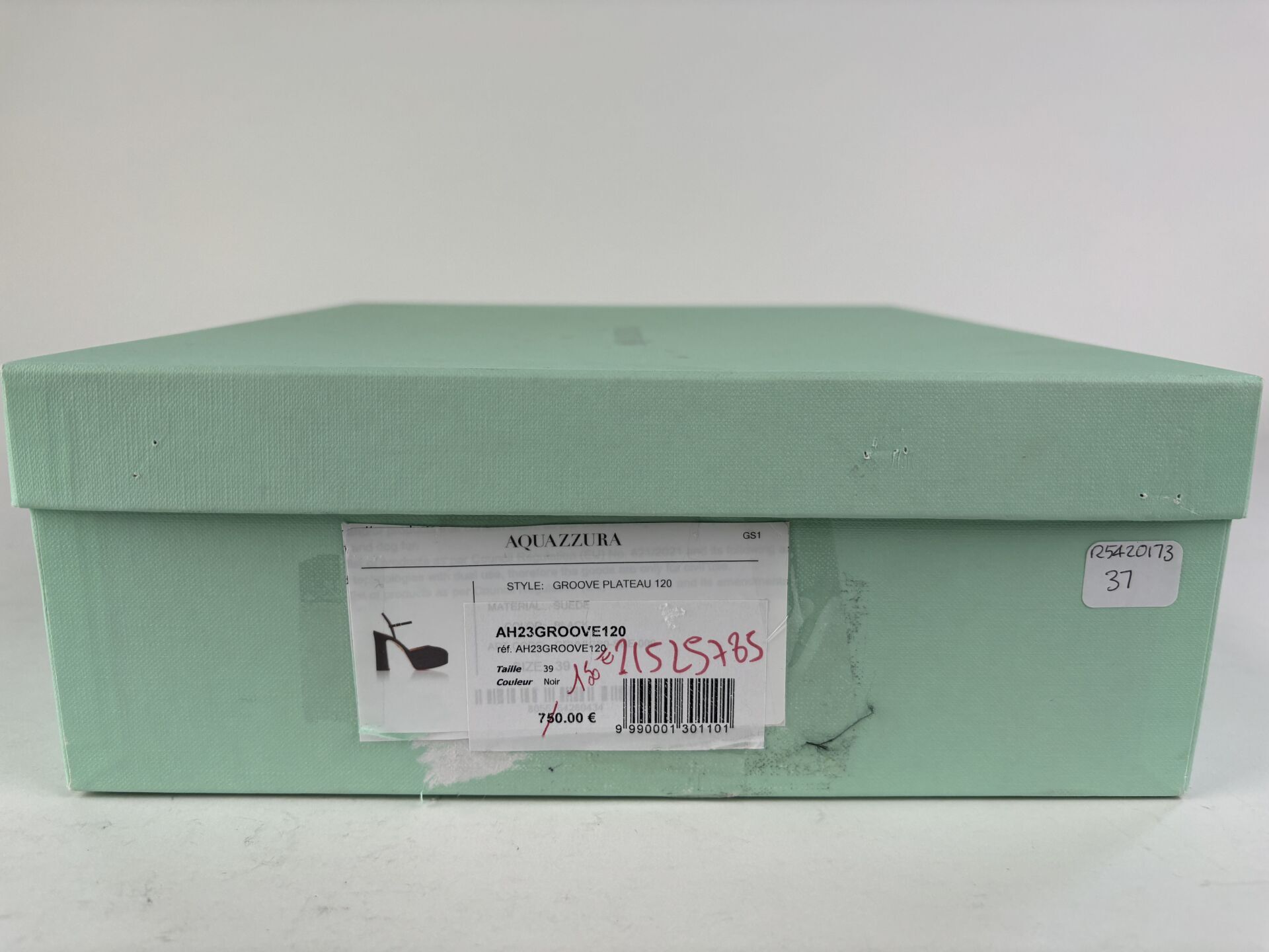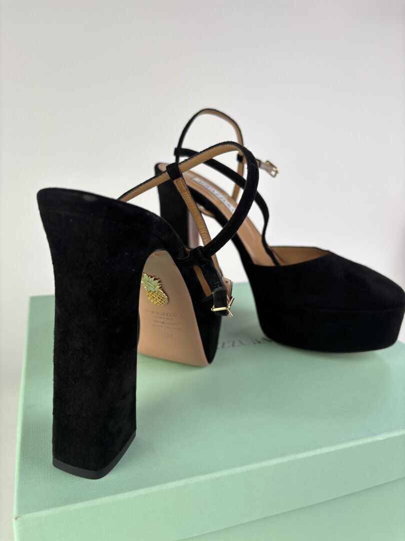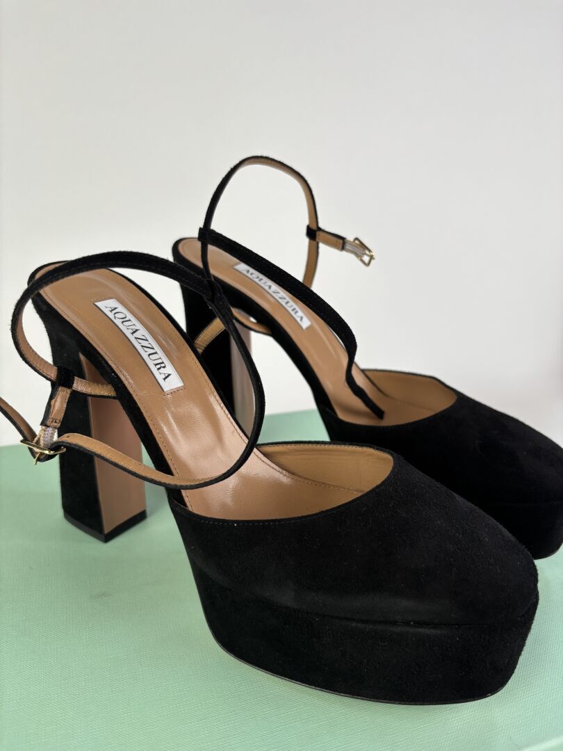 AQUAZZURA - Paire d'escarpins en daim noir, plateforme. Pointure 39 - Haut. du talon : 12,5 cm (très bon état)