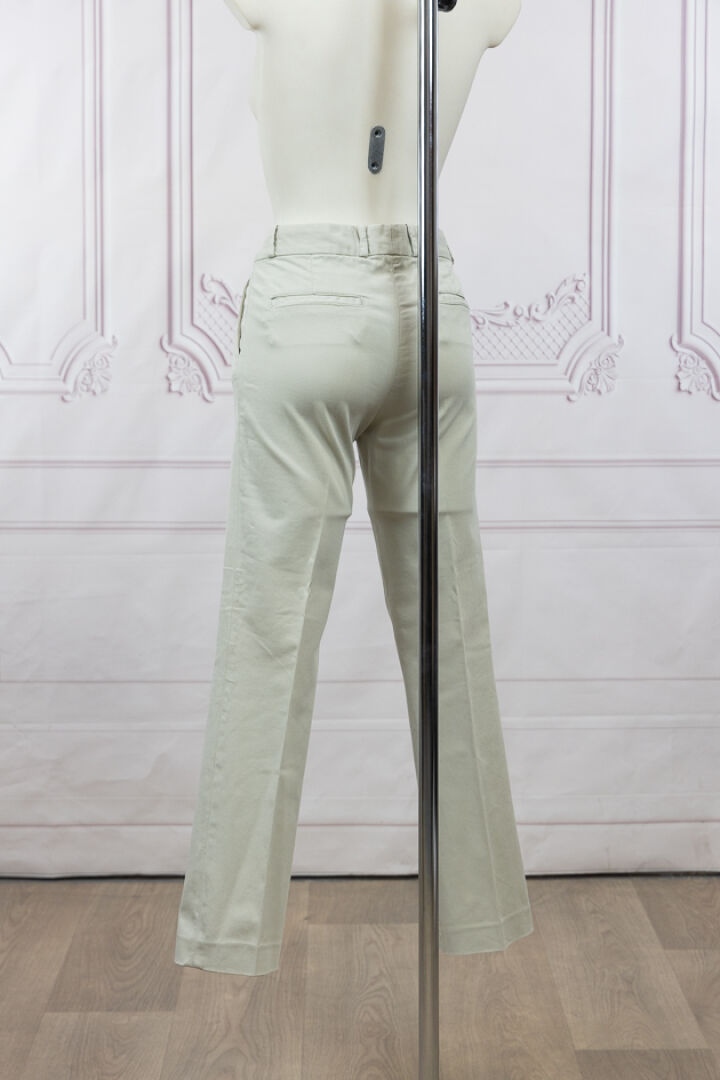 JOSEPH. Pantalon droit en gabardine de coton gris clair à 4 poches. Taille 34. Déjà porté (étiquette décousue).