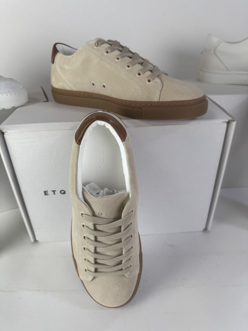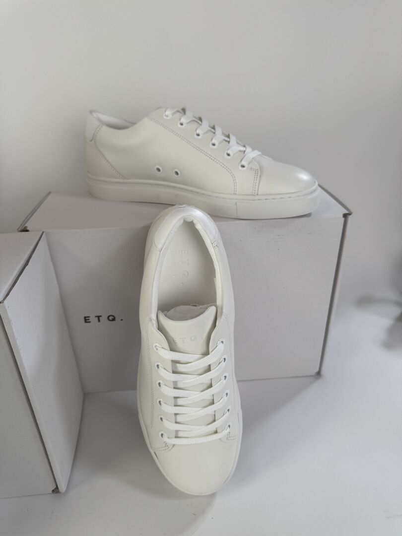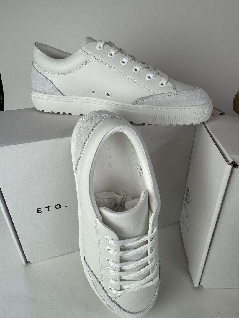 ETQ - Ensemble de trois paires de sneakers, cuir blanc et beige. Pointure 41 (Etat magasin)