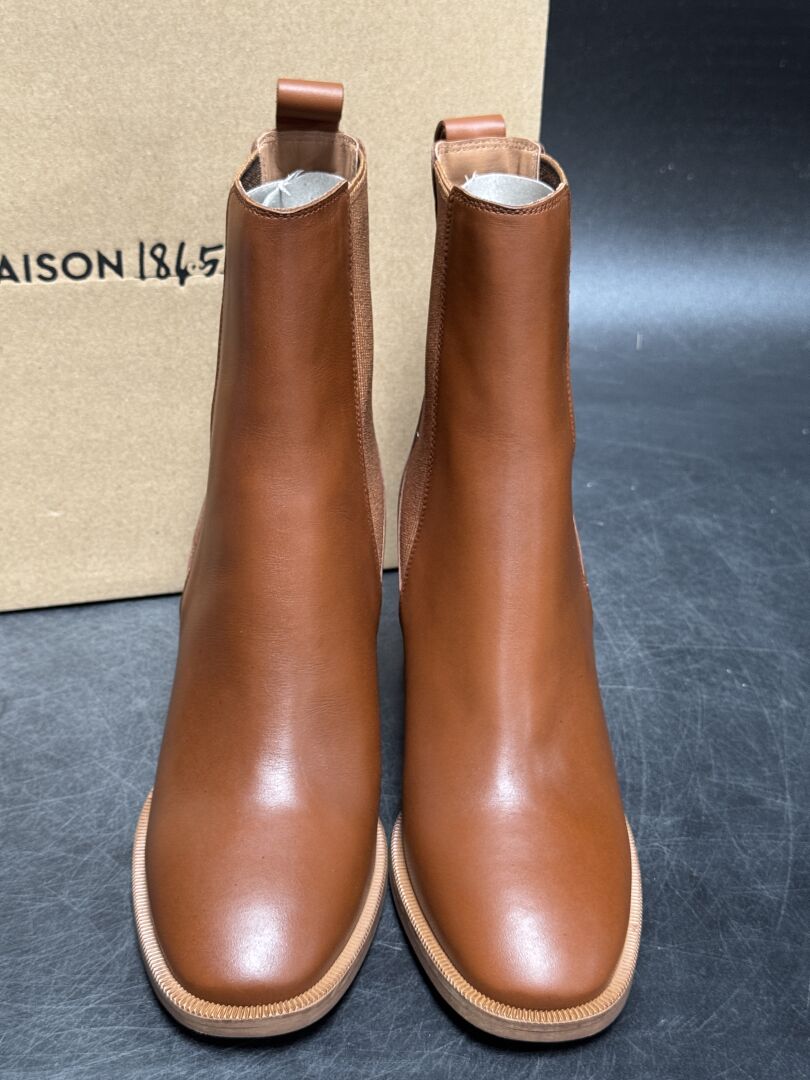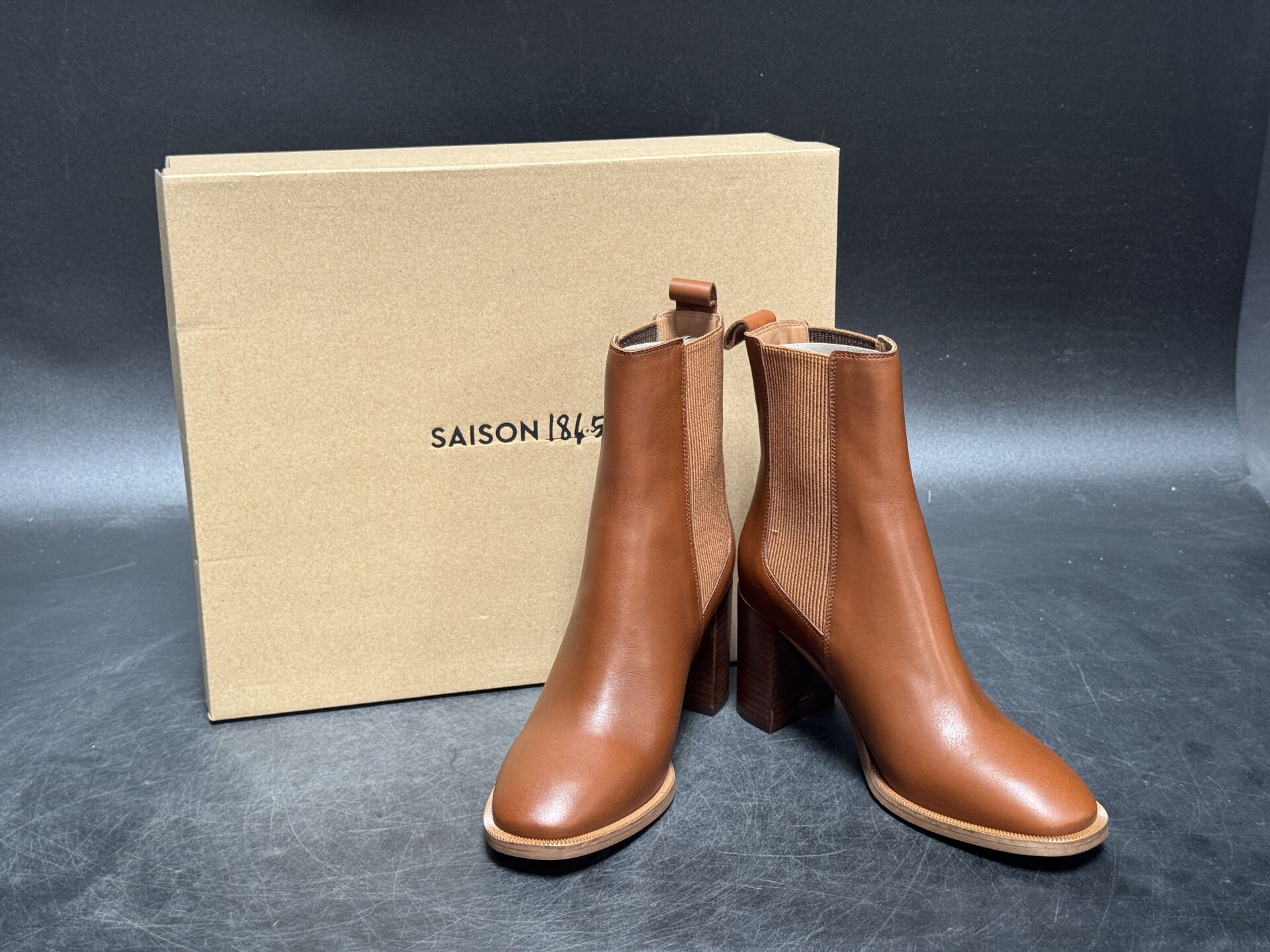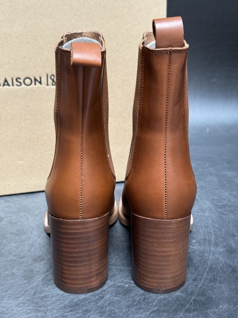 SAISON 1845 - Paire de bottines montantes, cuir marron, petit talon. Dans leur boite. Pointure 36 - Haut. Du talon : 7 cm Etat magasin