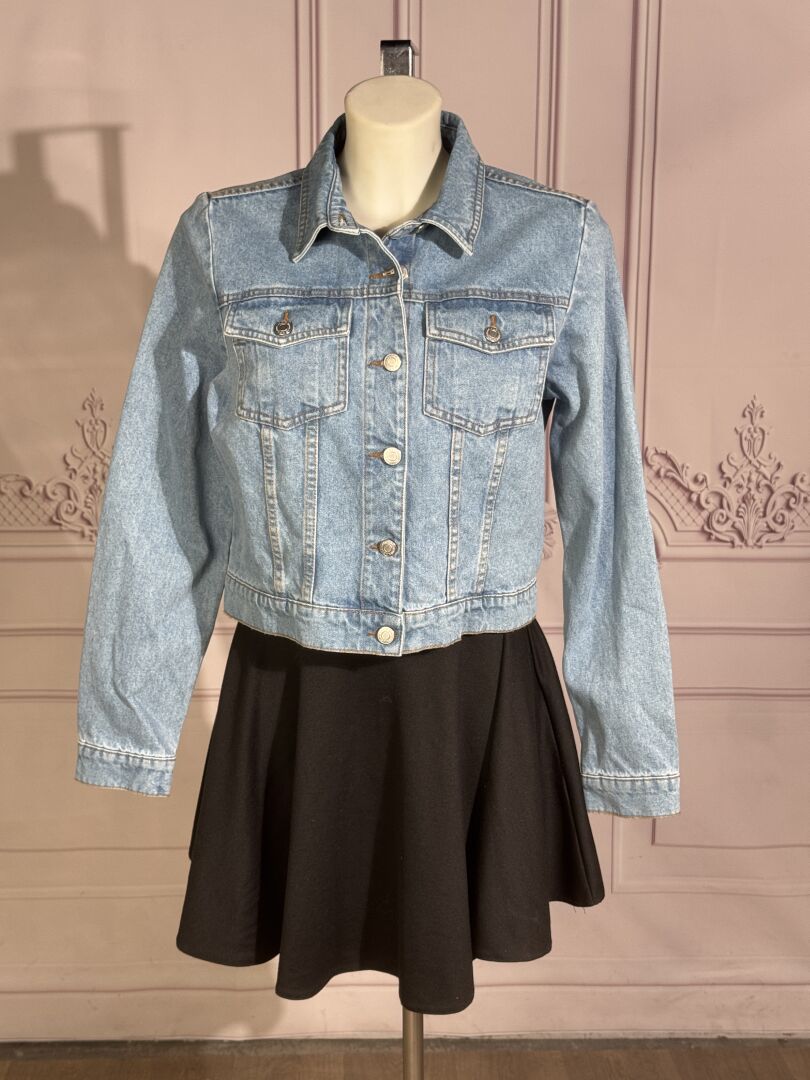 IKKS - Veste courte en denim bleu clair, boutonnage métal chromé. Taille M Etat magasin