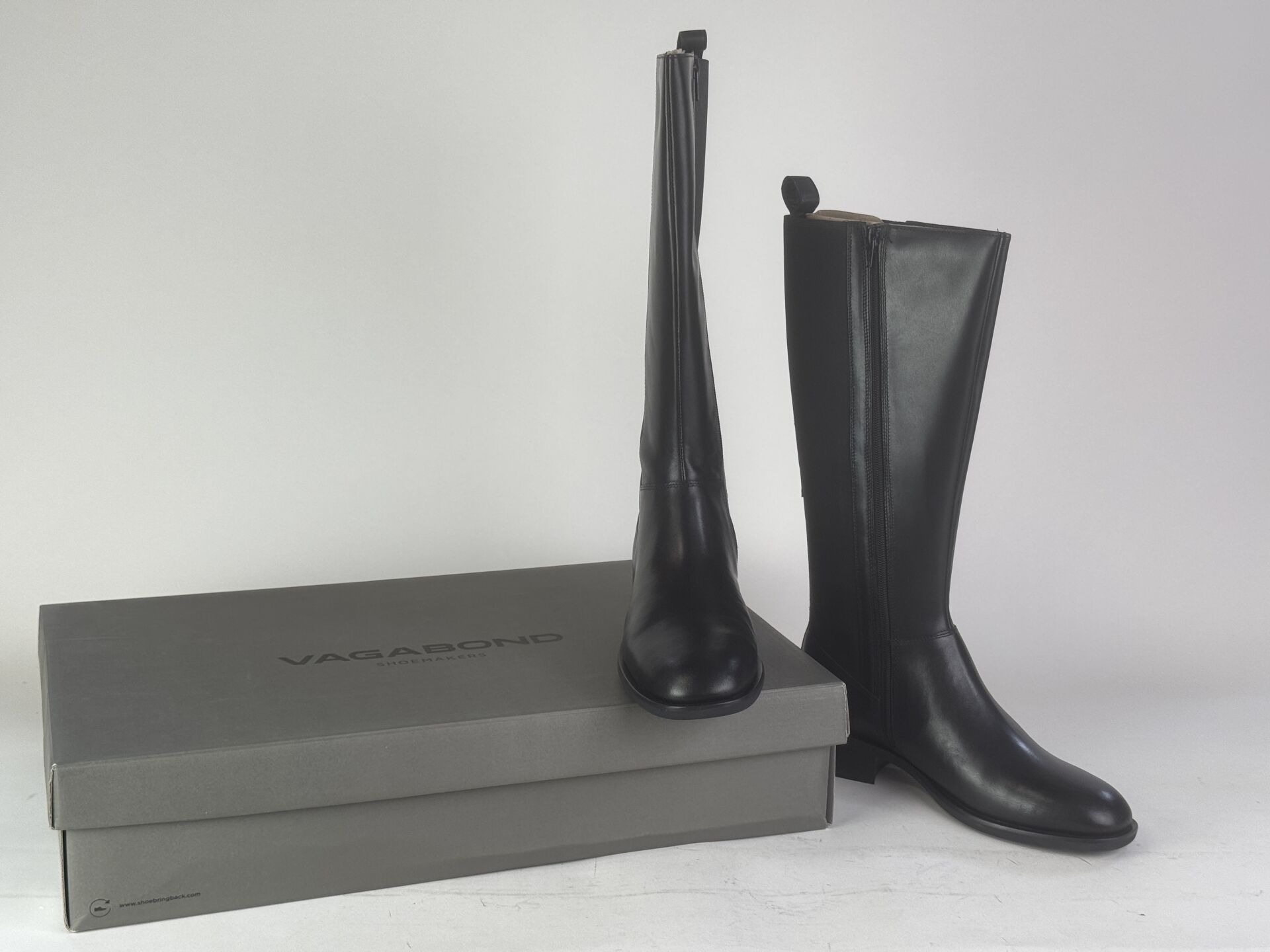 VAGABOND - Paire de bottes en cuir noir, fermeture zip latéral. Pointure 39 (Etat magasin)