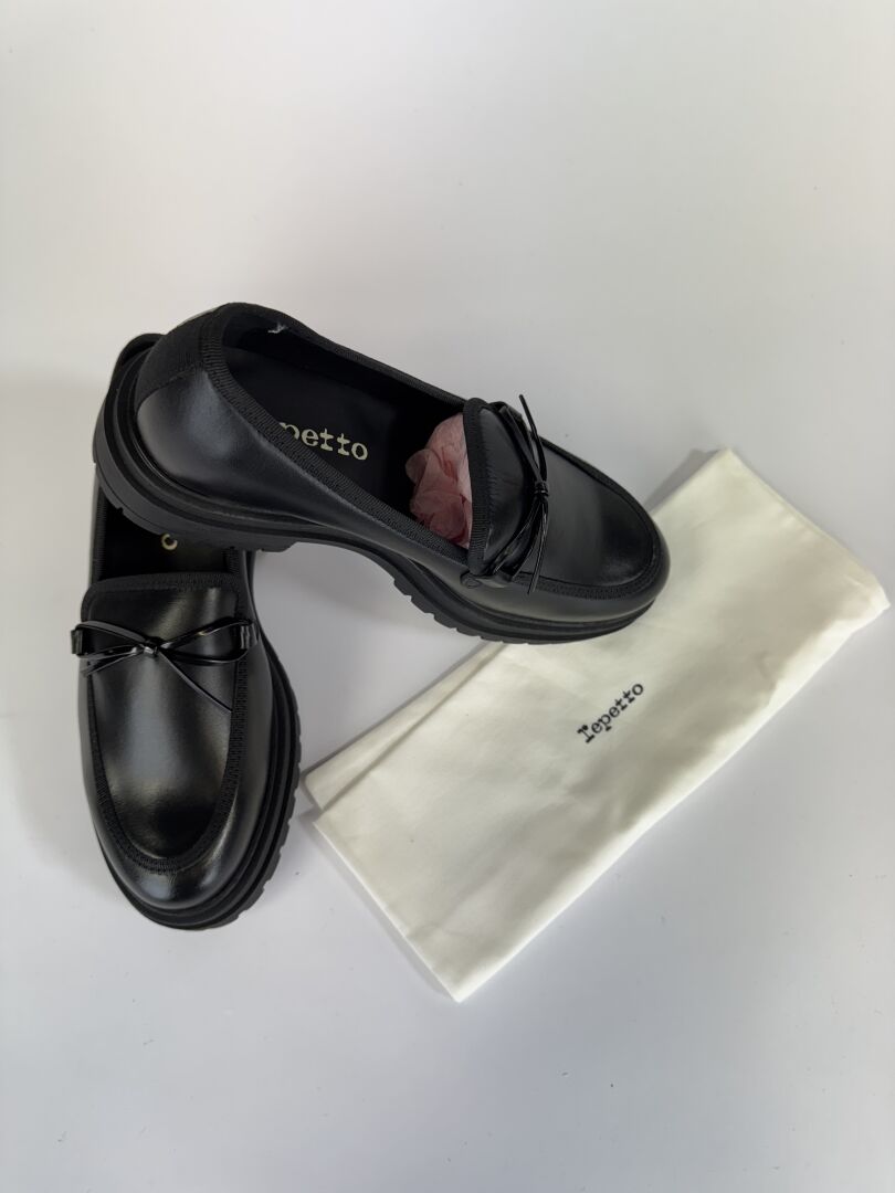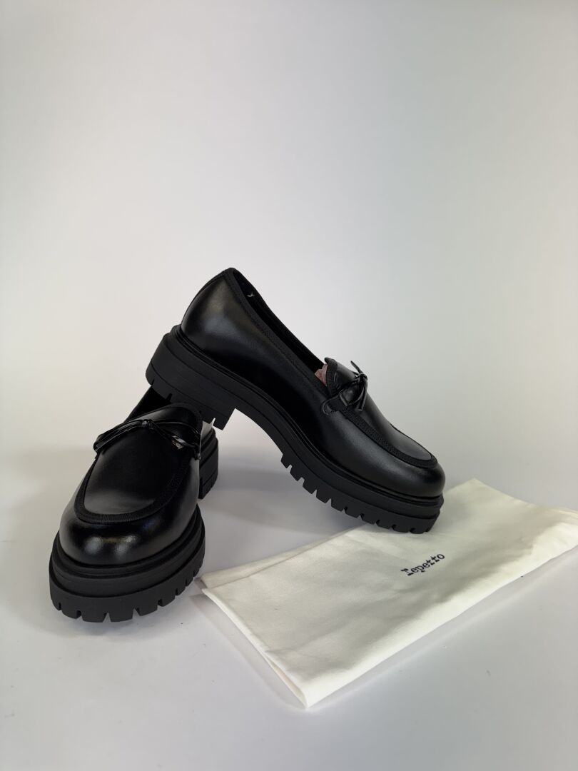 REPETTO - Paire de mocassins modèle "Gil Chunky" en cuir noir. Dans leur boite. Pointure 37 Etat magasin