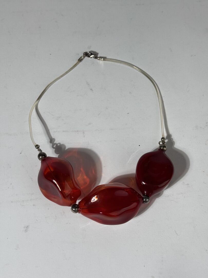 ANTICA MURRINA - Collier fantaisie, trois gouttes de verre de Murano soufflé rouge. Dans leur boite