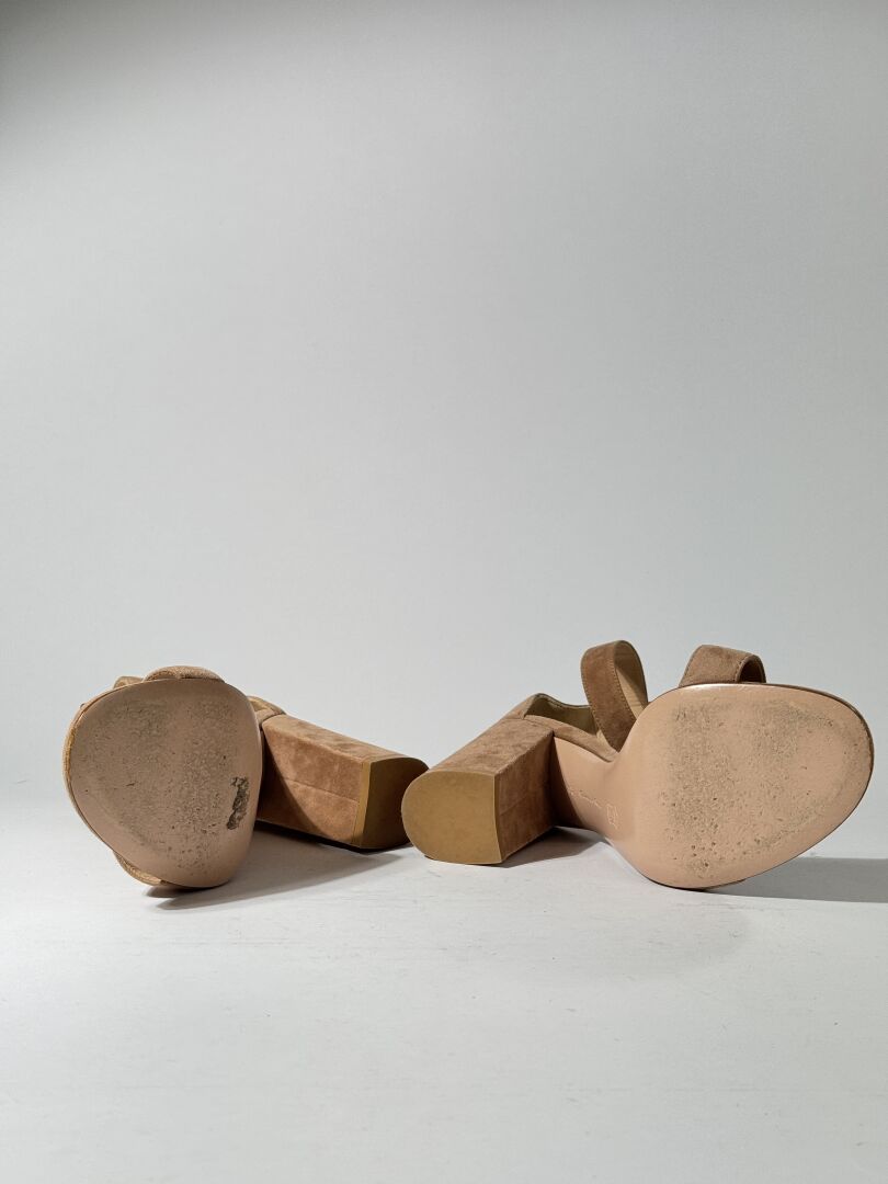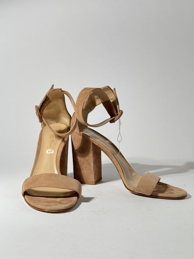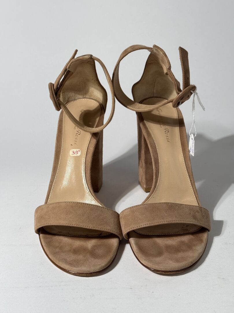 GIANVITO ROSSI - Paire de sandales à talons, cuir beige. Pointure 39 - Haut. du talon : 10 cm (déjà portées, très bon état général)