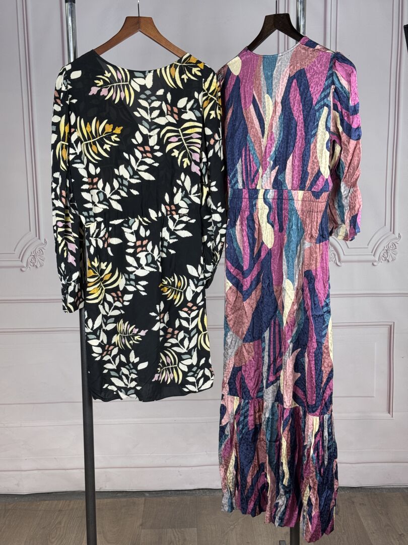 BA&SH - Ensemble de 2 robes comprenant : - Robe "Cassie" noir imprimée de feuillages ; - Robe "Wina" mi longue, multicolore. Taille 1 (déjà portées, très bon état)