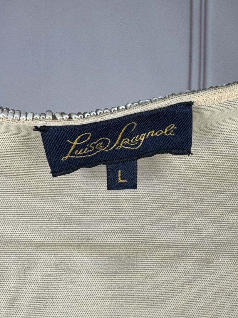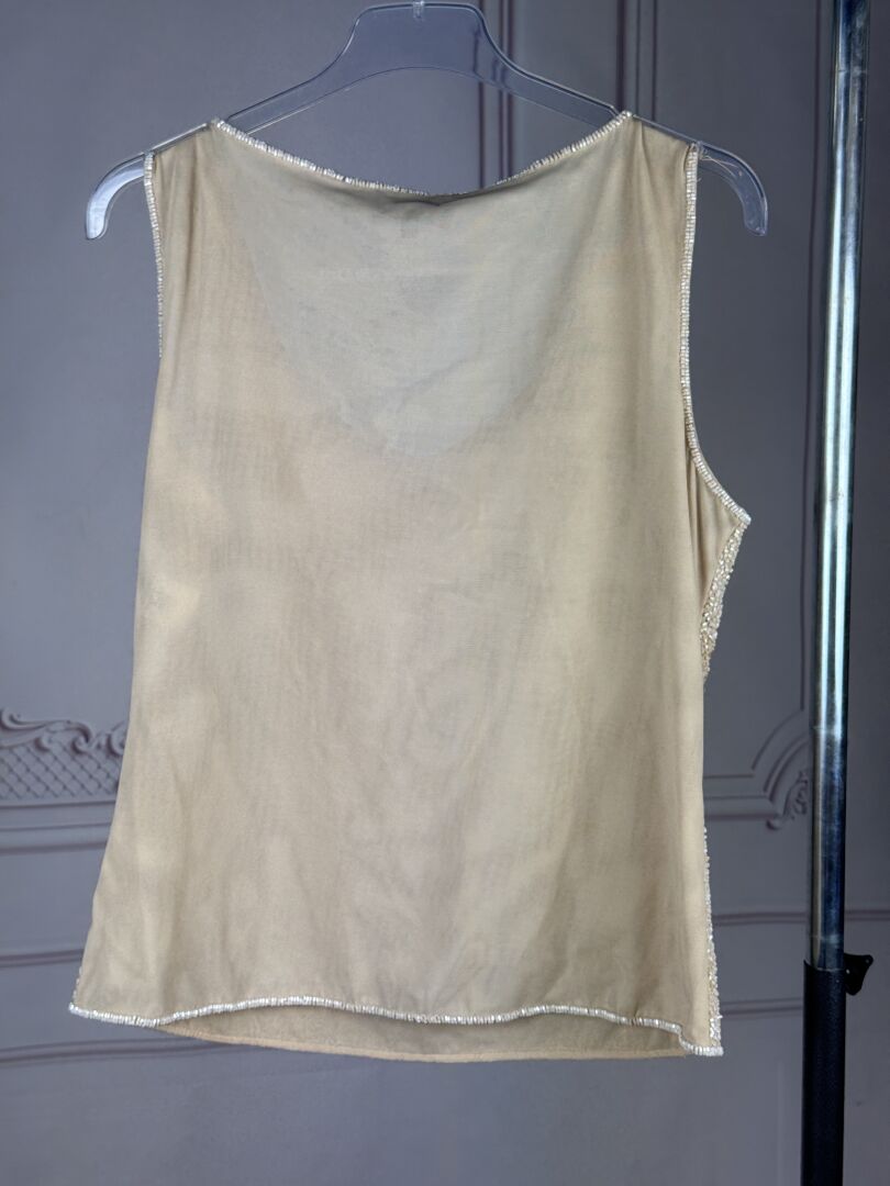 LUISA SAPGNIOLI - Haut sans manche, ivoire brodé de sequins formant des motifs de fleurs. Taille indiquée L