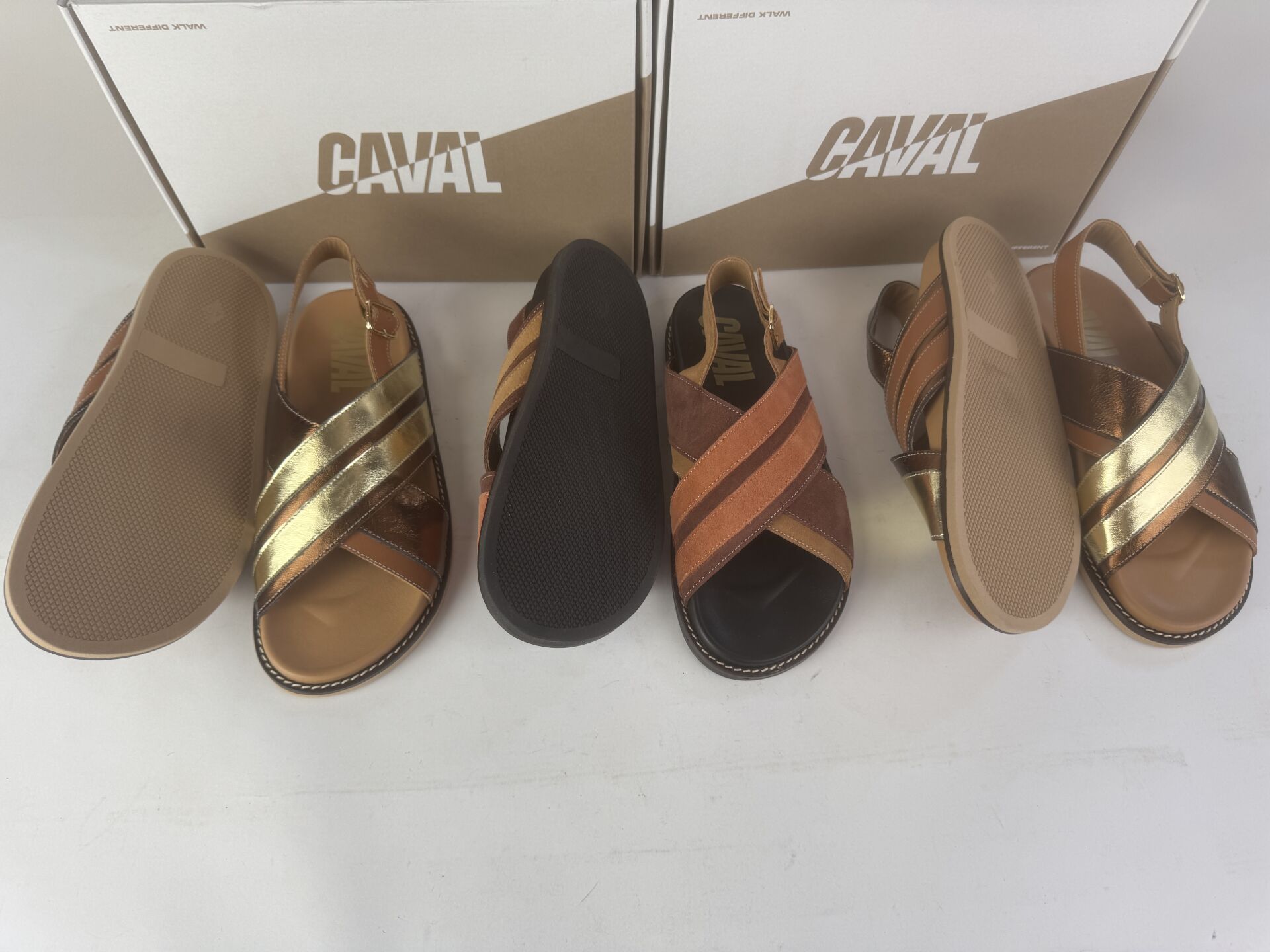 CAVAL - Ensemble de trois paires de sandales, cuir. Pointure 40 (Etat magasin)