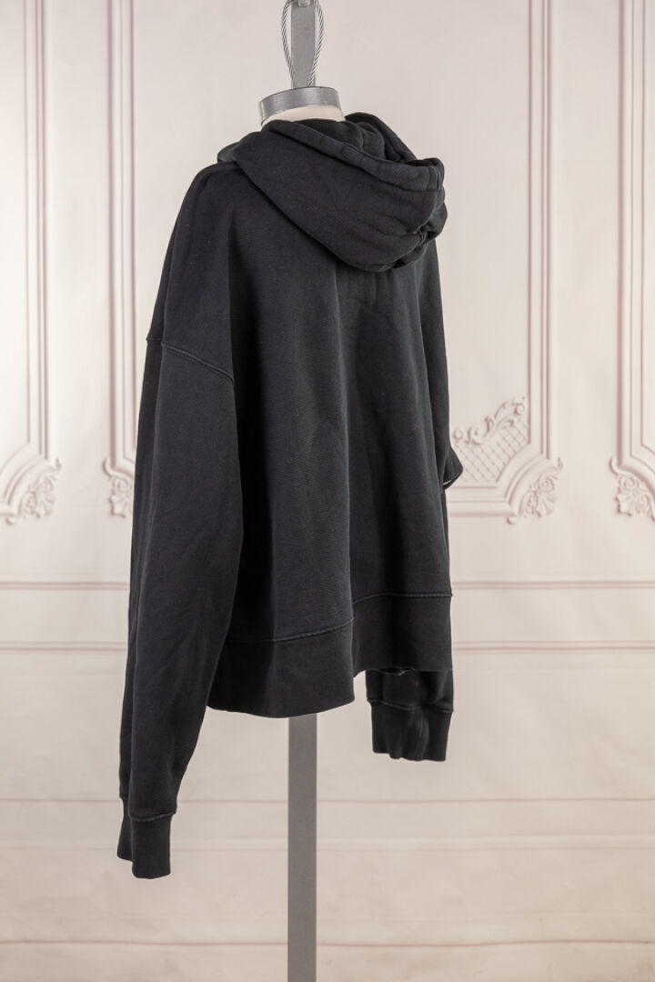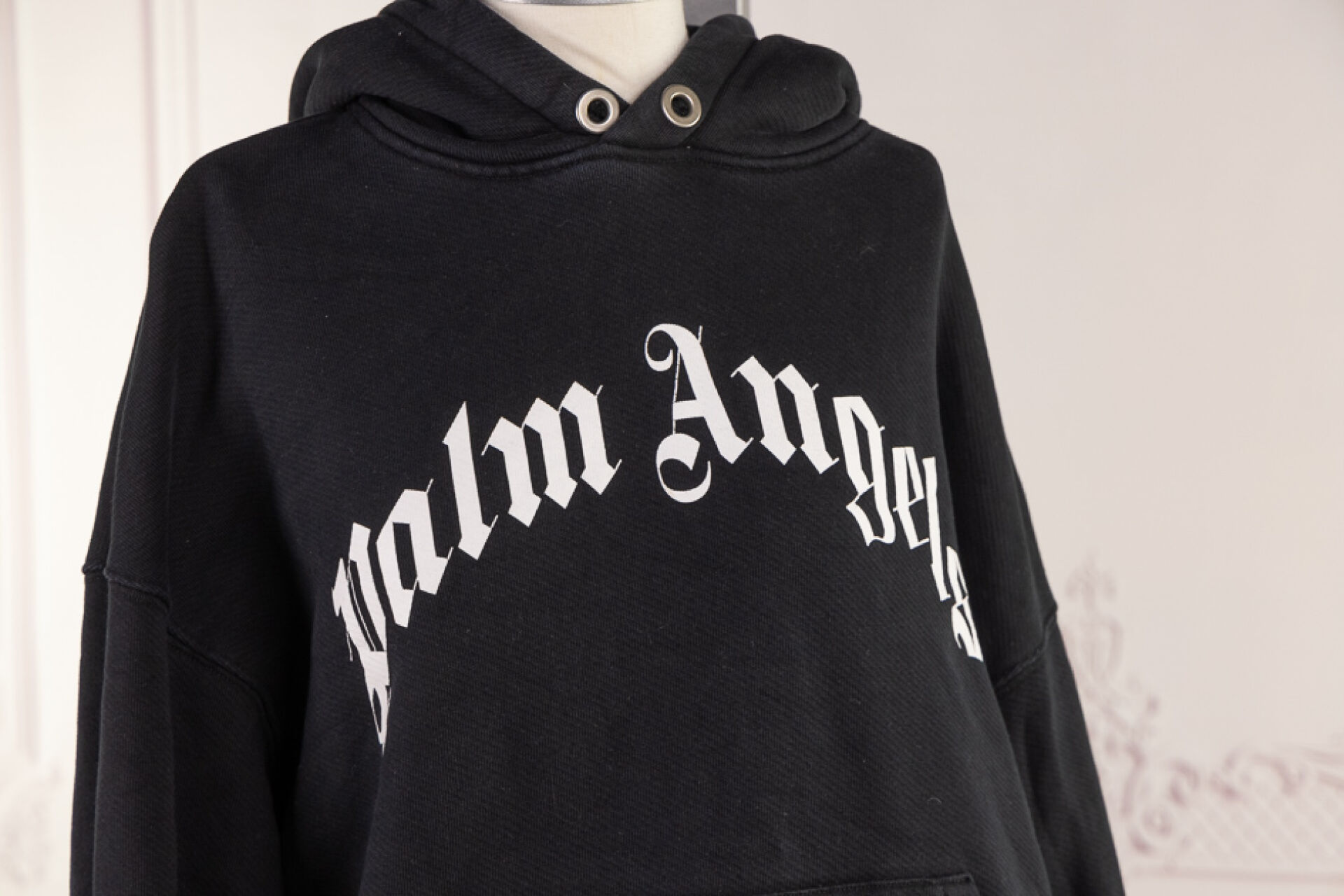 PALM ANGELS. Sweat en coton noir à capuche (sans cordon) et poche kangourou, portant le nom en lettres blanches devant, manches longues. Taille M. (non porté, anti vol)