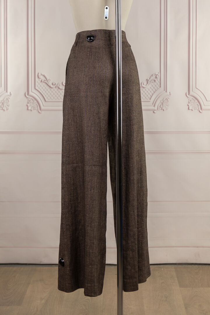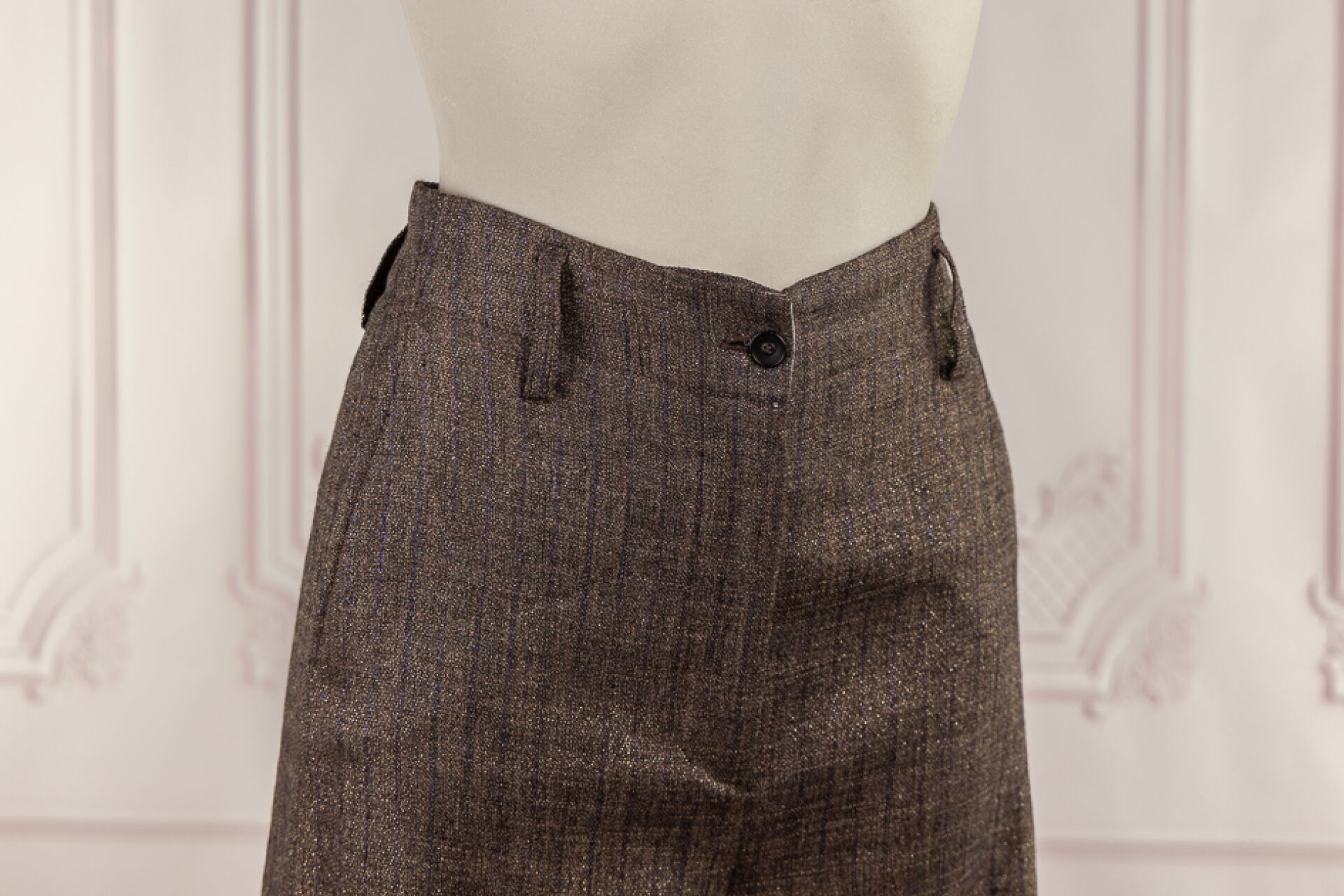 DIEGA. Pantalon droit large chiné marron irisé doré/violet. Taille XS. Non porté, étiquette d'origine et antivol.
