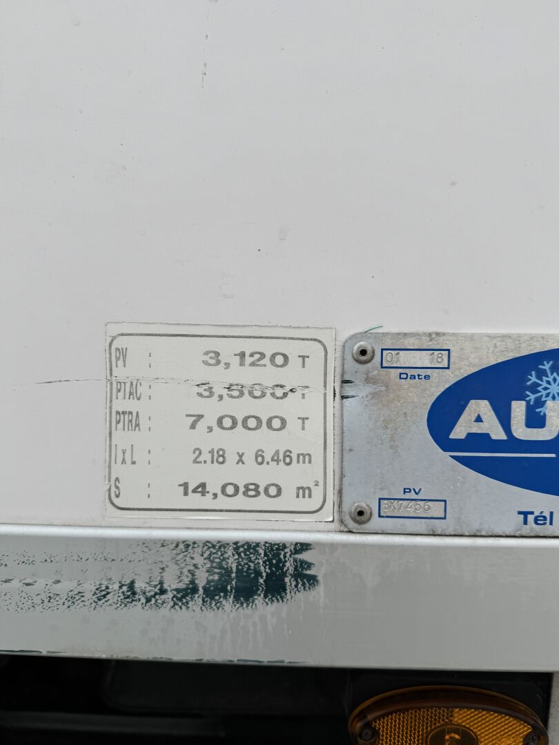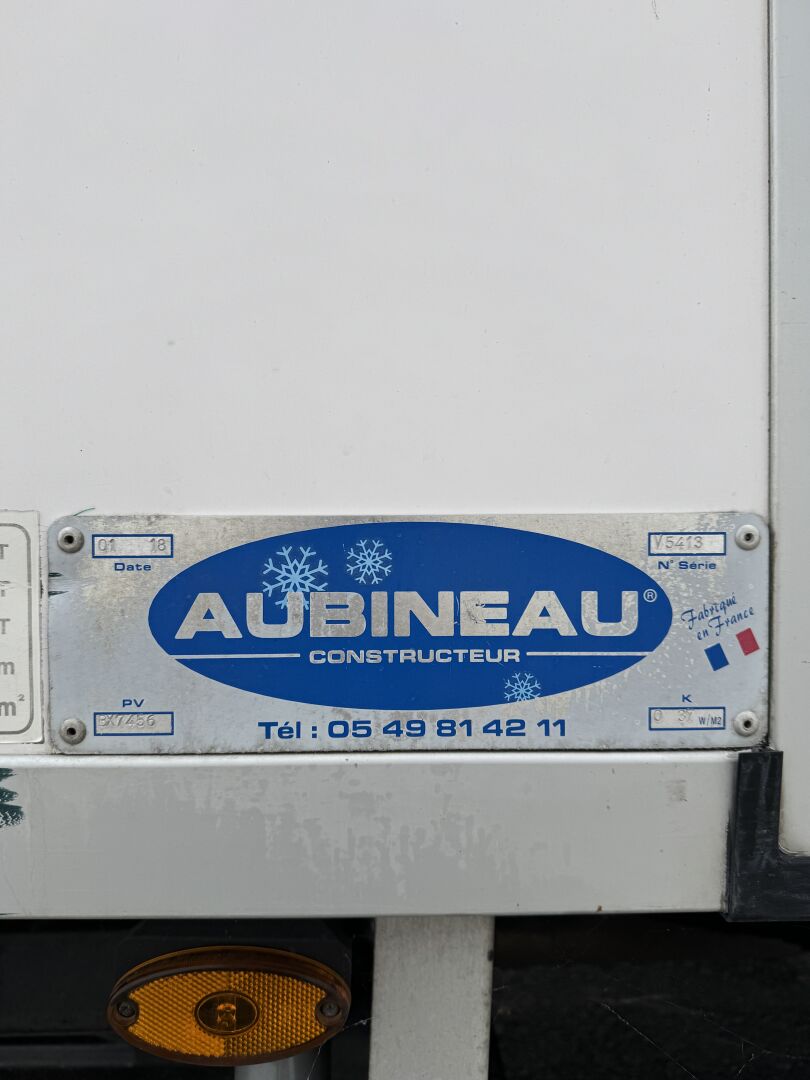 BVA- CLIM- RADIO- VITRES ET RETROS ELECT- ATTELAGE REMORQUE- CAISSE AUBINEAU N° SERIE V 5413 DE 2018 HAYON DHOLLANDIA DE 2018 LARGEUR: 2100 ET PROFONDEUR: 1600- DATE DE VALIDITE DU CONTROL DU HAYON: 02/03/2021 GROUPE FROID THERMOKING V-300 NON TESTE - CEMAFROID FRCX 02/2024. SIEGES EN TISSU TACHES- SIEGE CONDUCTEUR DECHIRE- PLASTIQUES RAYES ET TACHES. ANCIENNES MARQUES DE PUB ADH- PARE CHOCS AV CASSE- ENFONCEMENT AILE AVG- FROTTEMENT COTE G- IMPACT SUR LA PORTE ALT D- TRACE DE CORROSION. DEFAILLANCES MAJEURES: DEFAUT D'ORIENTATION DU FEU DE CROISEMENT AVG. DEFAILLANCES MINEURES: RIPAGE EXCESSIF- VITRE AV FISSUREE- USURE ANORMALE DU PNEU AVD- CARROSSERIE AVG ET AVD ENDOMMAGEE.