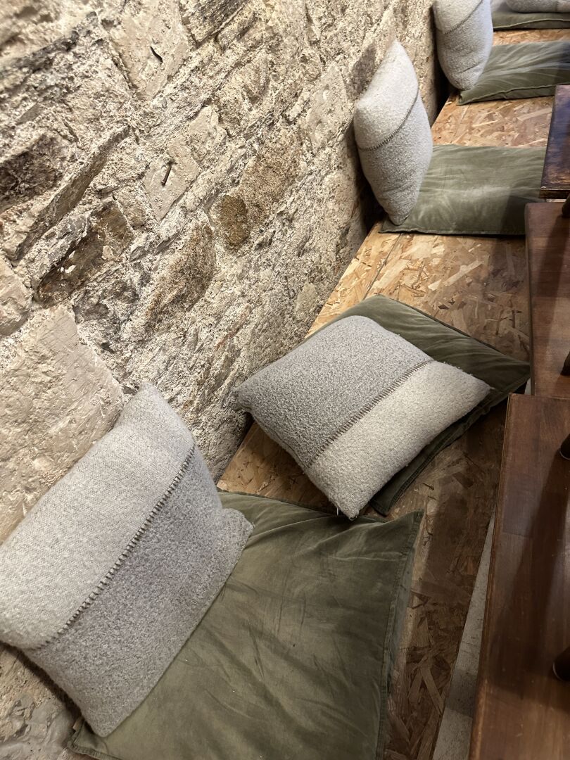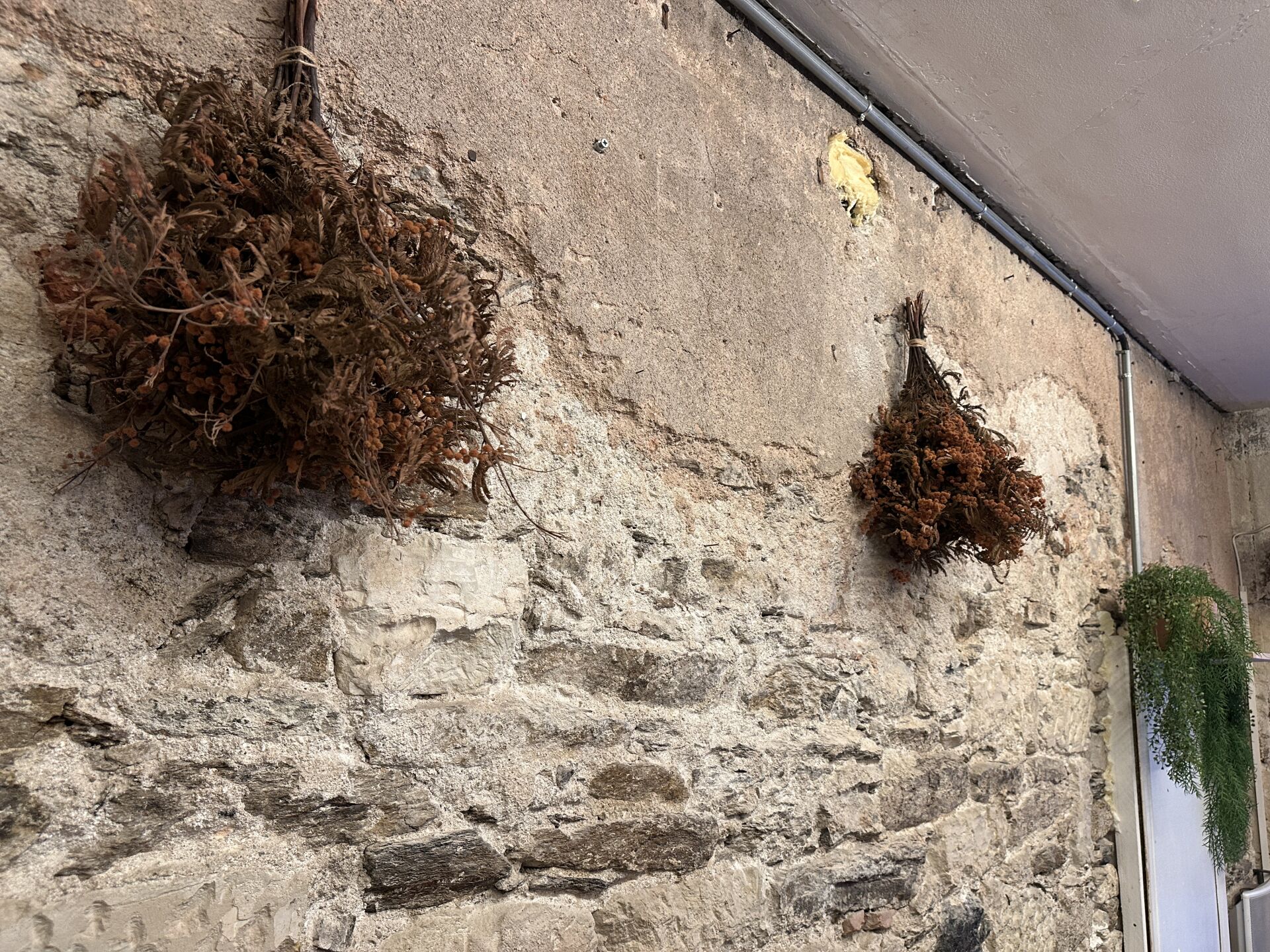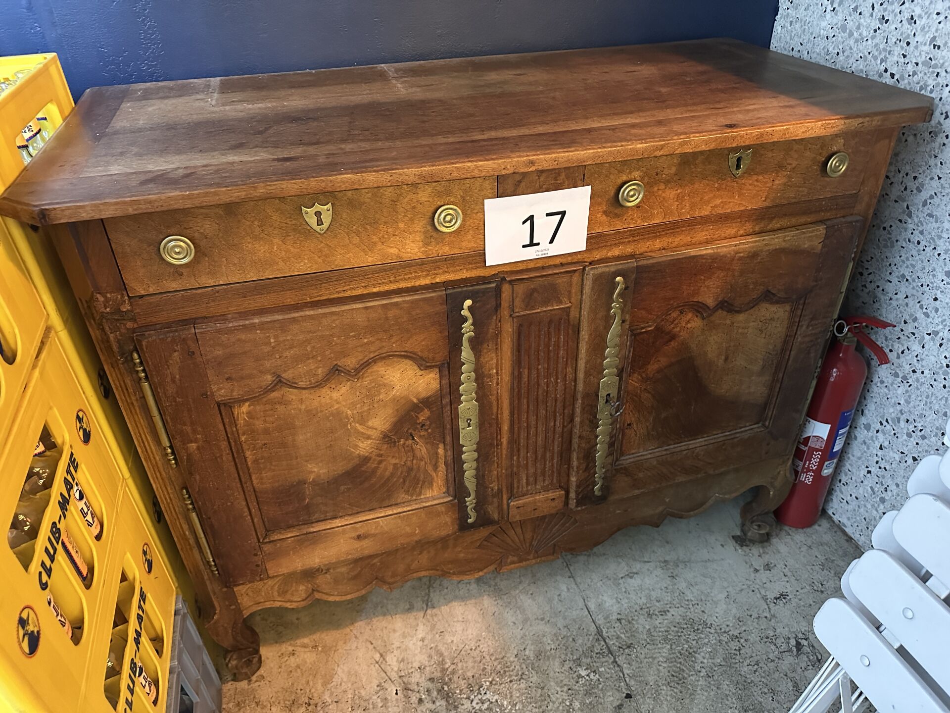 1 lot de plantes synthétiques et fleurs séchées, 1 lot de coussins 1 buffet en bois fruitier ouvrant à 2 portes à faux vantail, 2 tiroirs, à décor d'éventails Fin XIXe siècle