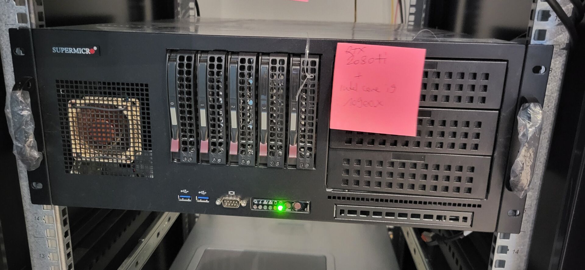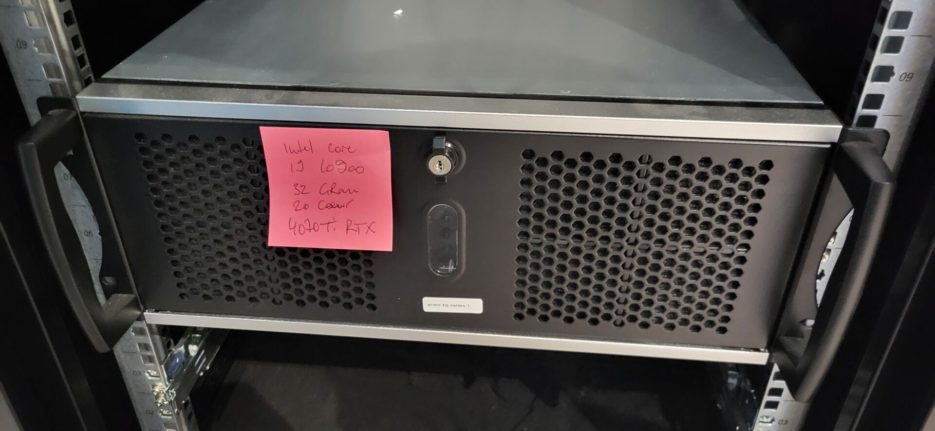 1 petite armoire informatique mobile contenant : - 1 serveur rackable assemblé Intel core i9-10900 32 Go RAM - 20 coeurs - 4070 Ti RTX - 1 serveur rackable assemblé Intel core i9-10900X carte RTX 2080Ti - 1 switch Dreammachine SE