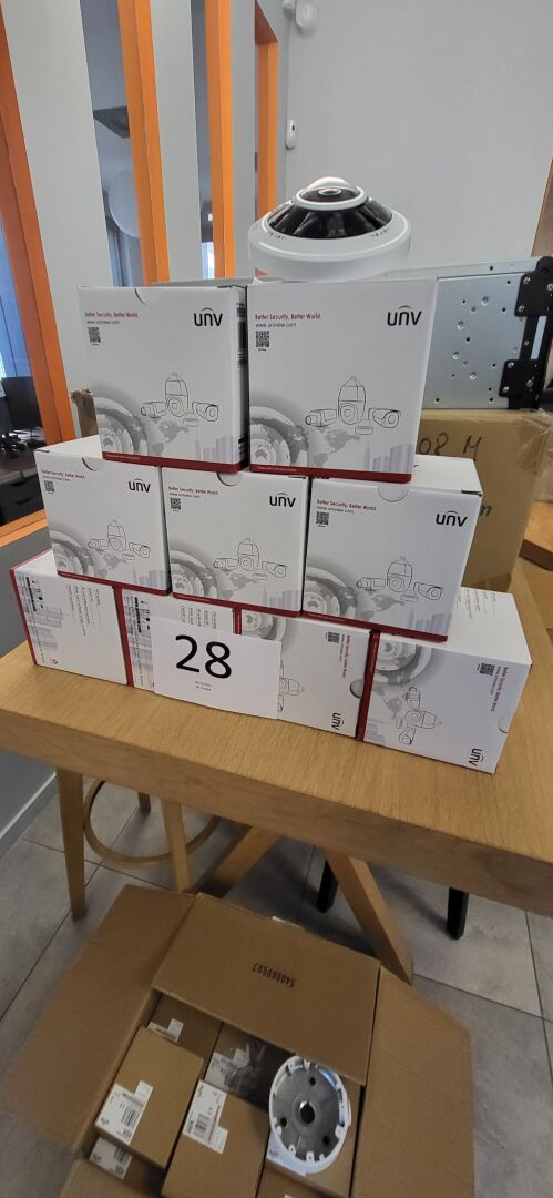 - 9 caméras IP UNV fish-eye réf IPC815SB-AFF14K-10 (et 8 autres usagées potentiellement en panne) - 48 boitiers de jonction pour caméra