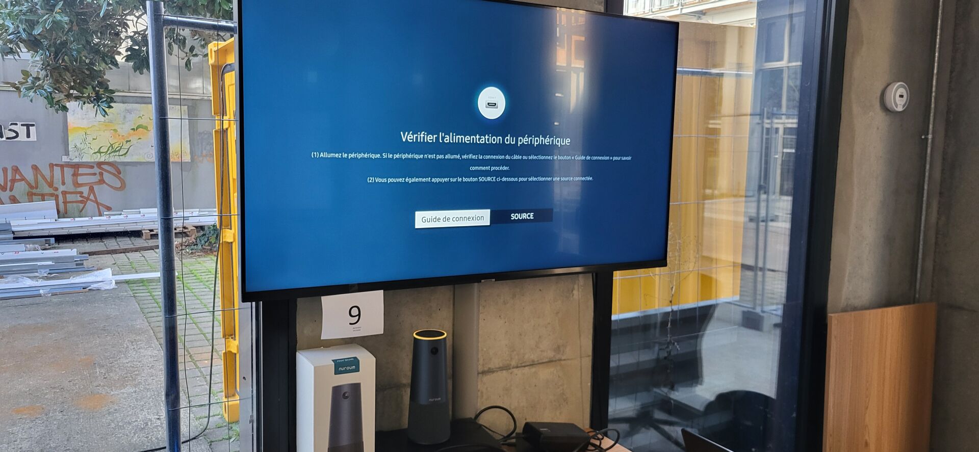 Système de visioconférence comprenant : - 1 écran SAMSUNG 140cm avec télécommande - 1 caméra - micro NUROUM AW-C40 - 1 dock LENOVO Thinkpad Universal USB-C Dock