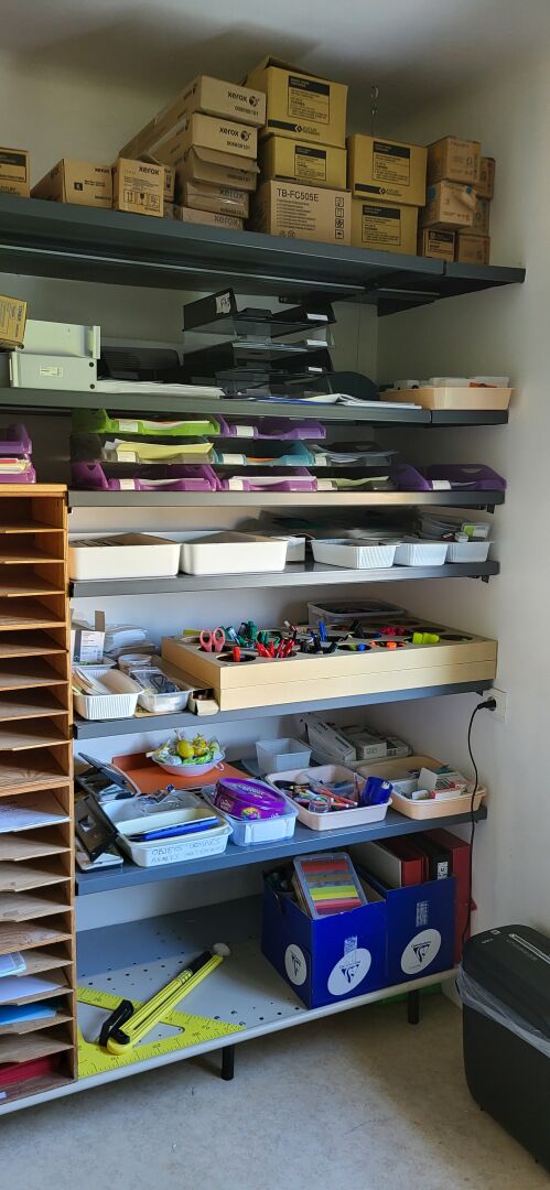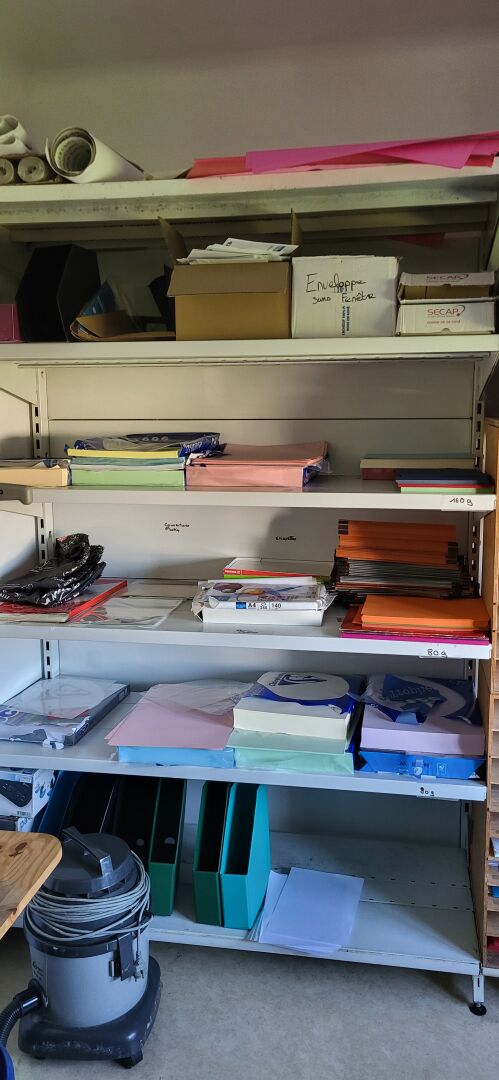 1 massicot DAHLE 1 relieuse FELLOWES 2 plastifieuses FELLOWES et UNITED OFFICE 1 aspirateur 909 Plus 1 destructeur de documents 1 lot de fournitures de bureau dont stylos, ramettes de papier, classeurs, bannettes, etc + 1 tableau blanc 120 x 90 cm