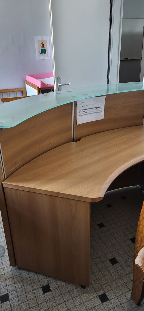 1 banque d'accueil mélaminé bois avec gradin en verre 185 x 85 x 110 cm