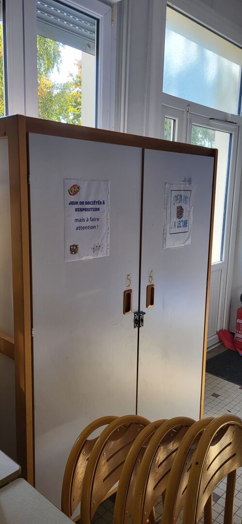 4 armoires mélaminé beige 2 portes 120 x 55 x 180 cm 2 claustras métal jaune et mélaminé 140 x 160 cm