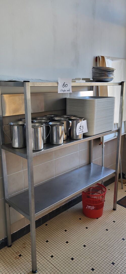 2 étagères inox 5 niveaux 90 x 42 x 154 cm et 125 x 42 x 151 cm