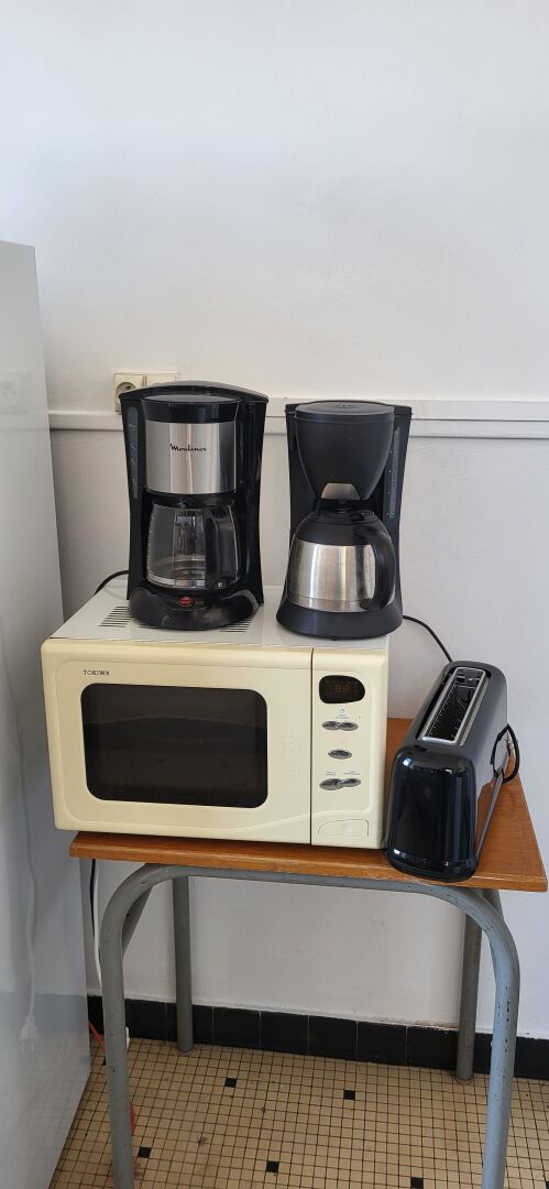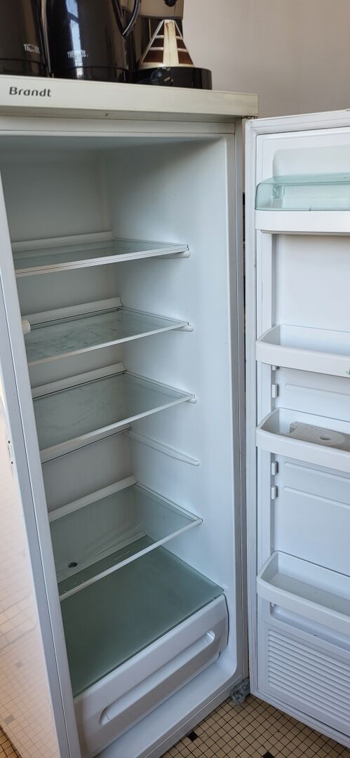 1 réfrigérateur BRANDT 291 L (poignée cassée) 1 four micro ondes TOKIWA 2 pichets isothermes 2 cafetières dont MOULINEX, 1 grille-pain MOULINEX