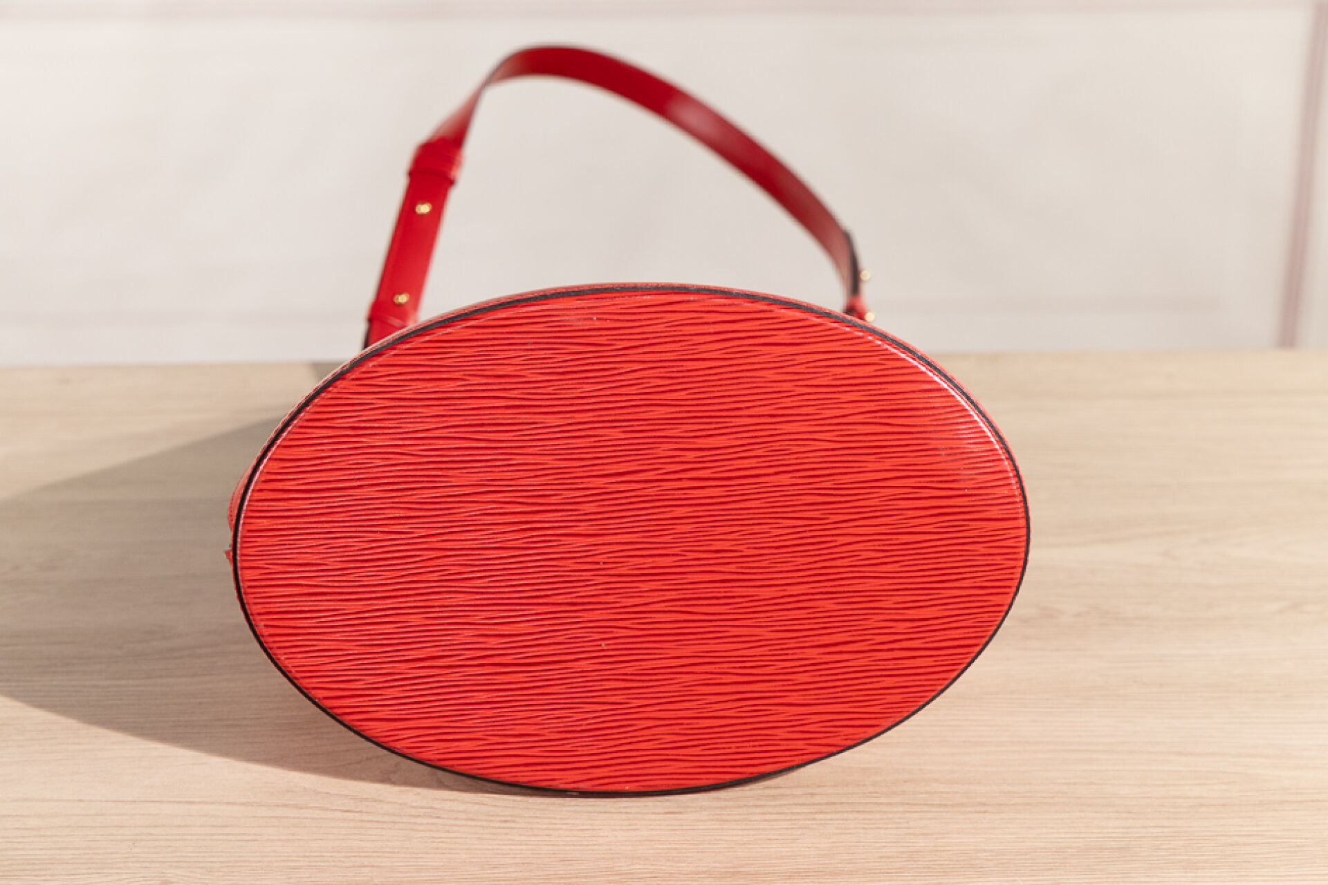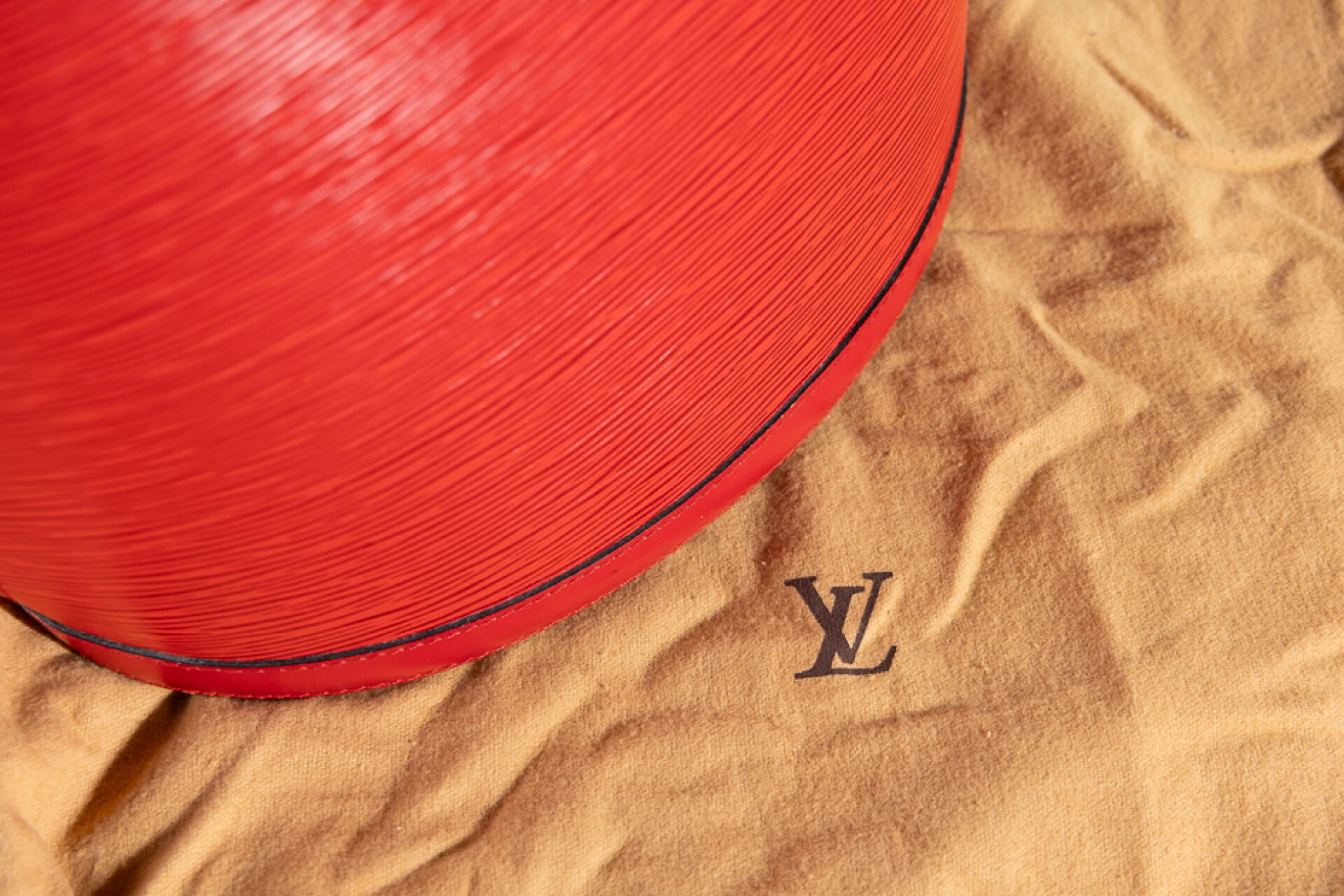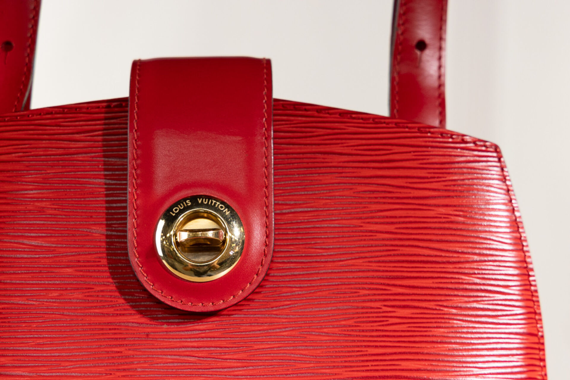 LOUIS VUITTON - Sac "Cluny" en cuir épi rouge, fermoir pivotant en métal doré sur patte, anse bandoulière réglable, doublure en suédine rouge. Tampon Made in France, numéroté SP0936 Haut. : 30 - Long. : 26 cm Très légère griffure, bon état général