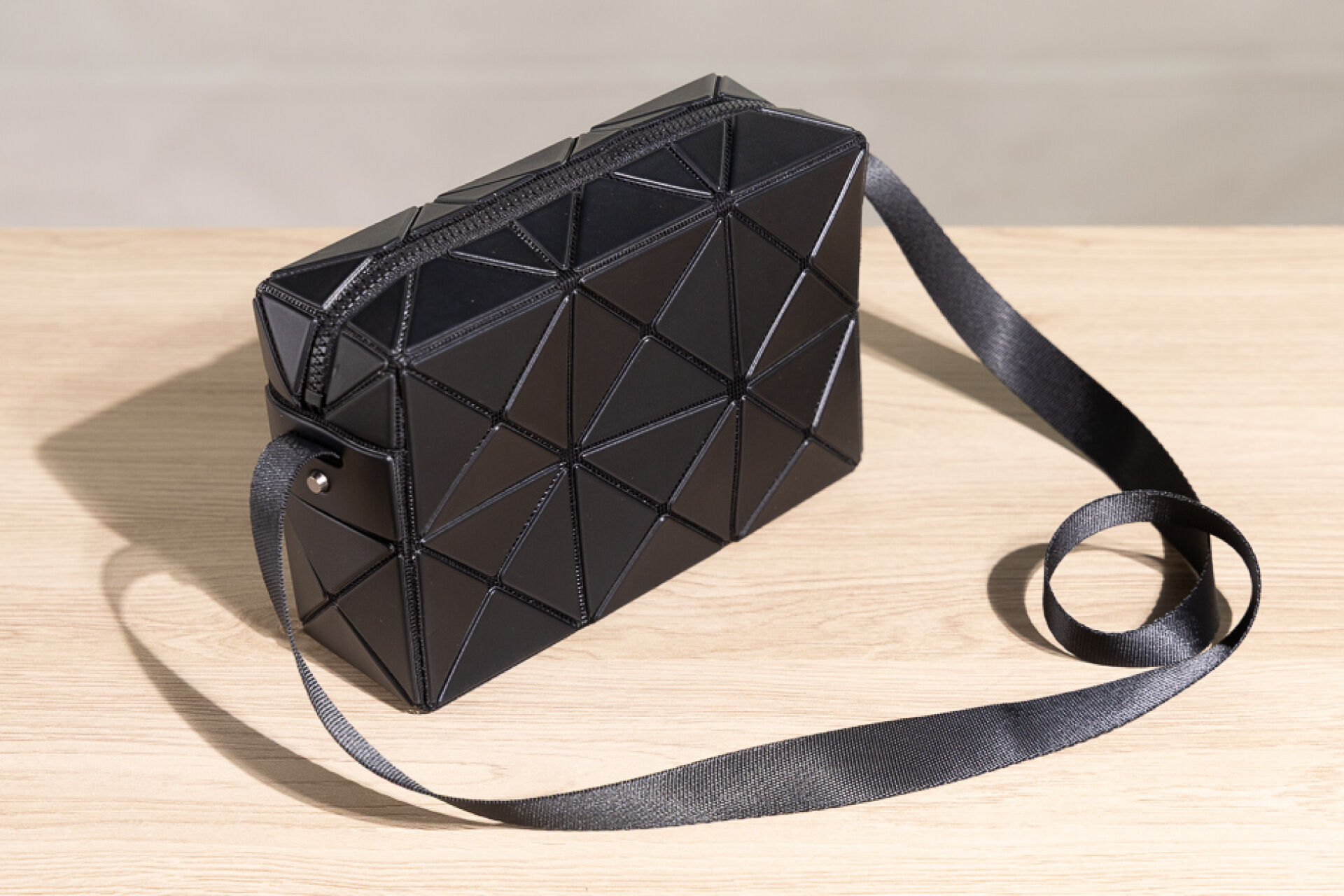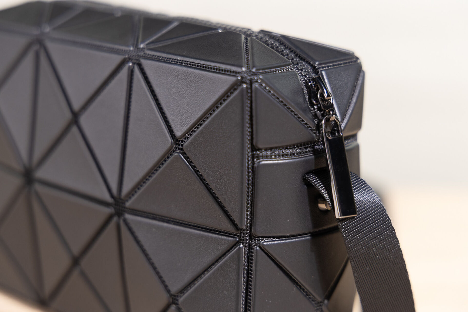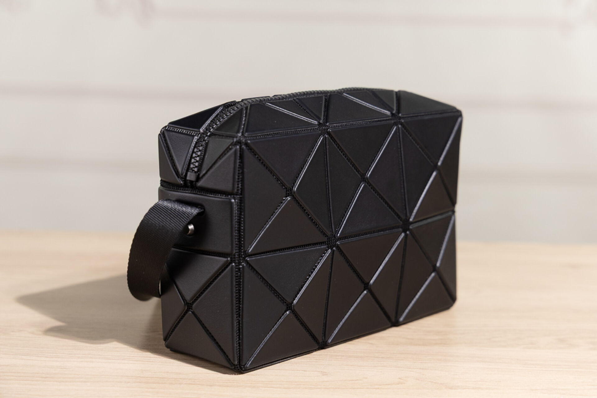 BAOBAO par ISSE MIYAKE - Mini sac origami noir, fermeture à glissière, anse. Haut. : 12 cm - Long. : 18 cm Bon état
