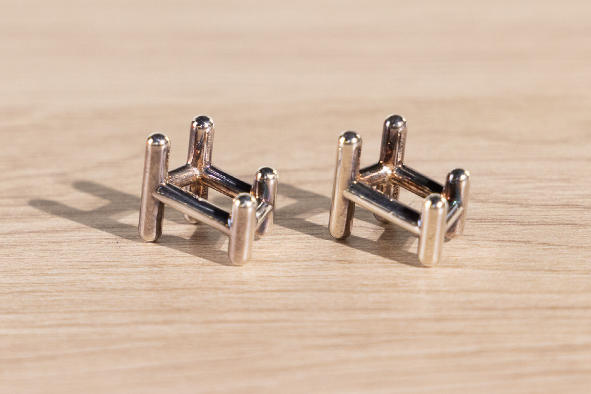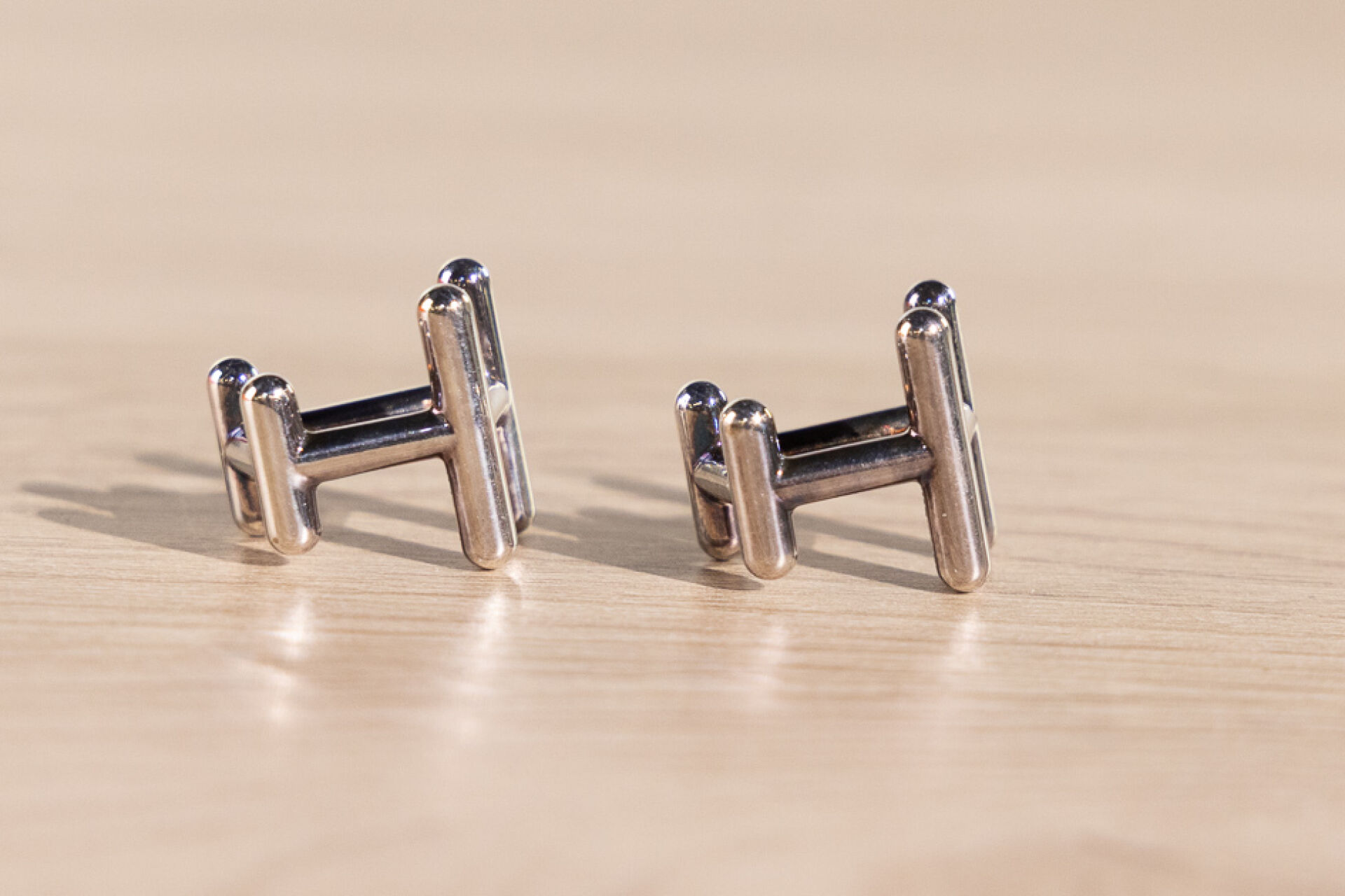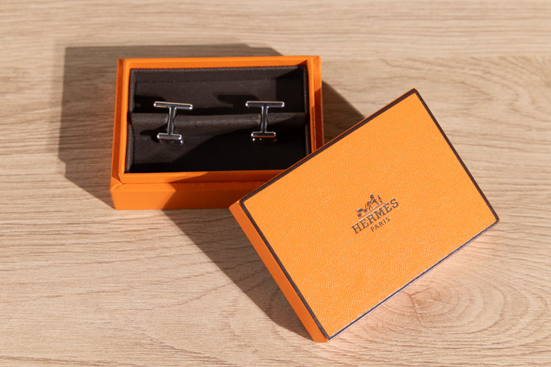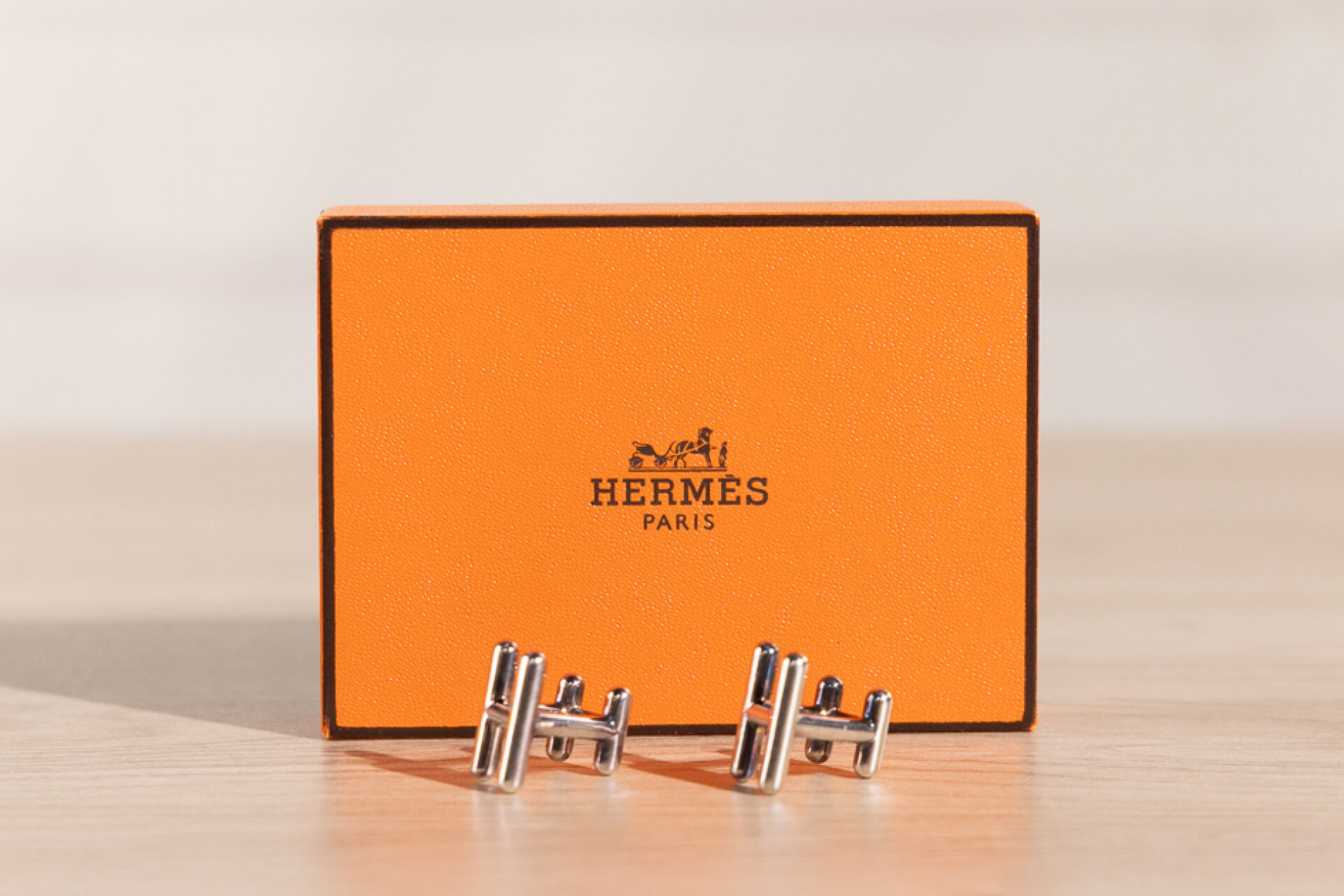 HERMES - Paire de boutons de manchettes au H en argent 925 millièmes. Dans leur écrin. Poids : 9,96 gr