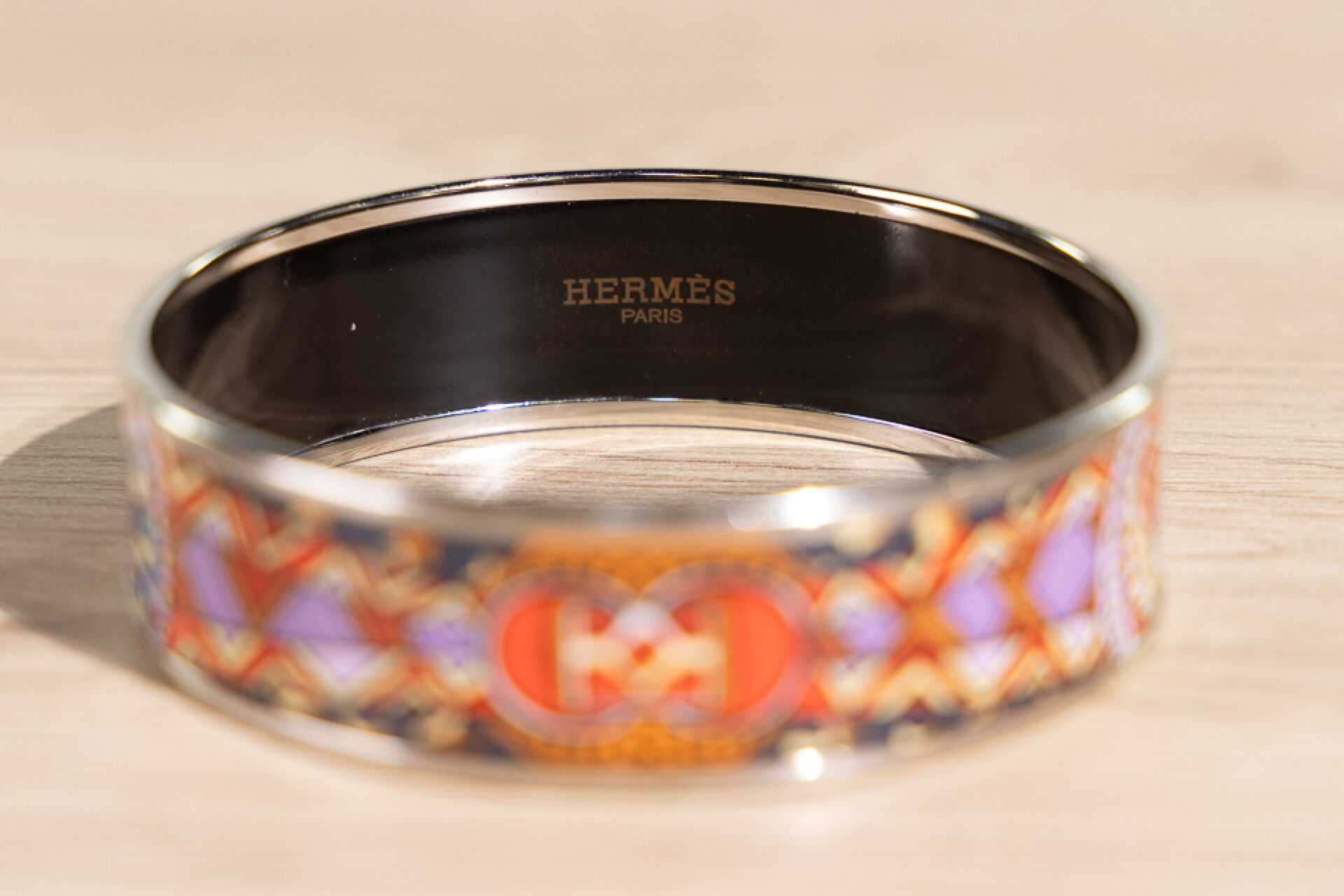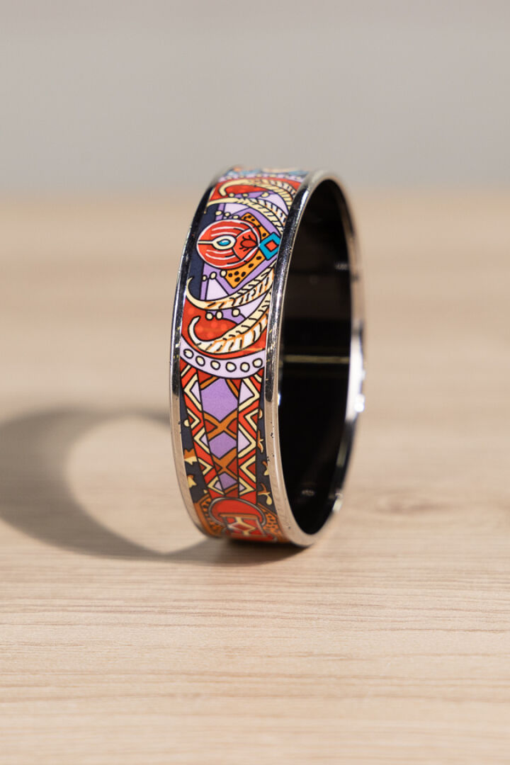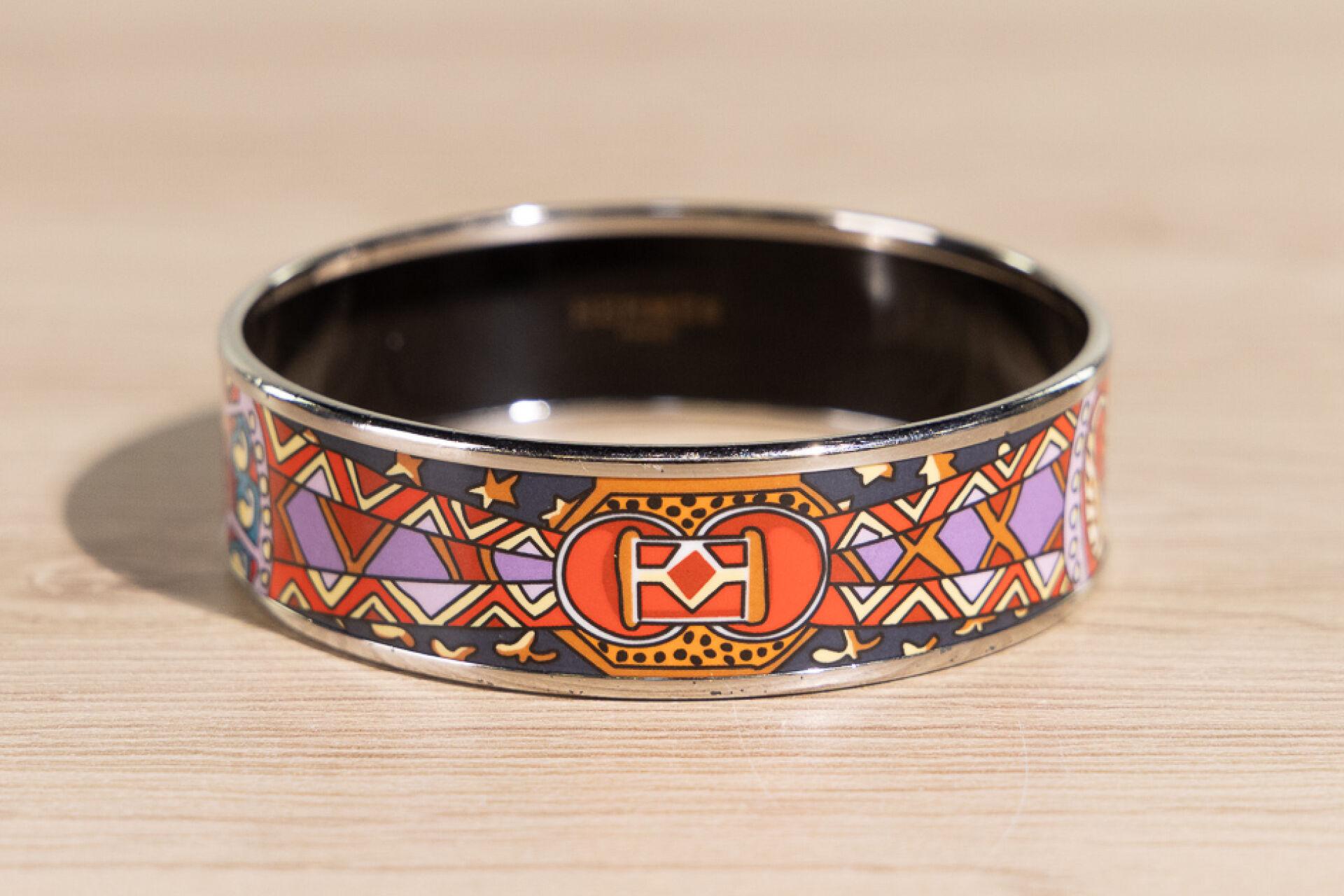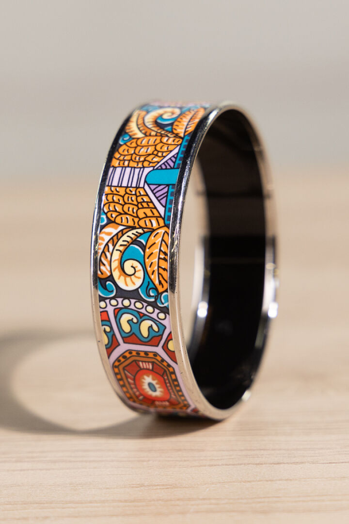 HERMES Paris Made in France - Bracelet jonc émaillé à décor de mosaïques. Diam. : 6,5,cm Très bon état, légères rayures d'usage