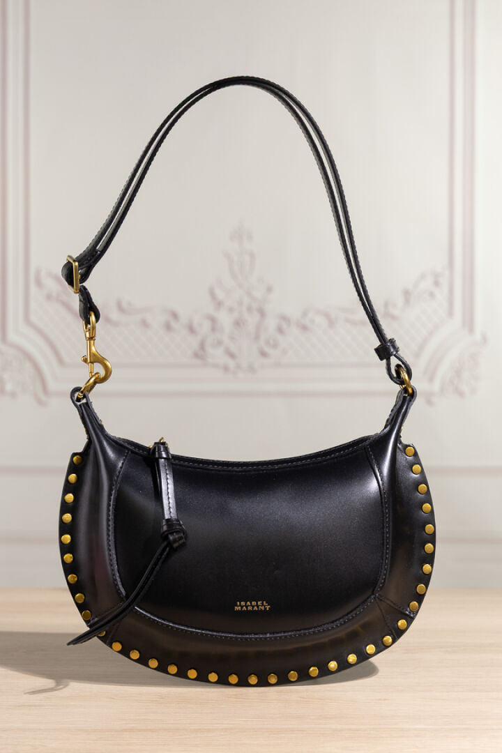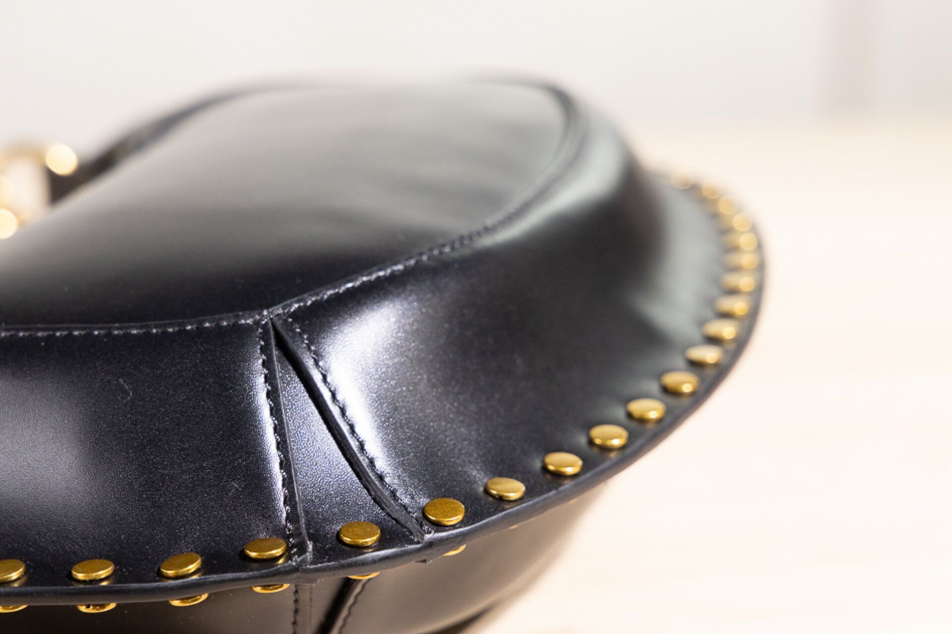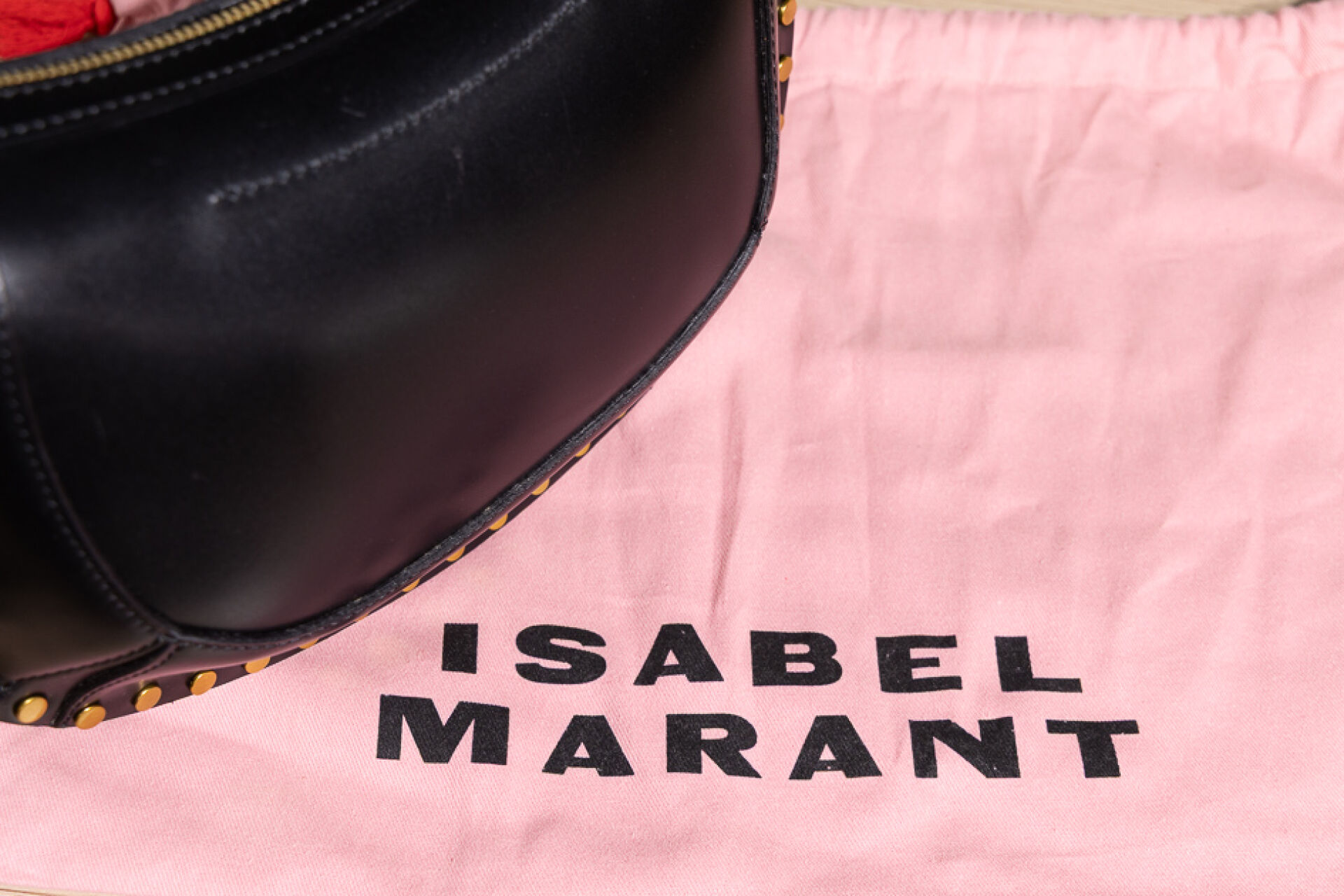 ISABEL MARANT - Sac "Naoko" en cuir glacé noir clouté, fermeture à glissière, anse réglable. Dust bag. Haut. : 18 cm - Long. : 28 cm Infimes marques