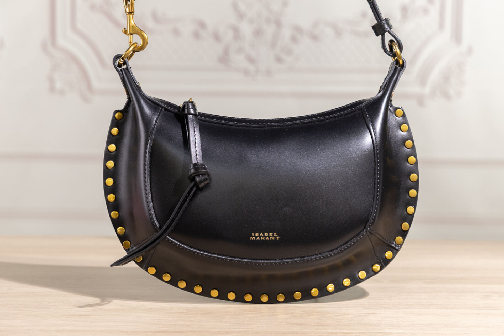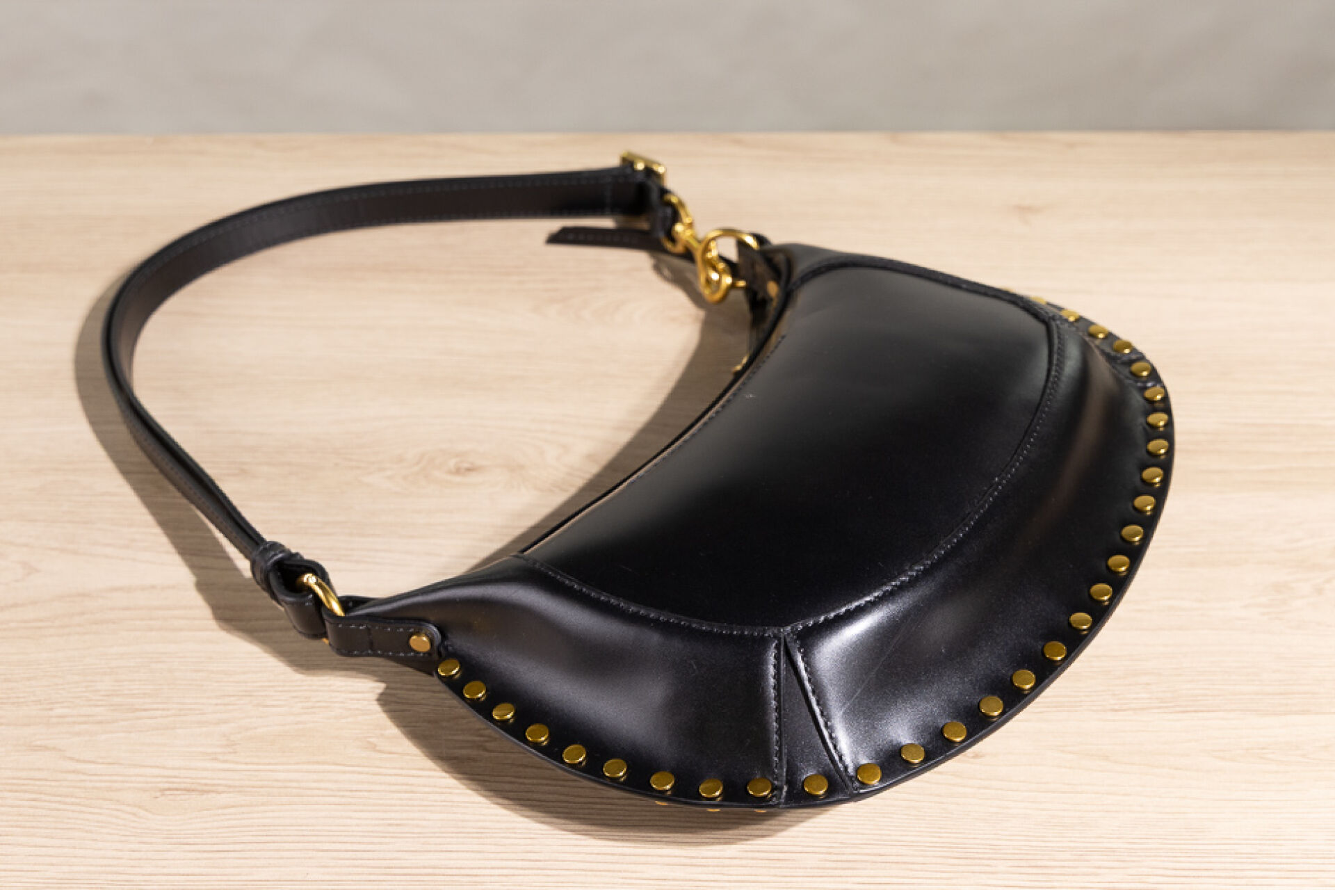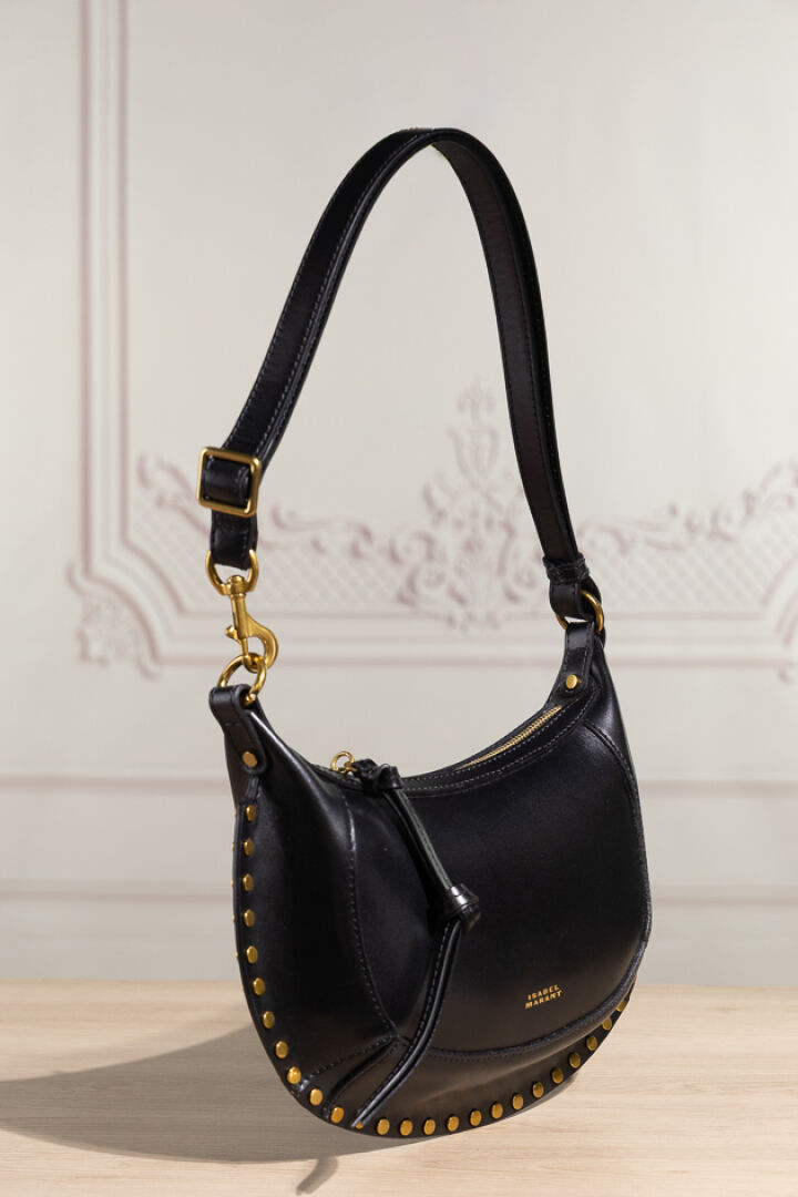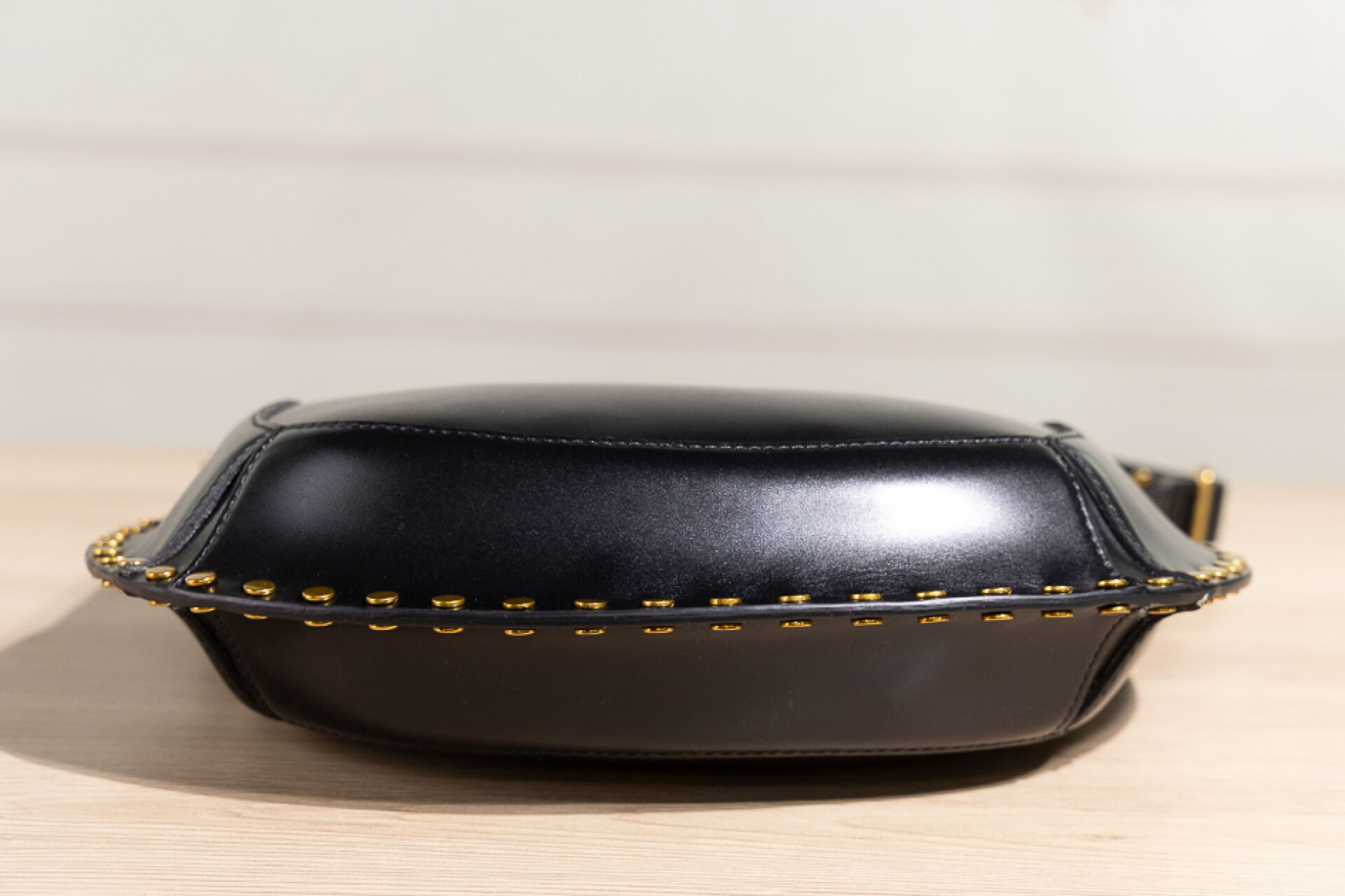 ISABEL MARANT - Sac "Naoko" en cuir glacé noir clouté, fermeture à glissière, anse réglable. Dust bag. Haut. : 18 cm - Long. : 28 cm Infimes marques