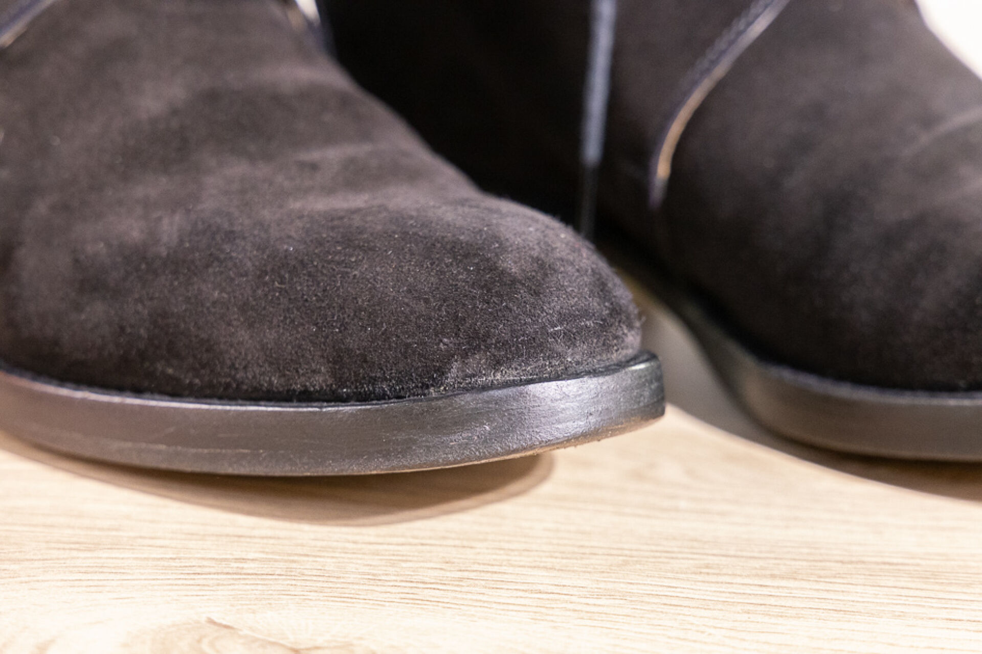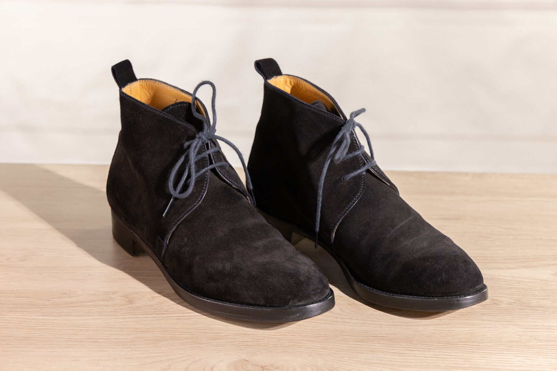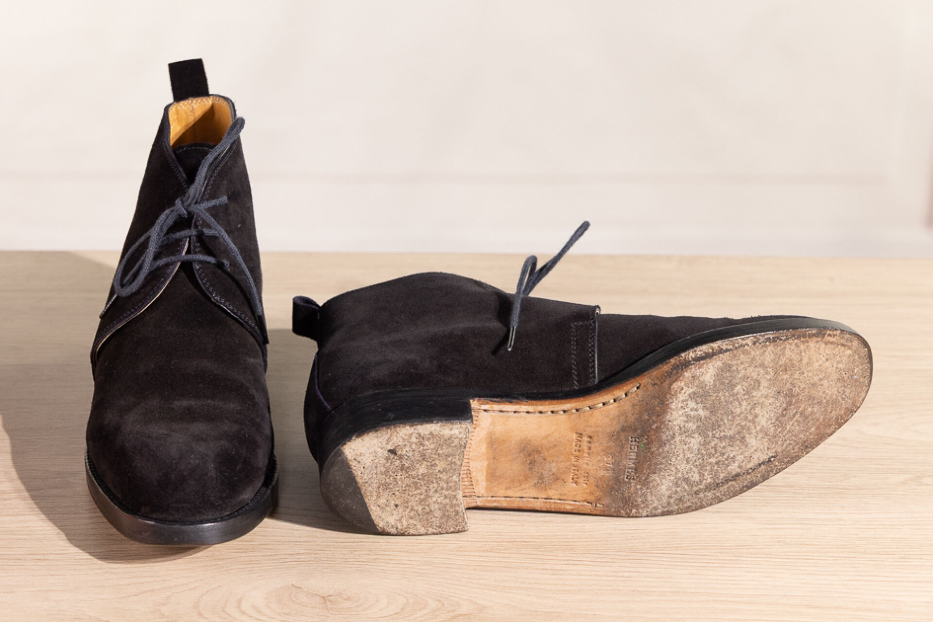 HERMES Paris - Paire de chaussures montantes en daim marron très foncé tirant sur le noir, lacets. Dans une boite. Pointure 37,5 Déjà portées, petites usures à la semelle