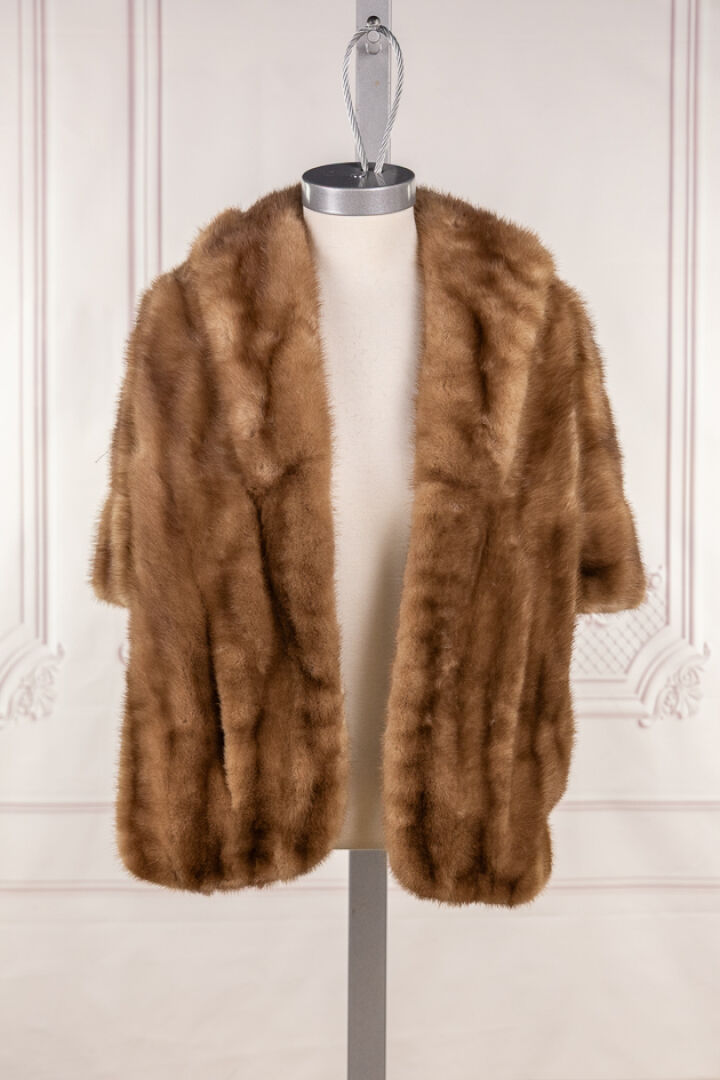 Petite cape courte du soir en vison pastel travail pleine peau sans boutonnage. Taille supposée 36 Usures notamment sur la doublure