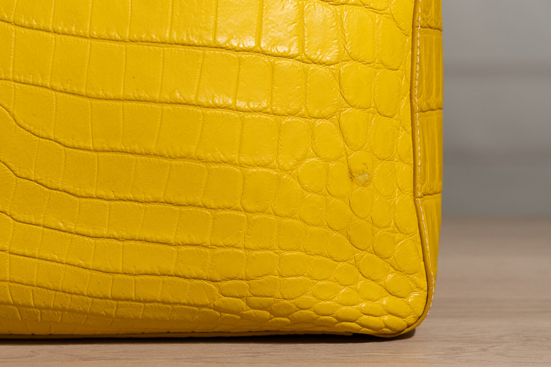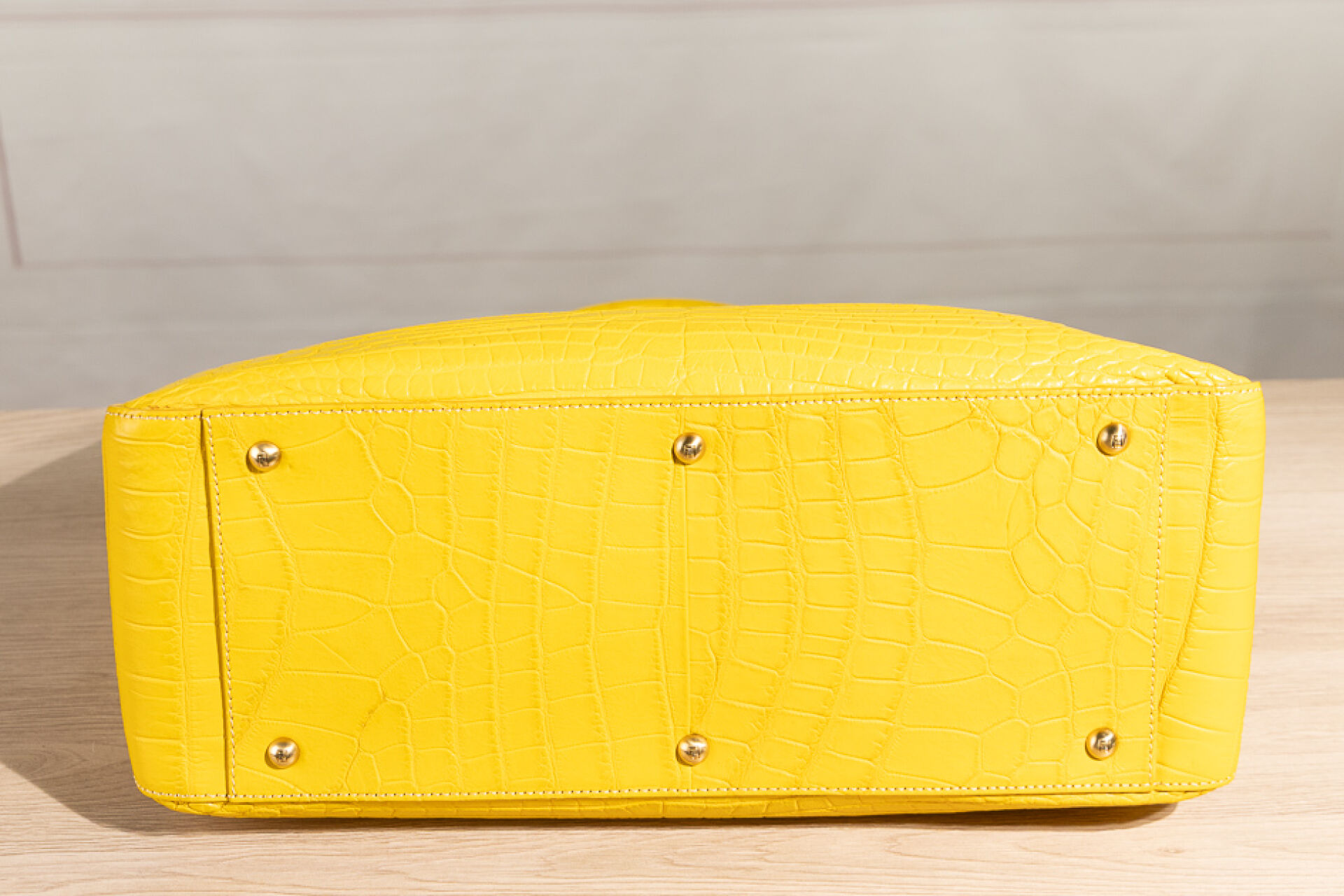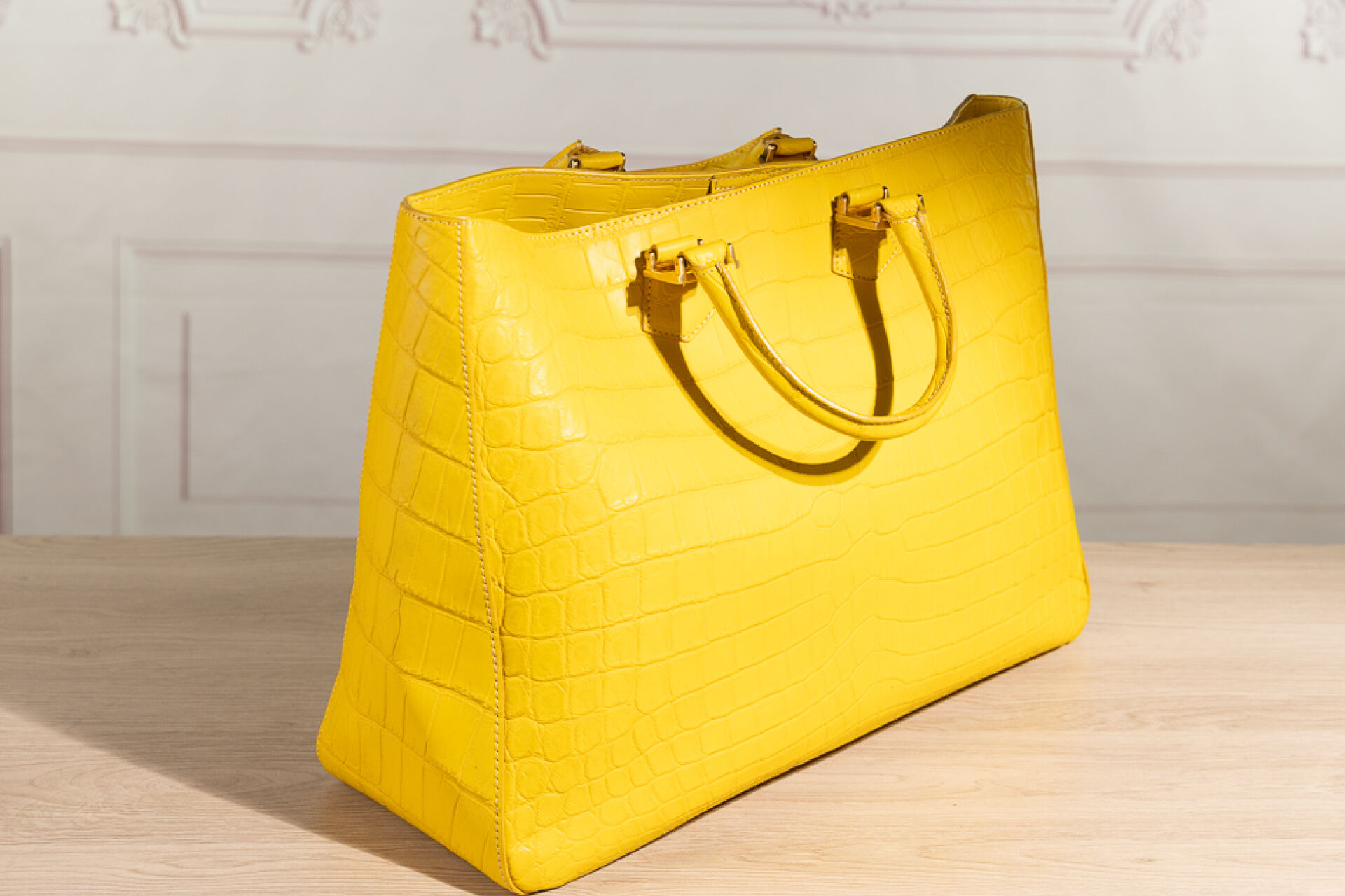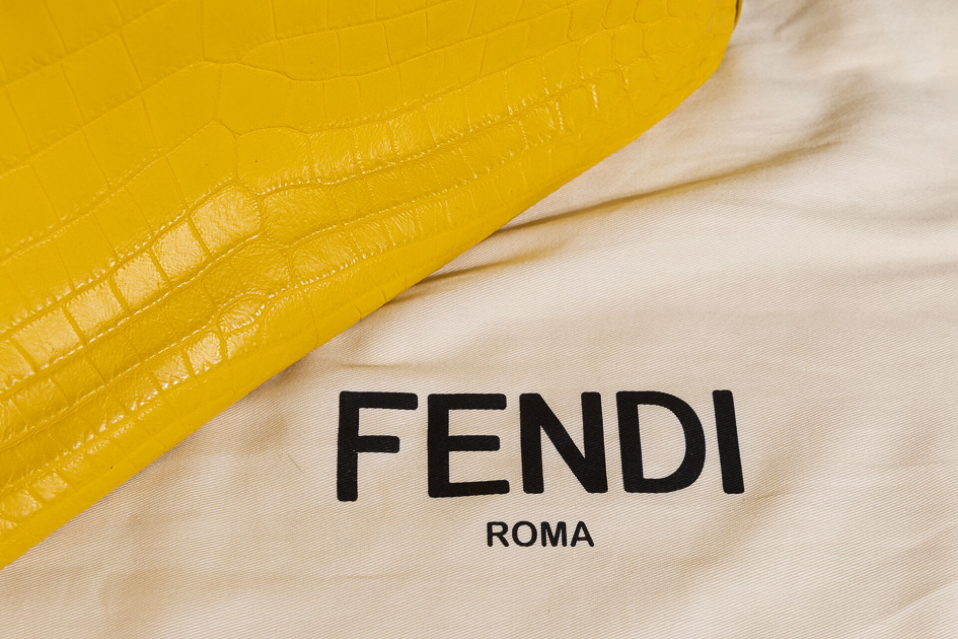 FENDI - Sac cabas en cuir jaune façon croco, double poignées aux attaches sigles dorés, fermoir aimanté. Dustbag. Haut. : 30 cm - Long. : 42 cm Usures