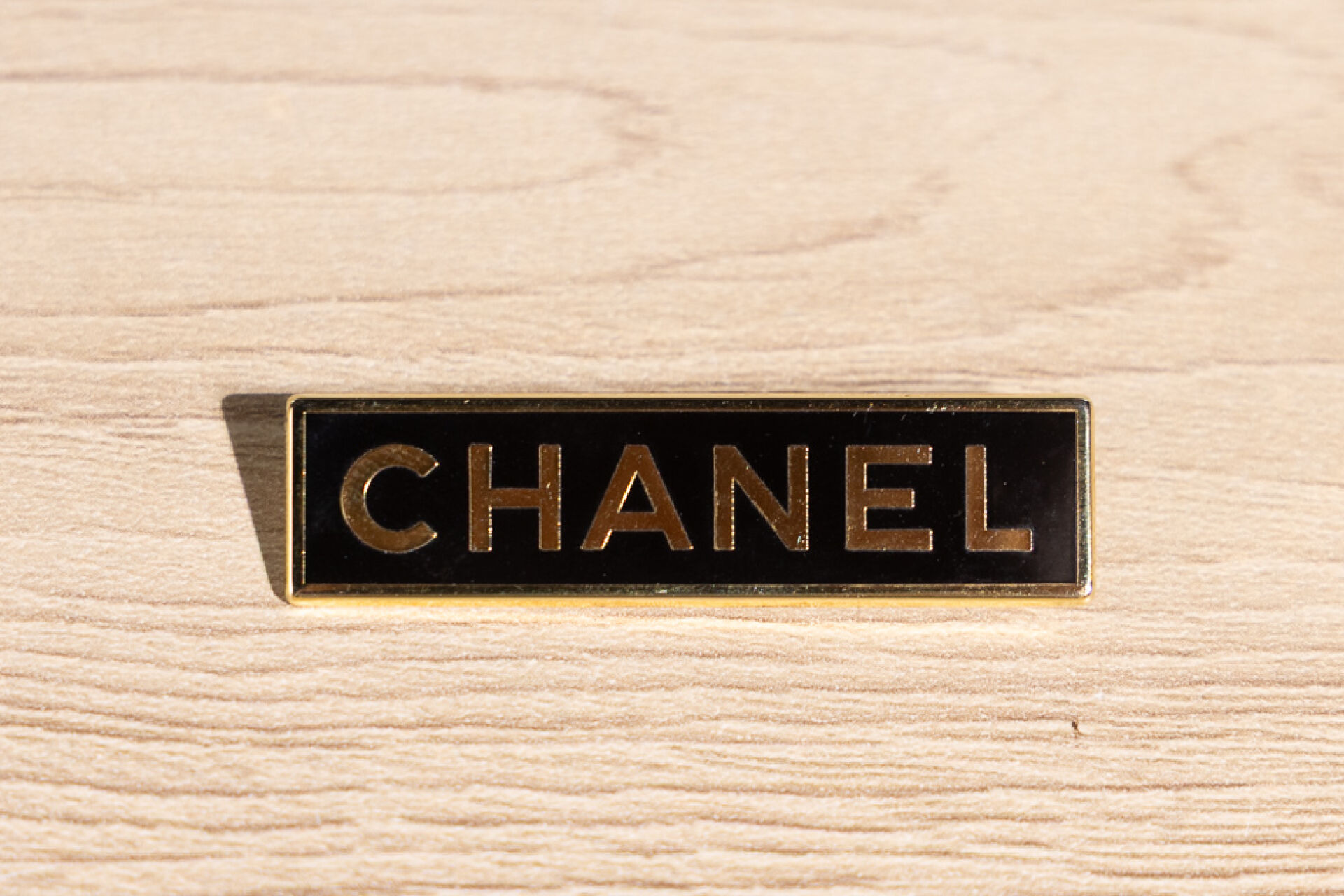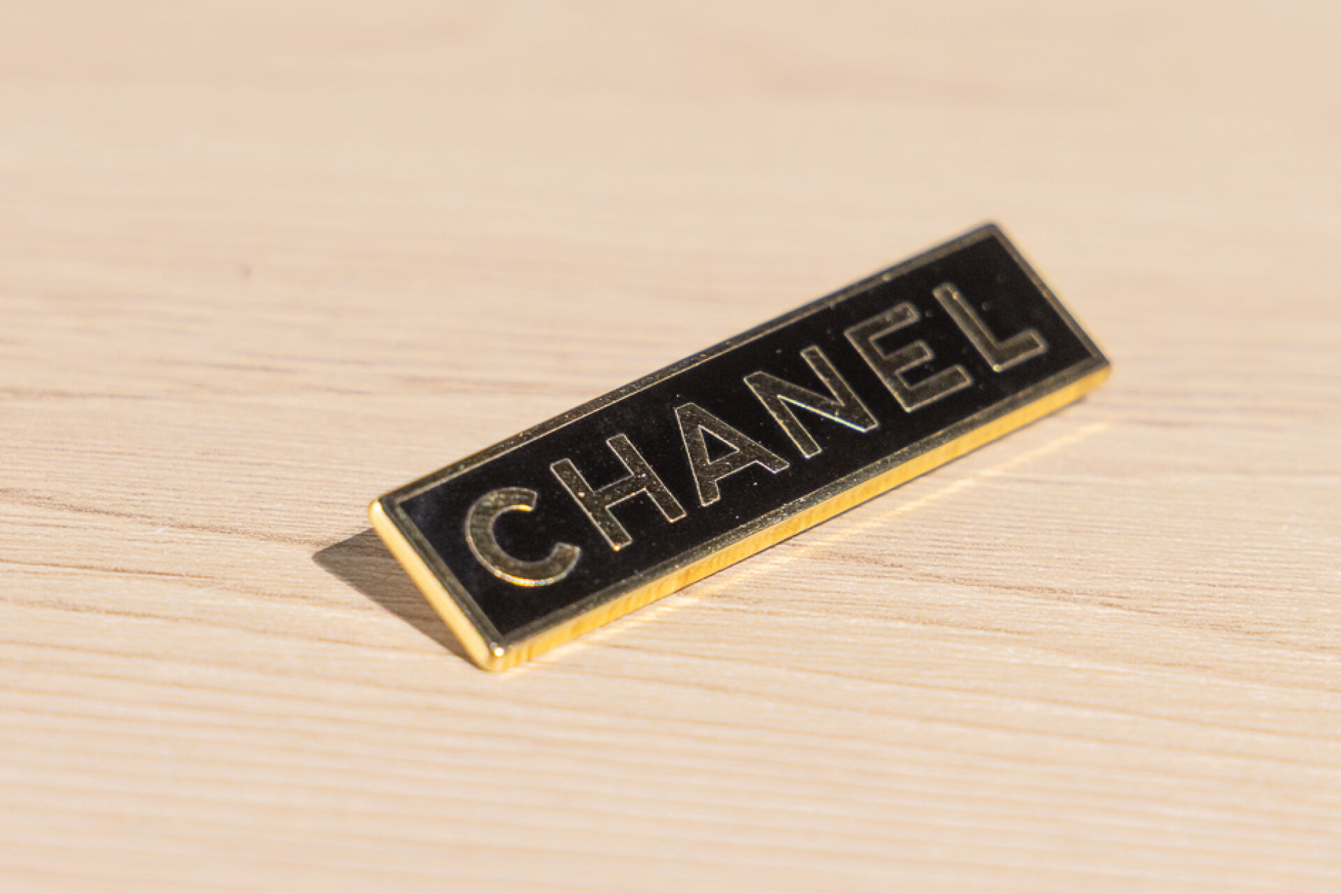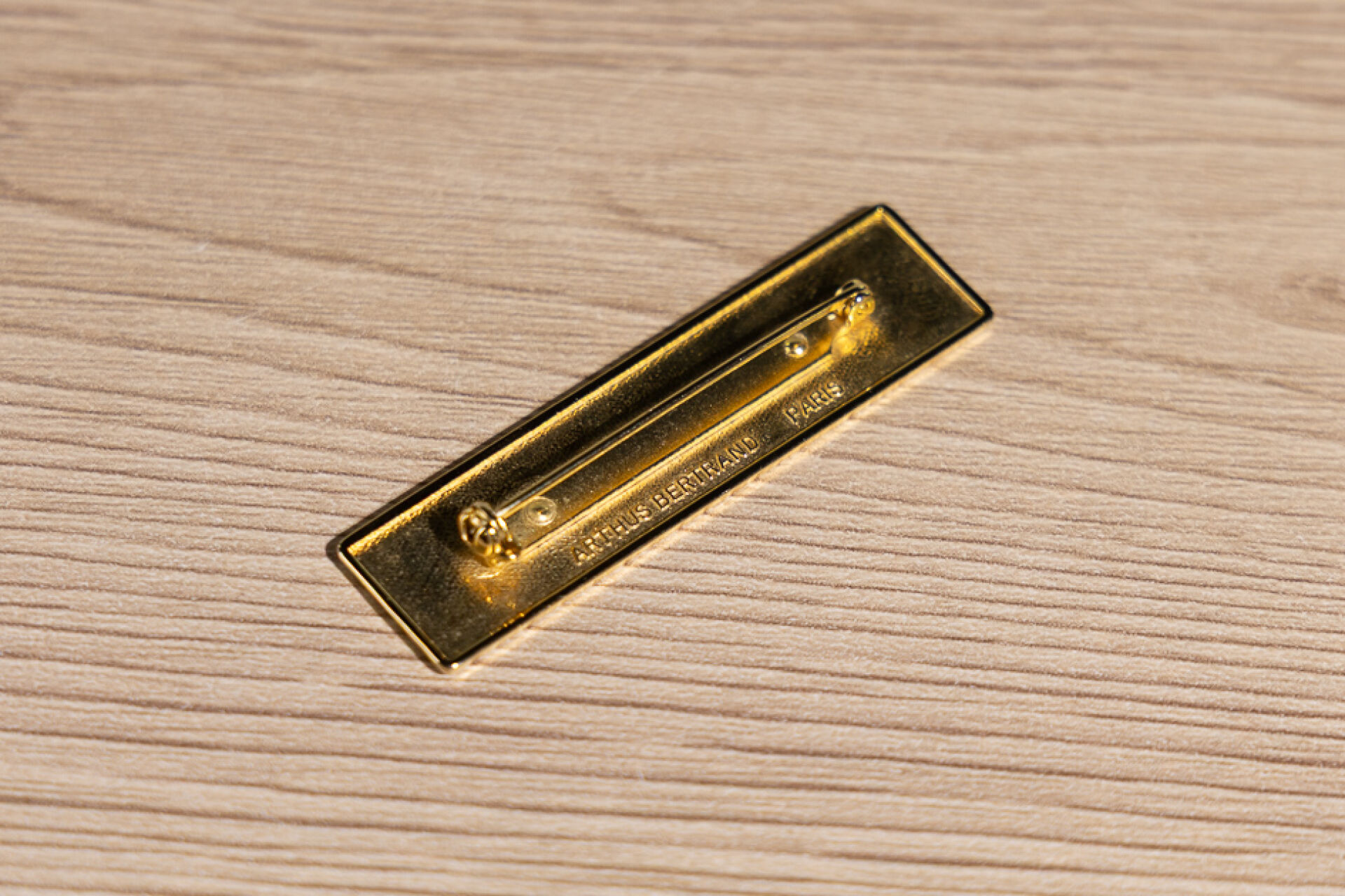 CHANEL - Broche de forme rectangulaire métal doré émaillé noir. Signée au dos Arthus Bertrand Paris Haut. : 1,4 cm - Long. : 5,2 cm