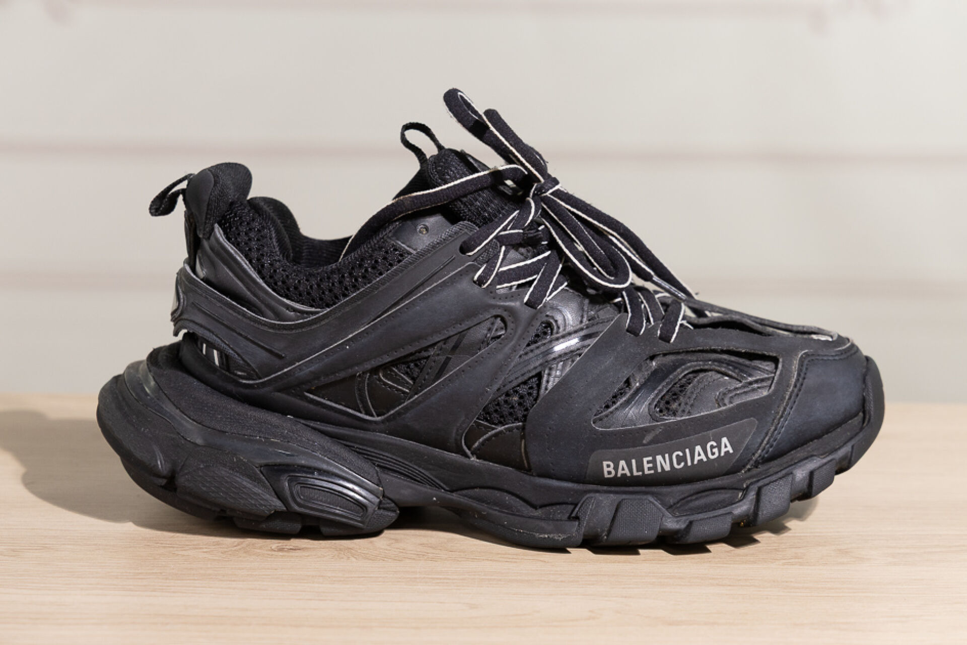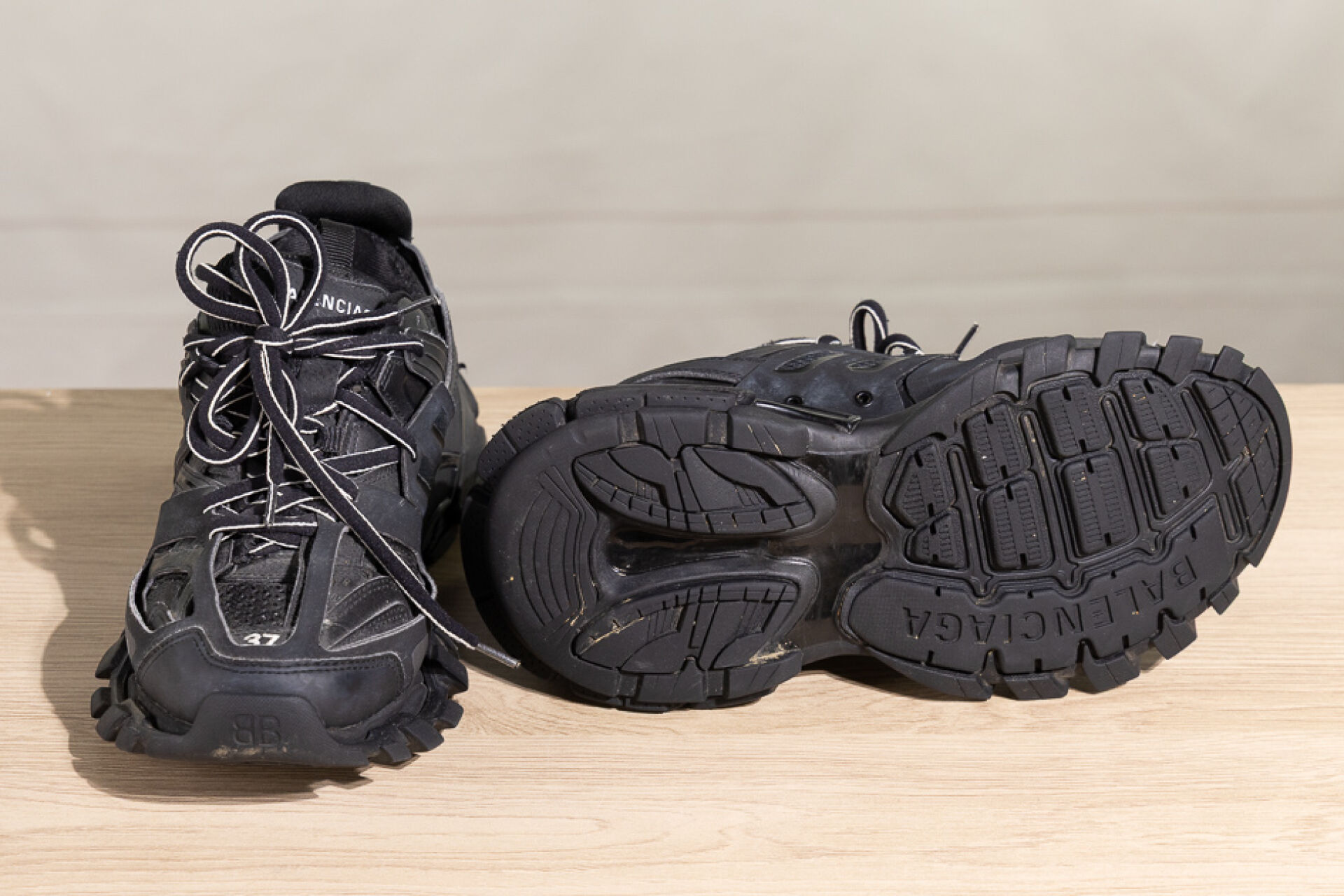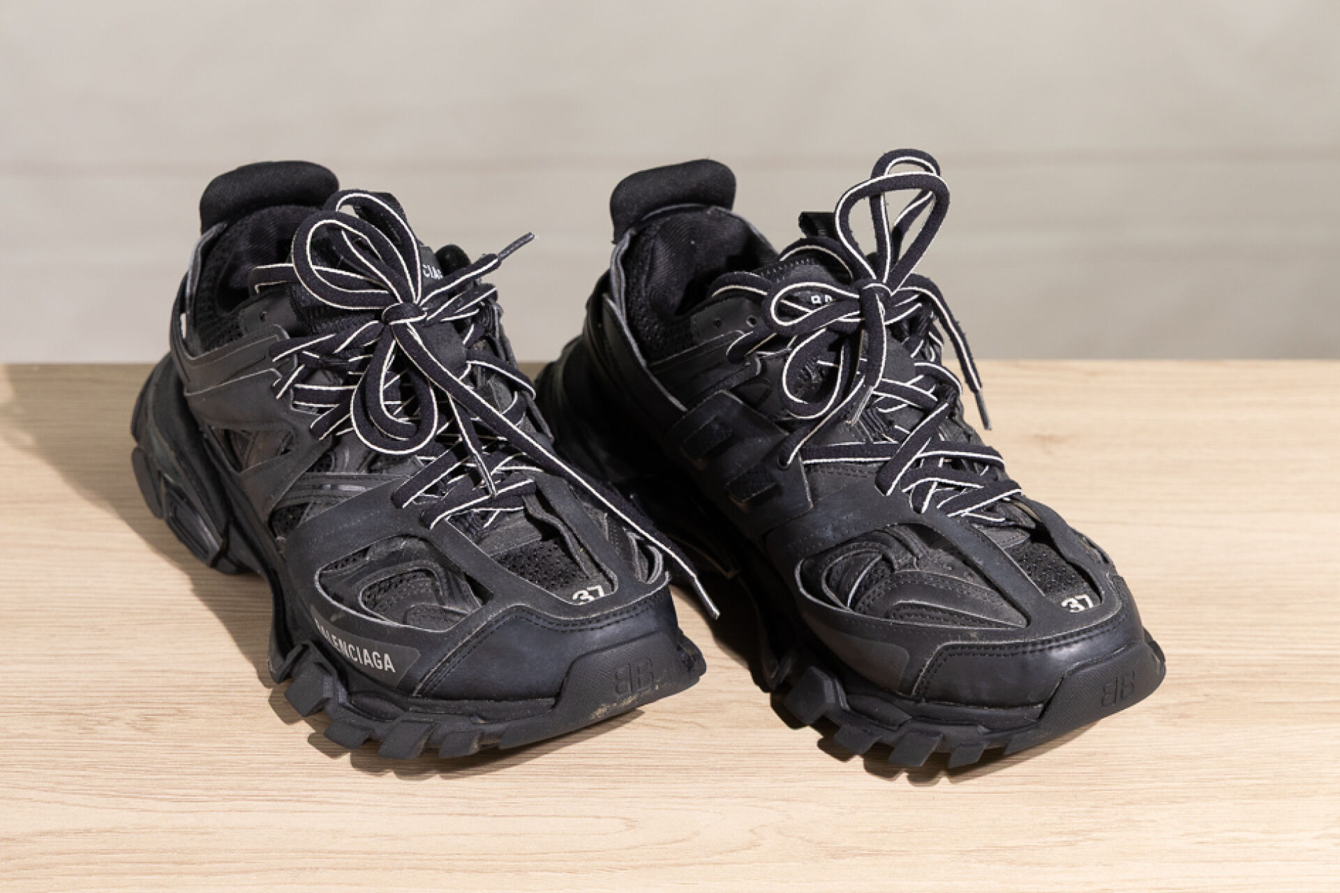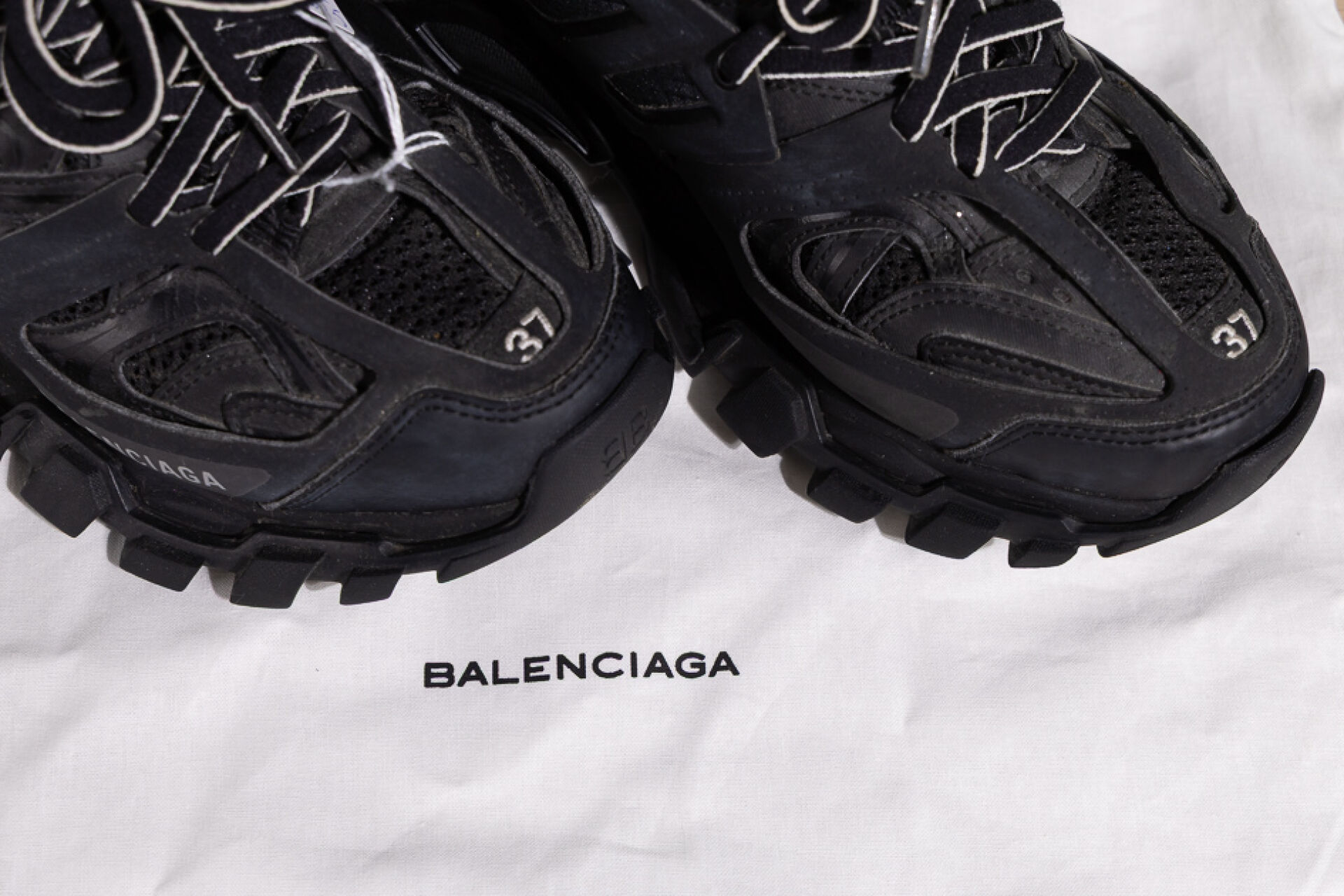BALENCIAGA - Paire de baskets noires, modèle TRACK à lacets bicolores. Pointure 37 Déjà porté