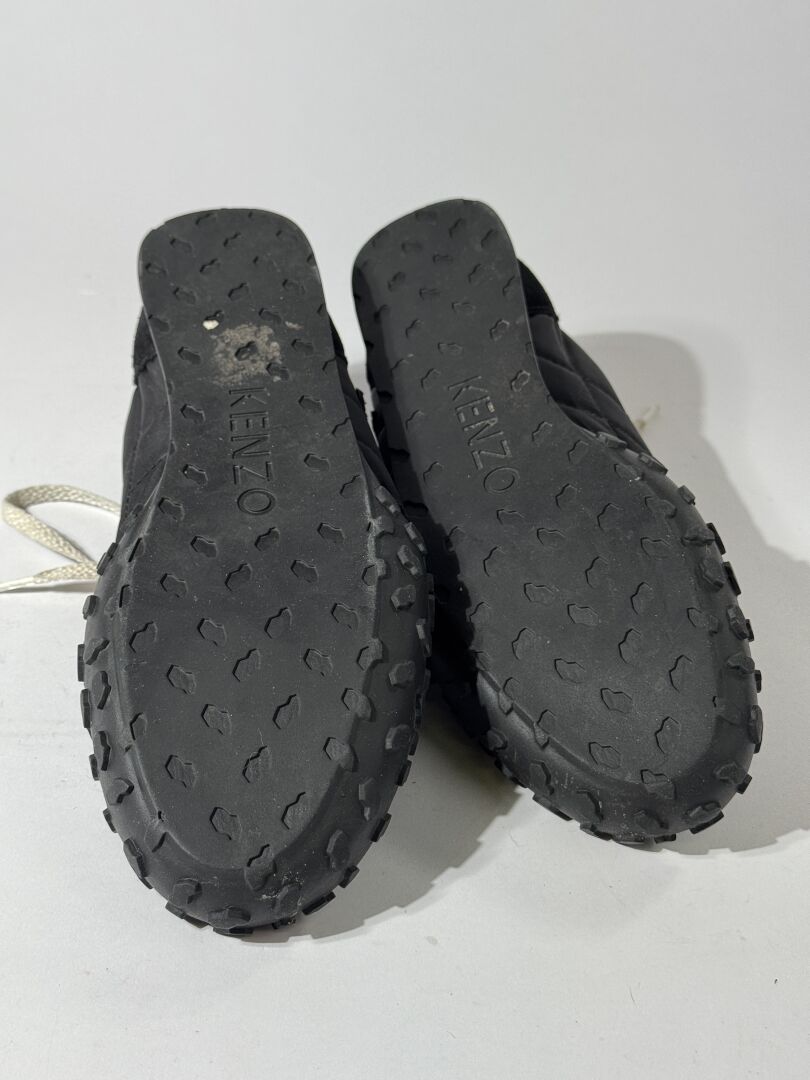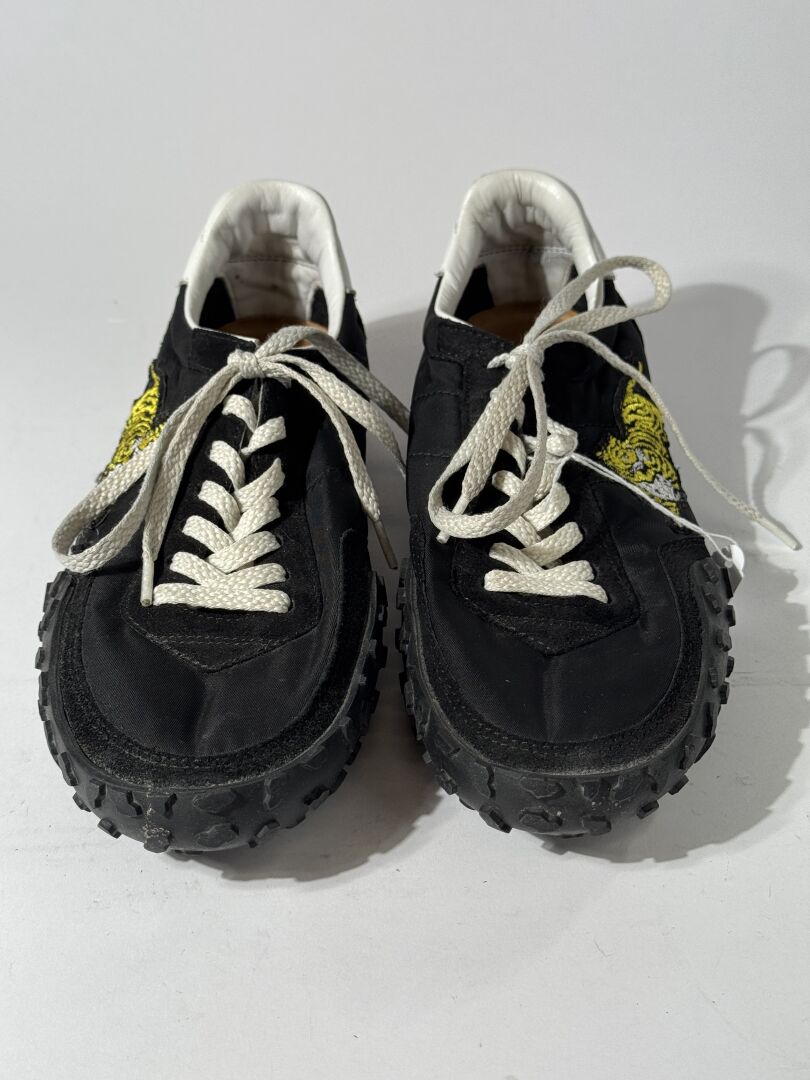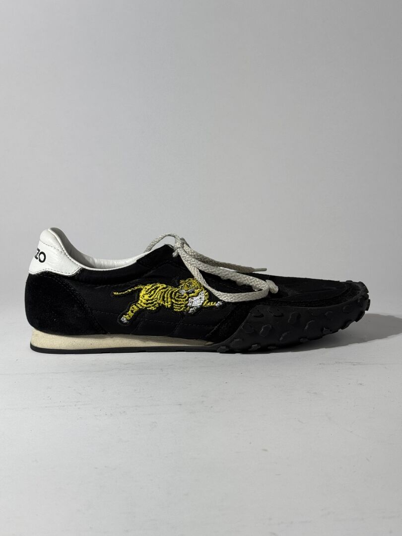 KENZO - Paire de baskets en tissu et cuir noir et blanc, rebrodé du tigre, lacets. Pointure 38 Peu portées, bon état général