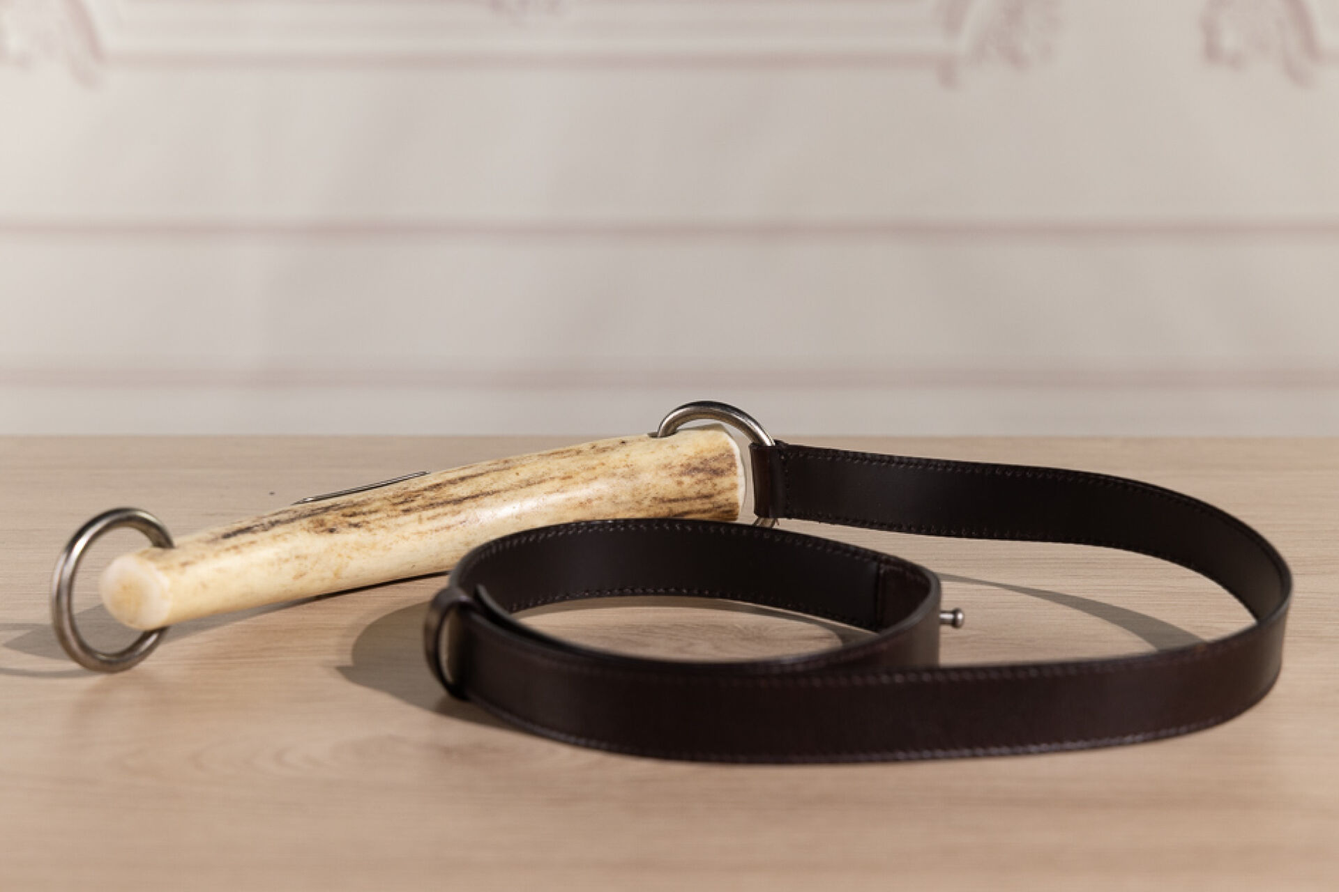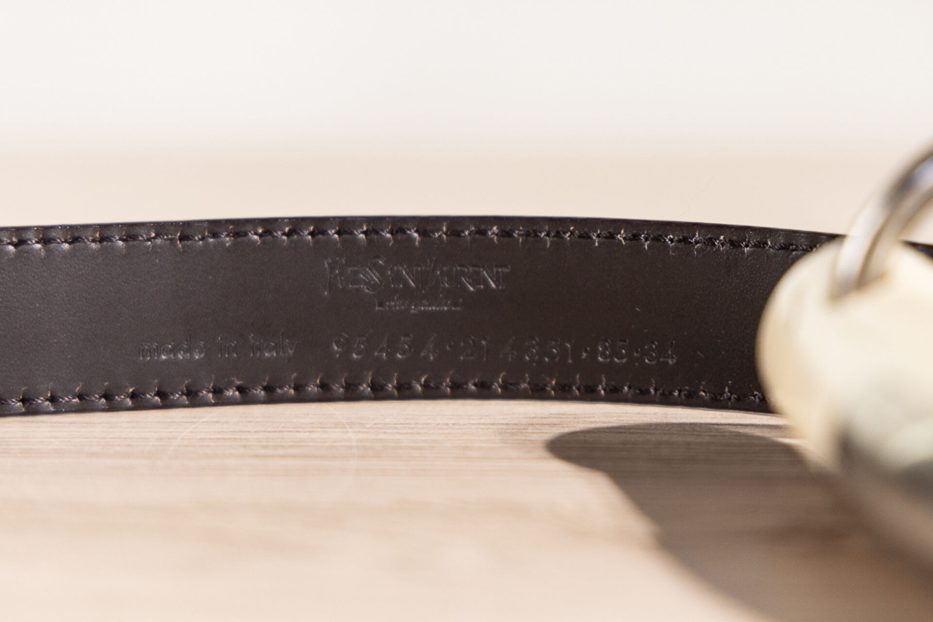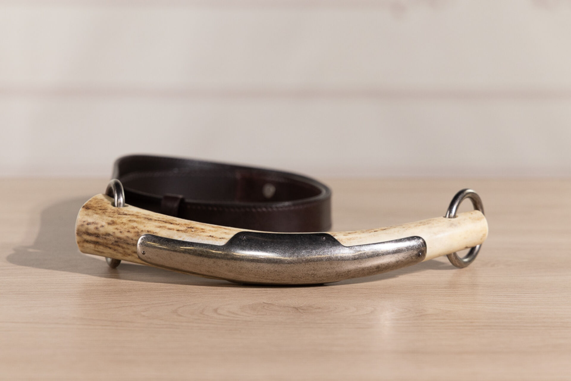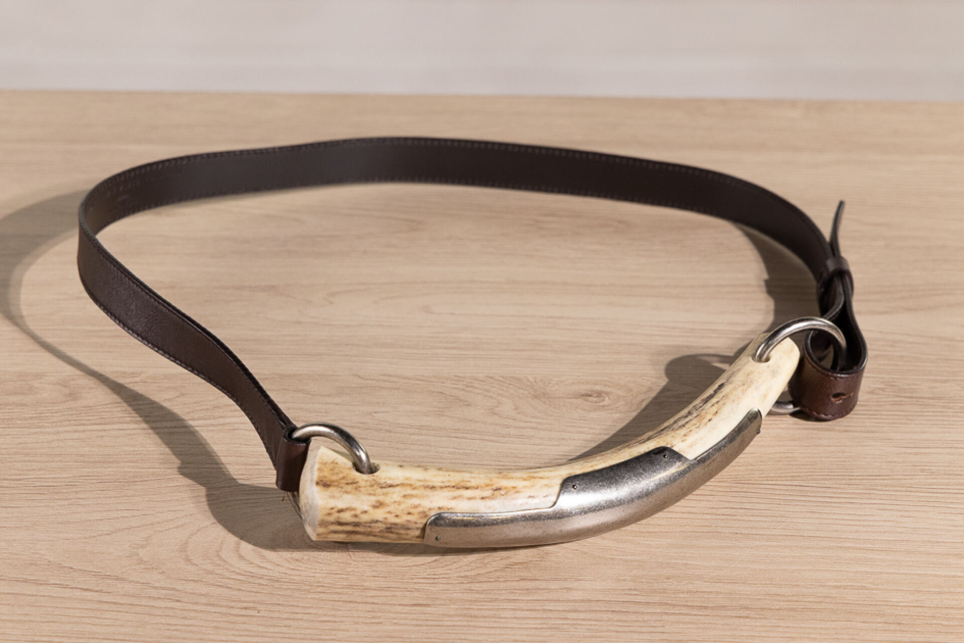 YVES SAINT LAURENT Rive Gauche - Ceinture "Mombasa" cuir marron et boucle en corne et métal chromé. Taille 85 Très bon état