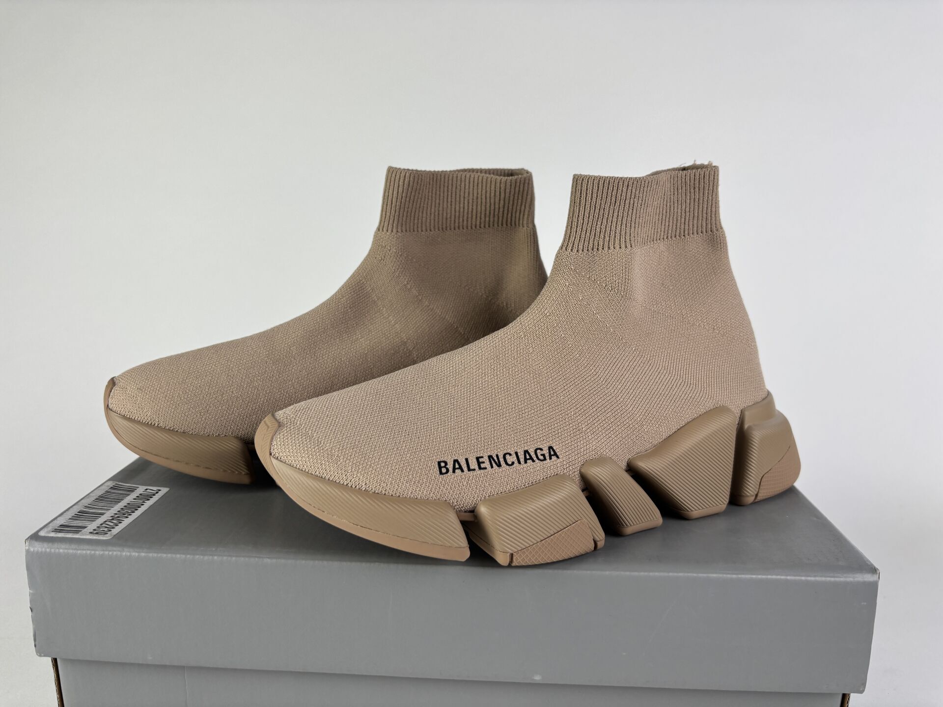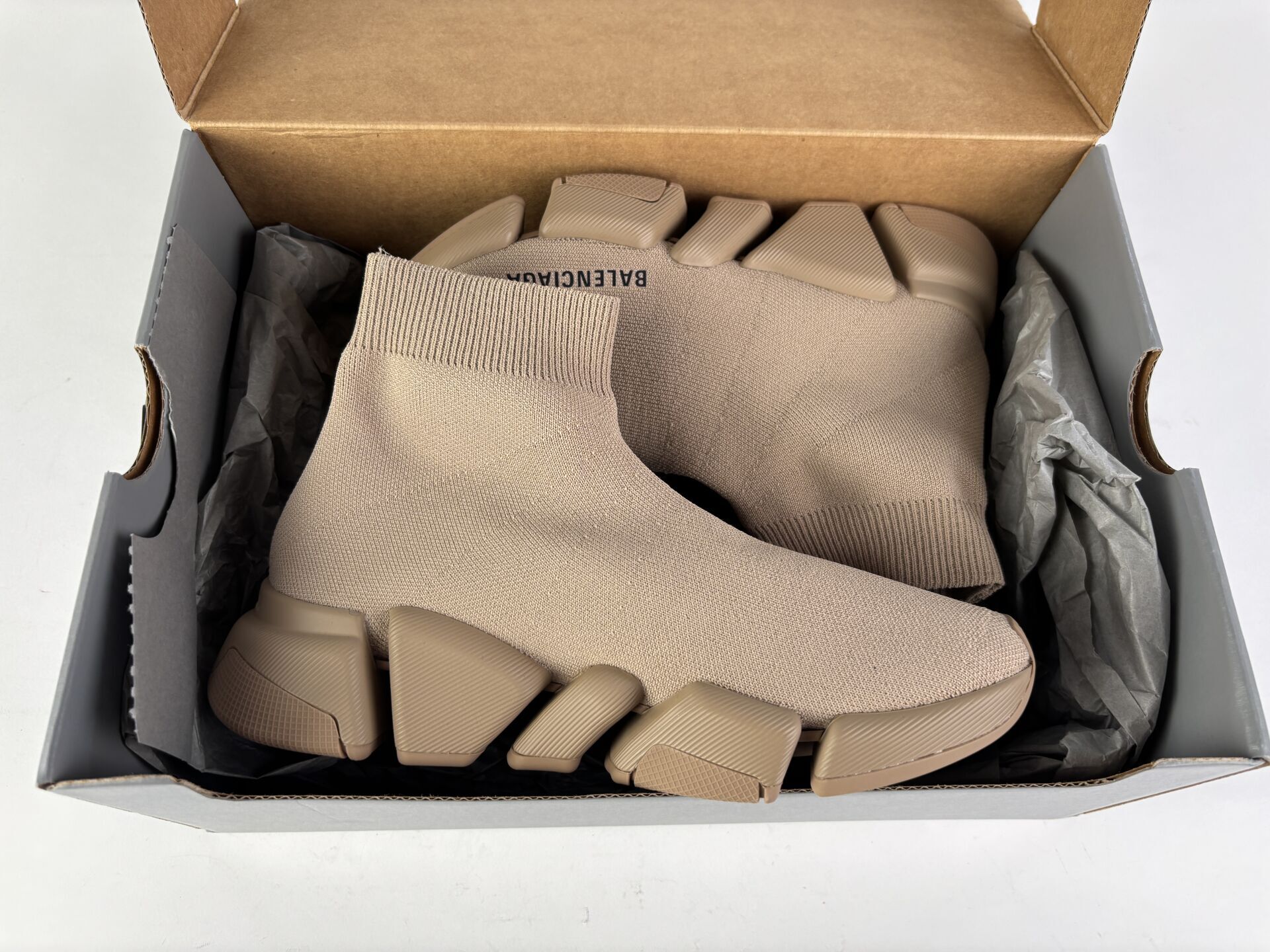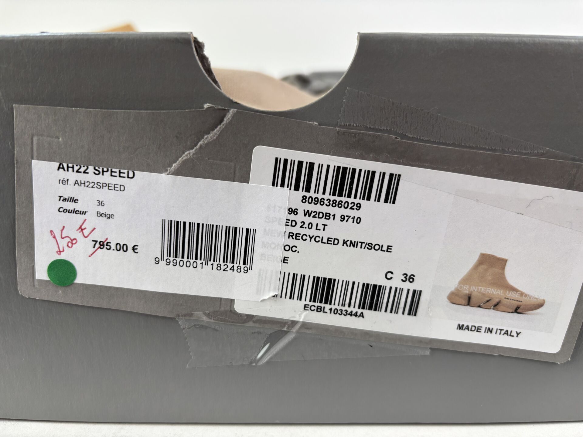 BALENCIAGA - Paire de chaussures/chaussettes montantes "Speed 2.0", mailles recyclées beige, semelle extérieure découpée à la couleur. Pointure 36 Très bon état