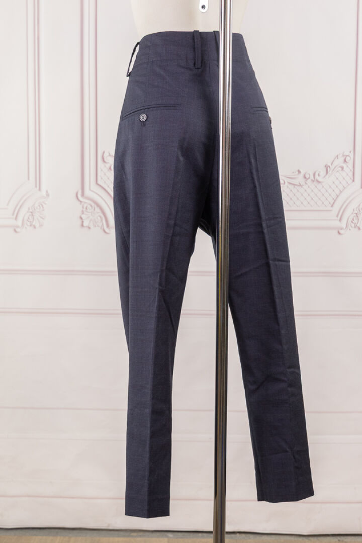 ISABEL MARANT Etoile - Pantalon à pinces, prince de Galles bleu, rouge et noir, deux poches horizontales boutonnées au dos. Taille indiquée 42 Bon état