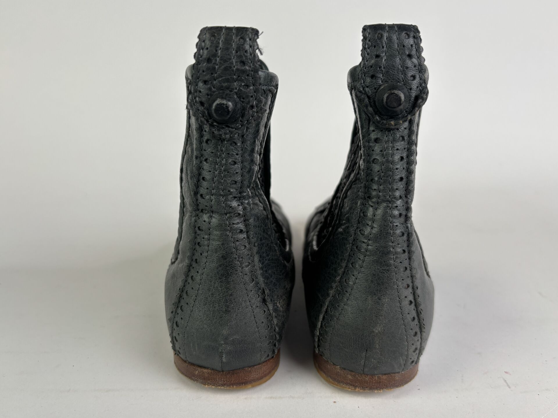 BALENCIAGA - Paire de boots, cuir effet froissé vert sapin. Pointure 35 Etat d'usage