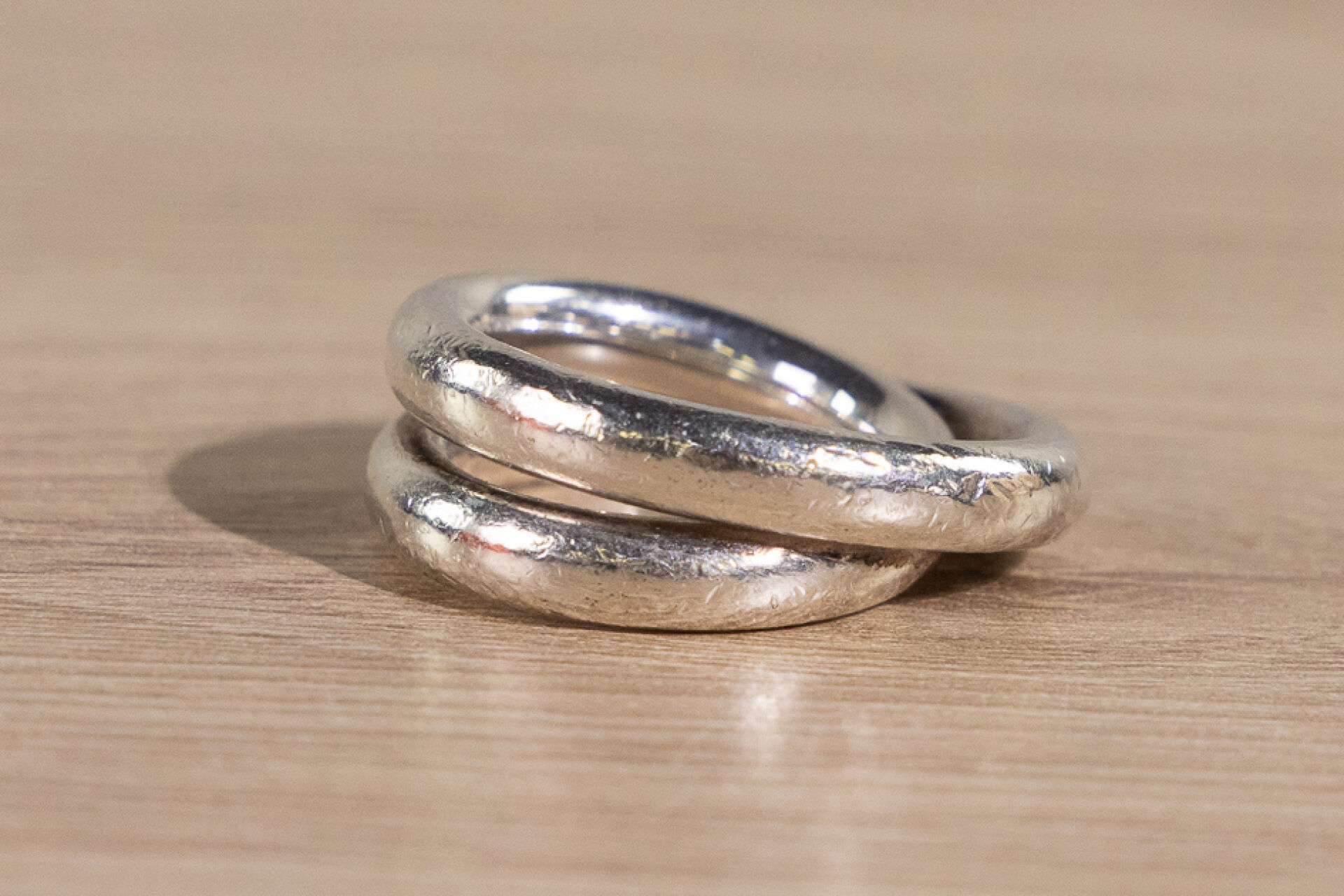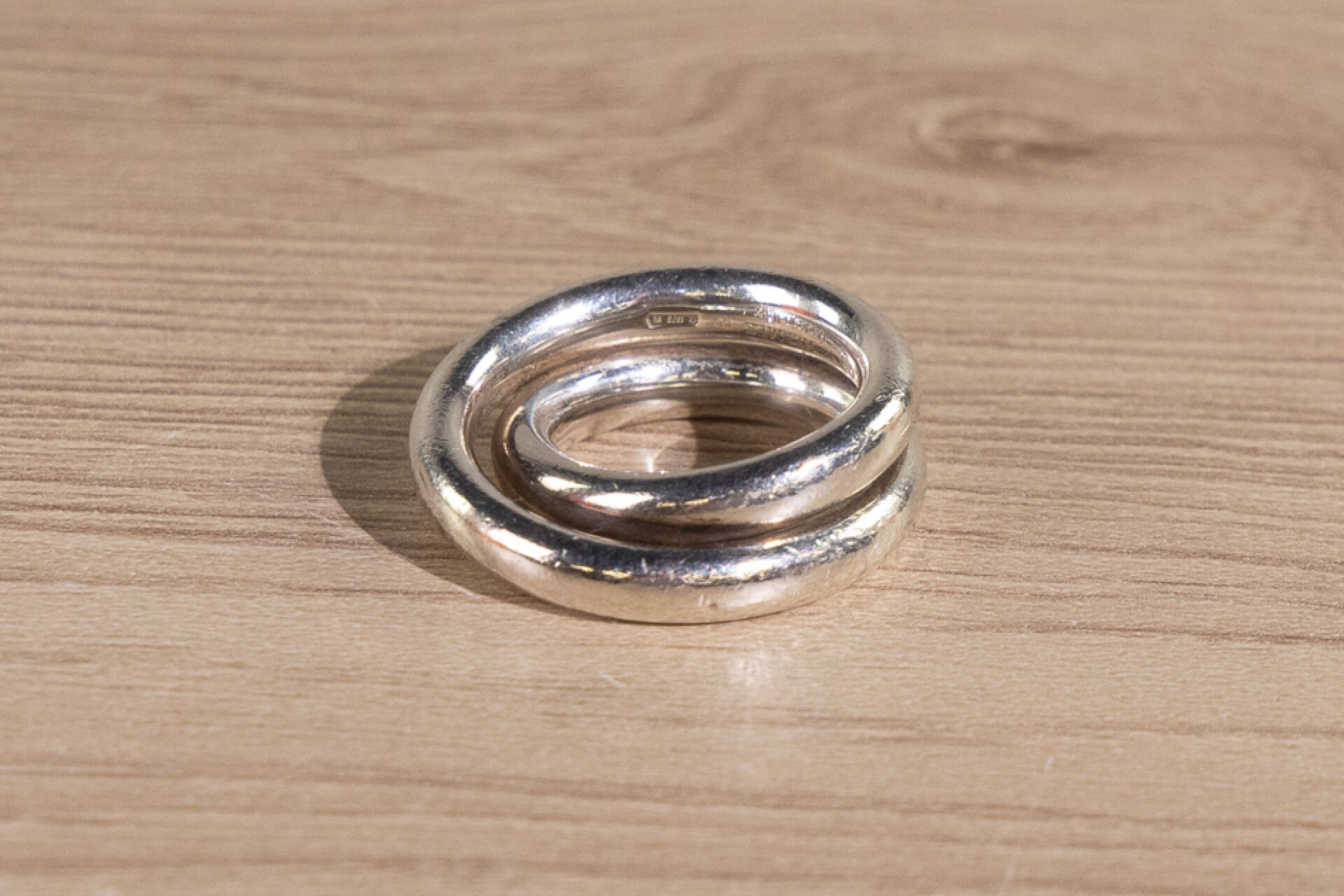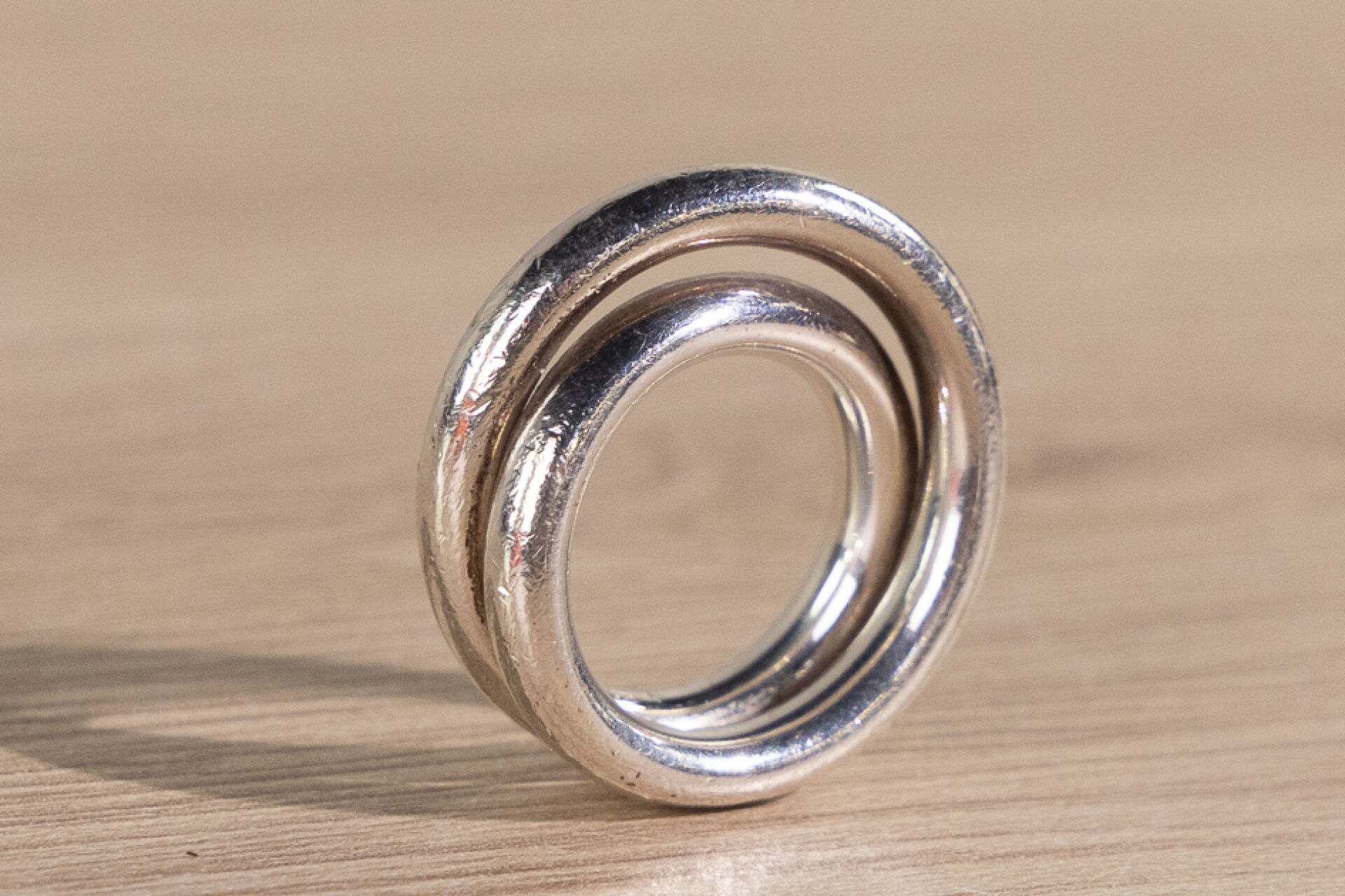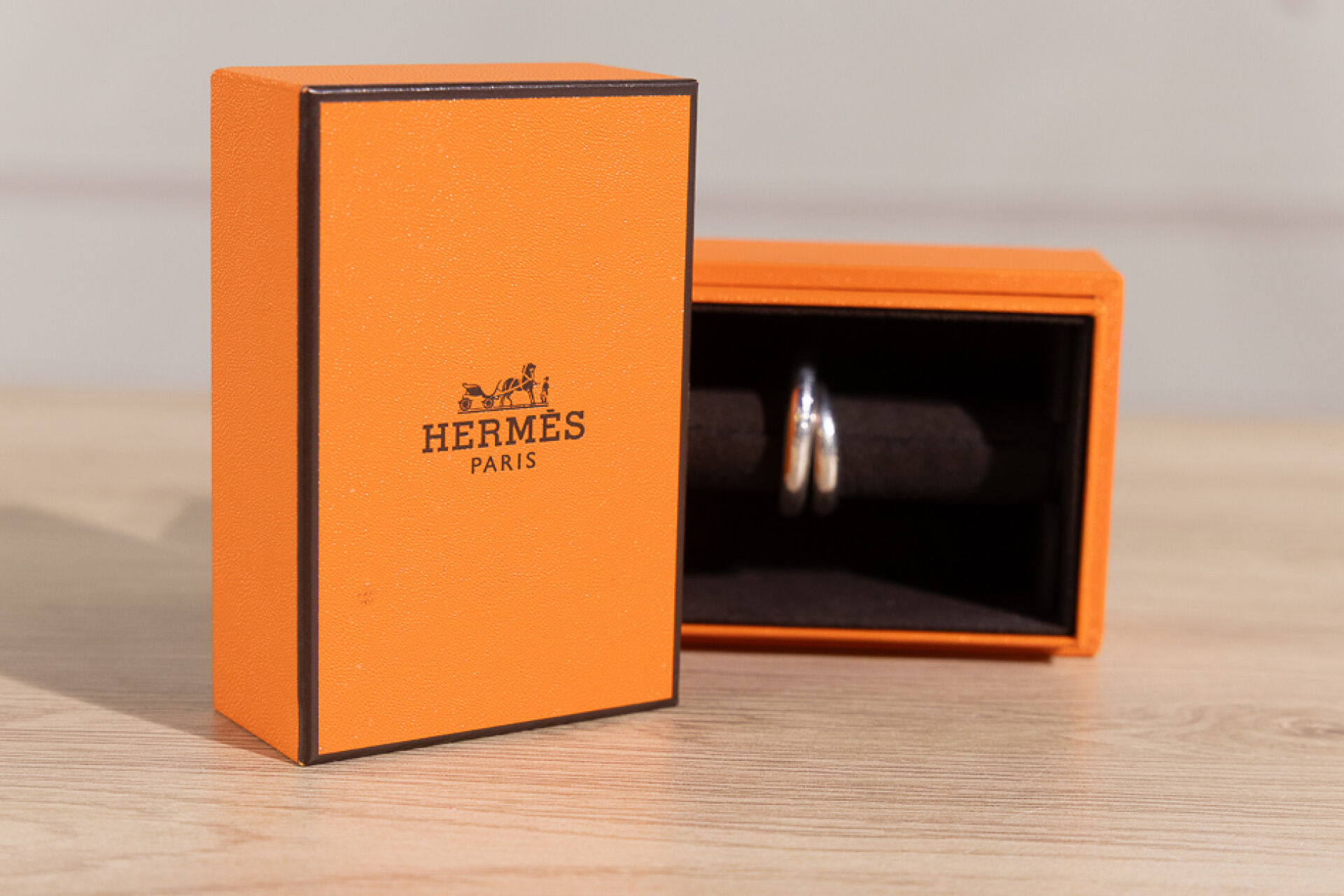 HERMES Paris - Bague modèle "Vertige" en argent 925 millièmes. Dans son écrin. Tour du doigt 50 - Poids : 16,68 gr Rayures d'usage