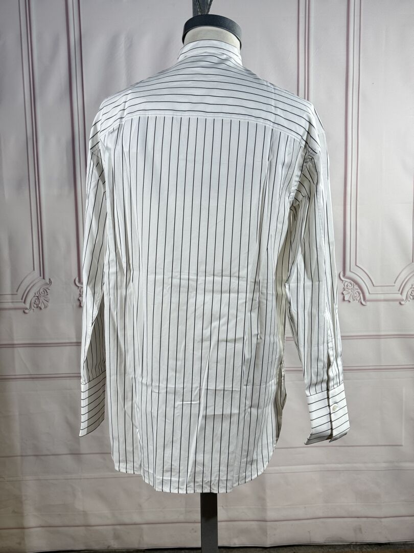 SALVATORE FERRAGAMO - Chemise homme à plastron et col montant boutonné en coton à fines rayures marron, manches longues. Taille indiquée 39 Étiquette d'origine - Non portée cependant salissures