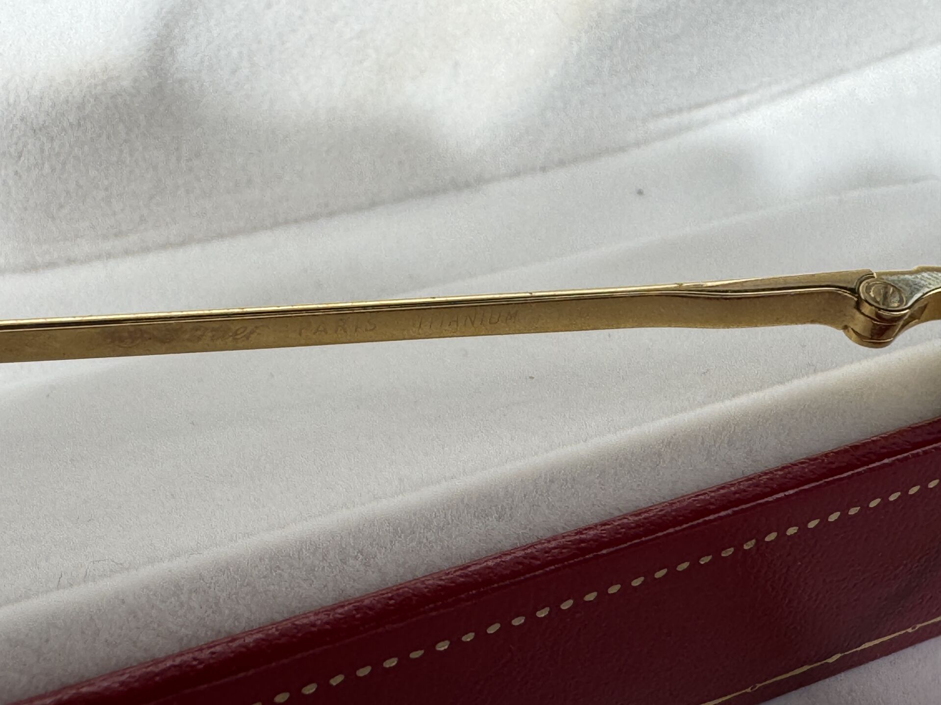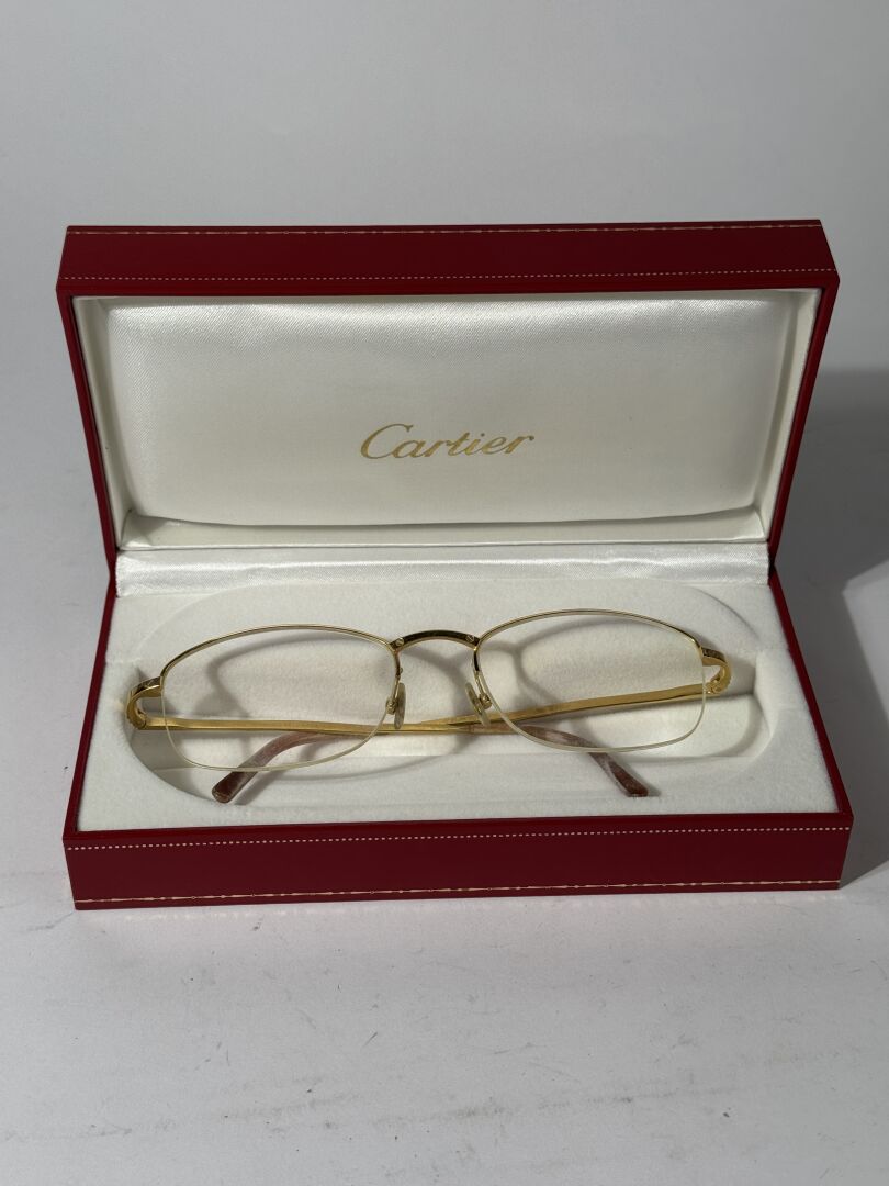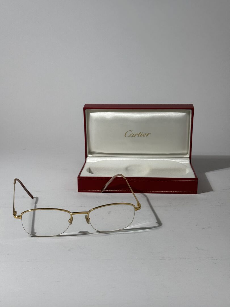 CARTIER - Paire de lunettes de vue, monture en métal doré. Écrin. Usures