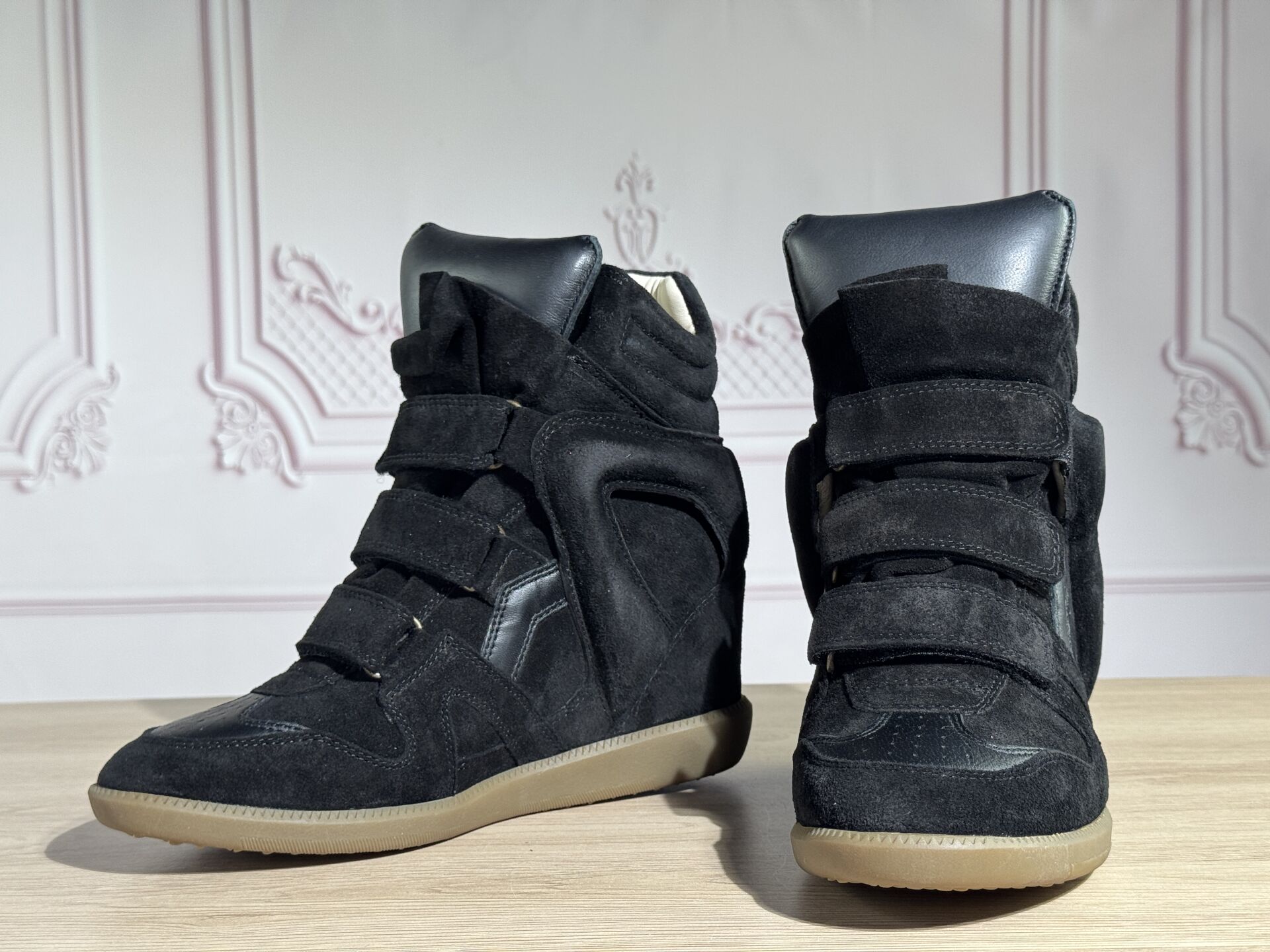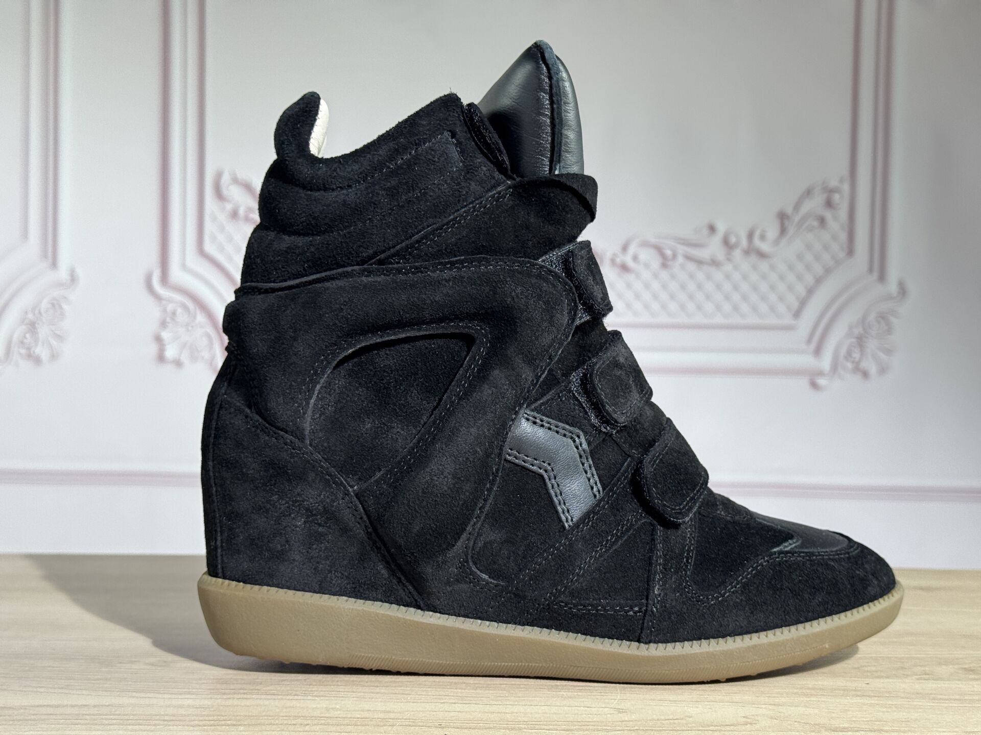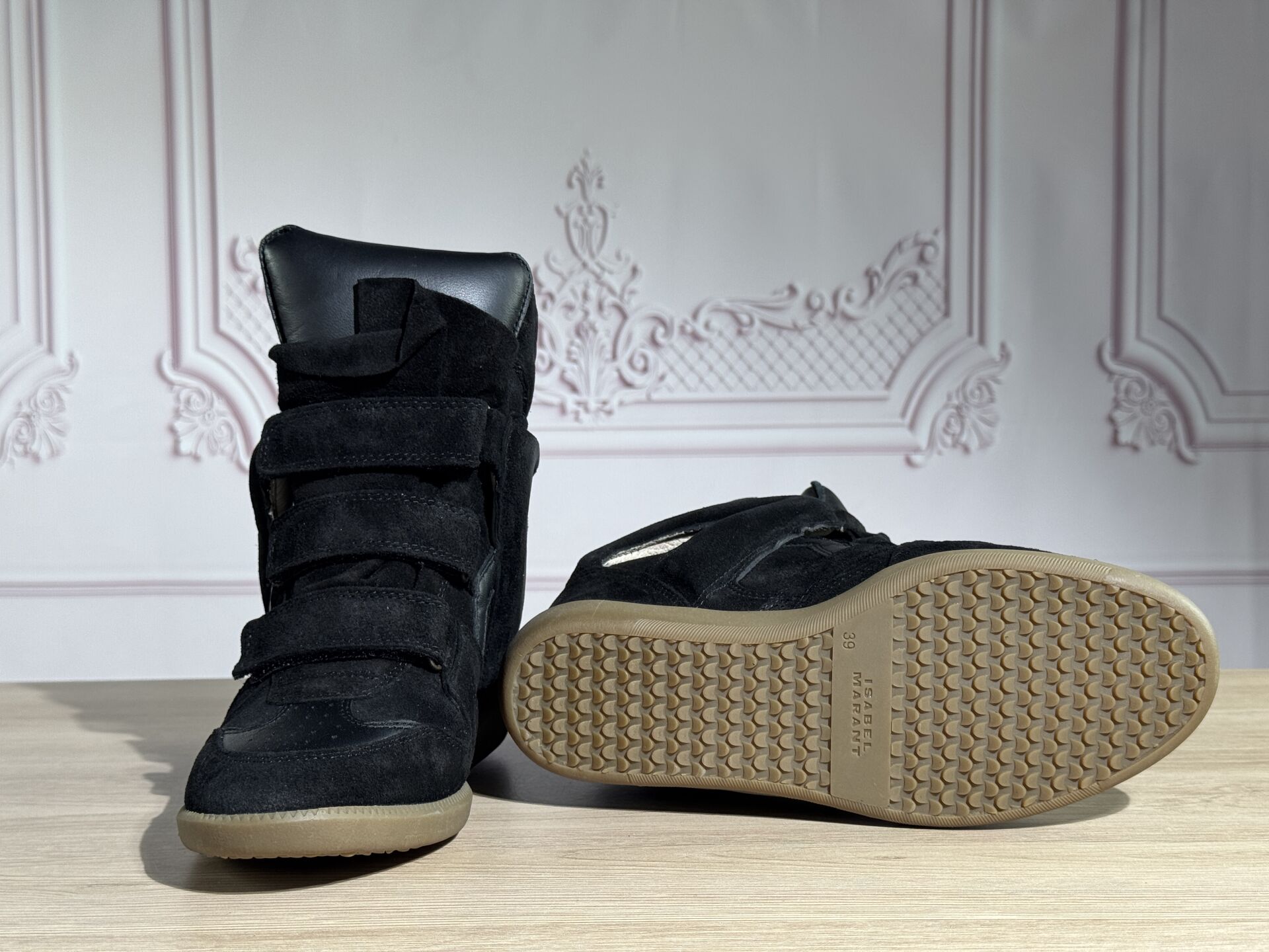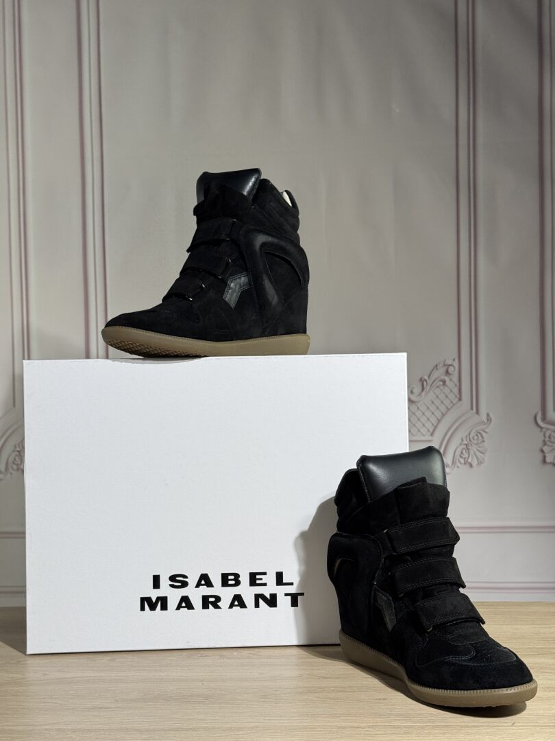 ISABEL MARANT - Paire de chaussures montantes modèle "Bekett", daim et cuir noir, scratchs. Dans leur boite. Pointure 39 Non portées