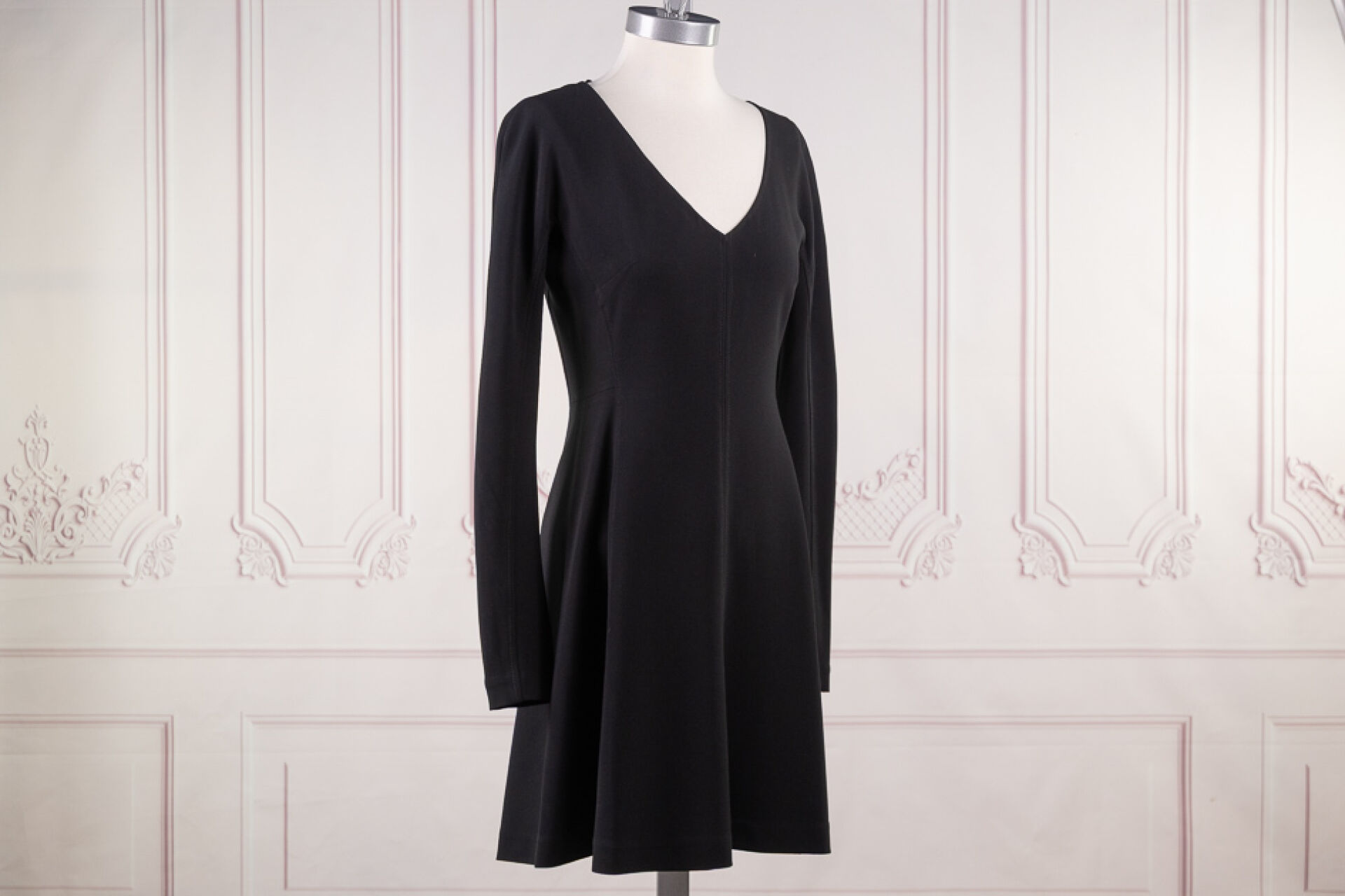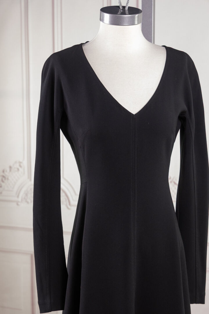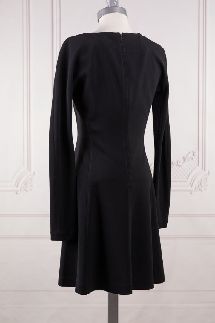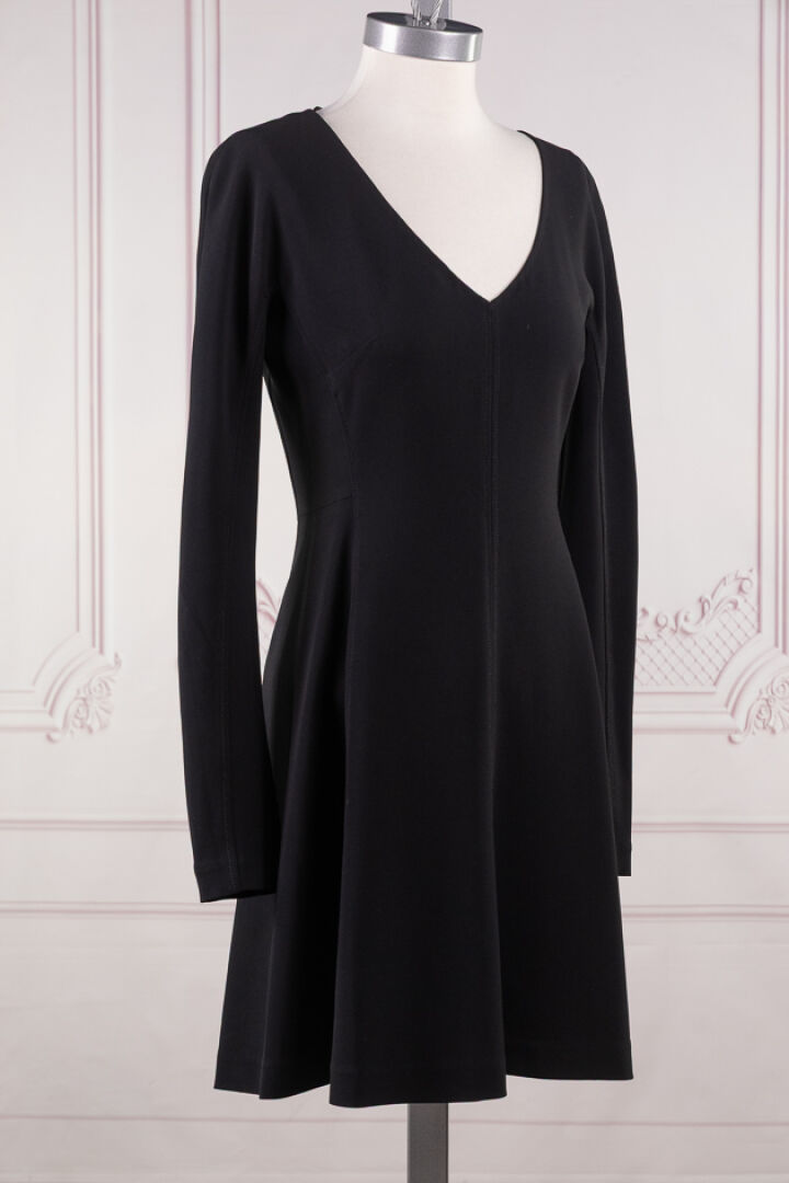 DIANE VON FURSTENBERG - Robe noire de forme évasée, encolure en V, manches longues. Taille indiquée 4 Très bon état