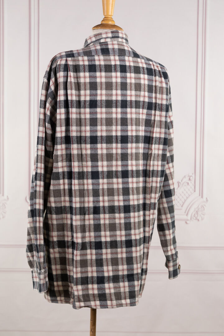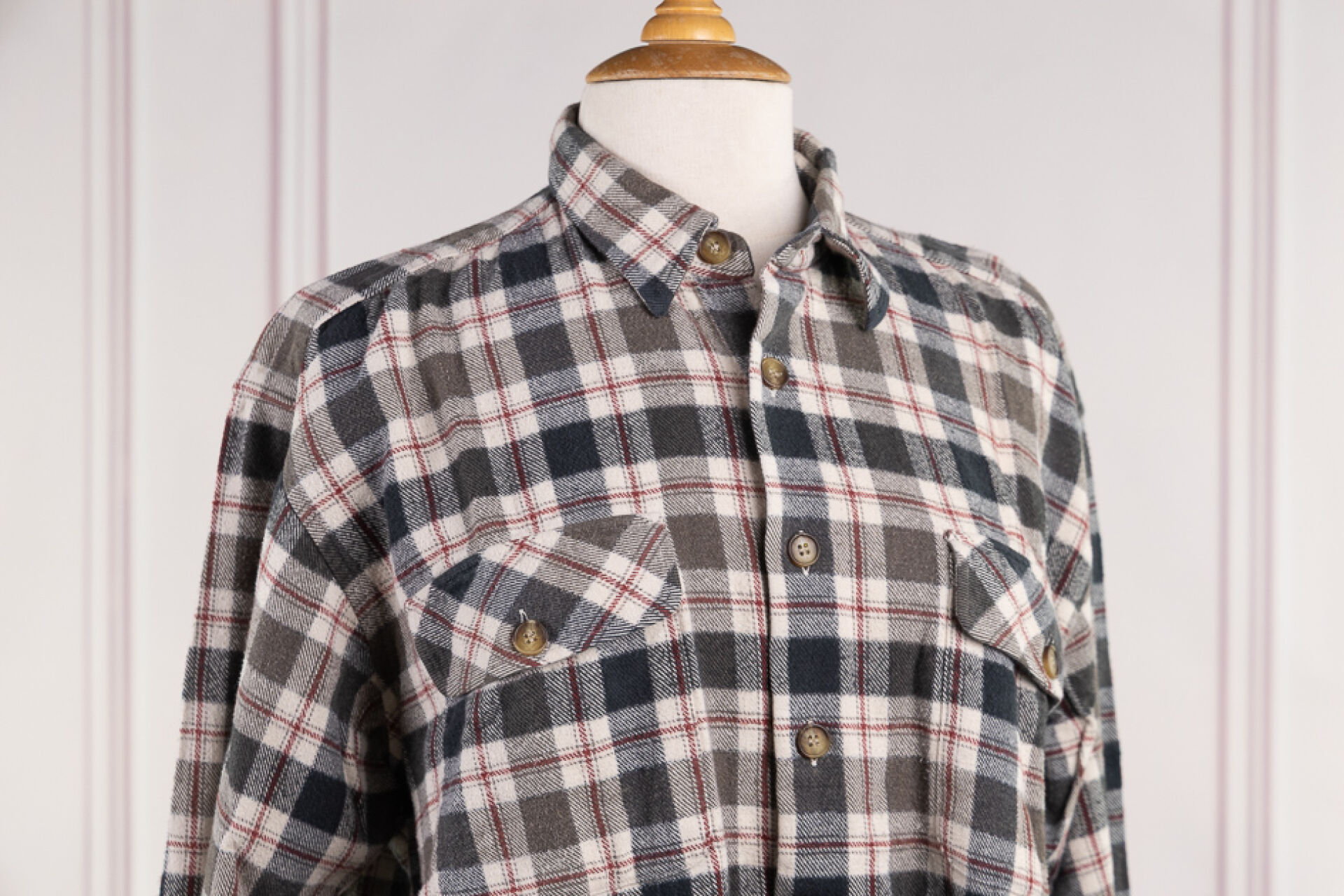 BURBERRY - Chemise homme en coton imprimé tartan kaki, rouge et blanc, deux poches poitrine à rabat boutonné, manches longues. Taille 39-15,5 Déjà portée