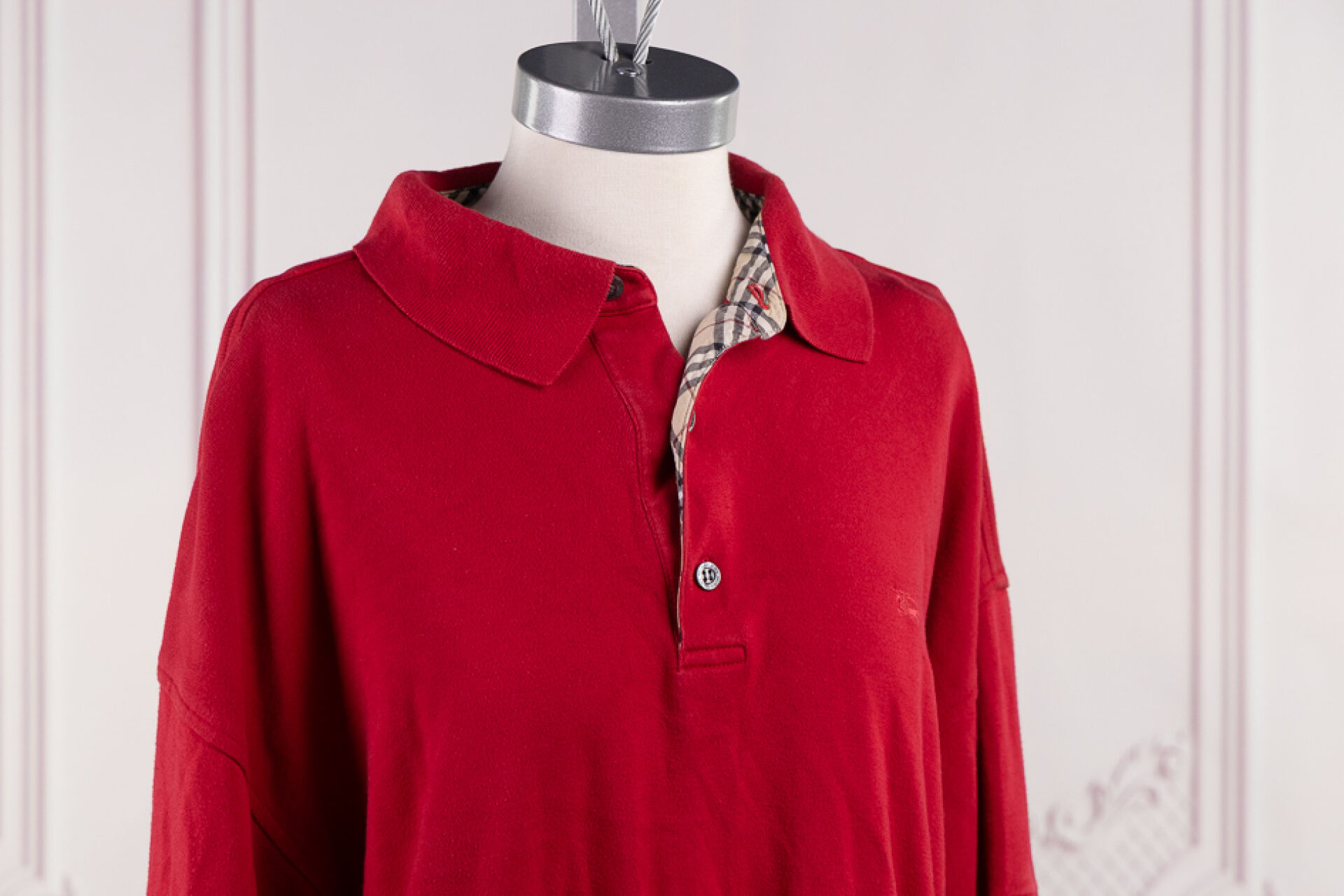 BURBERRY - Polo/sweat rouge homme à manches longues. Taille XL Déjà porté, bouloches