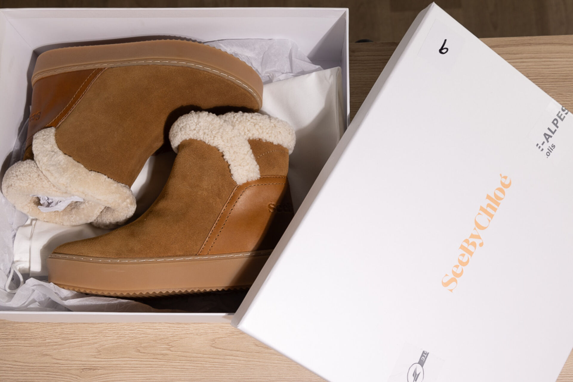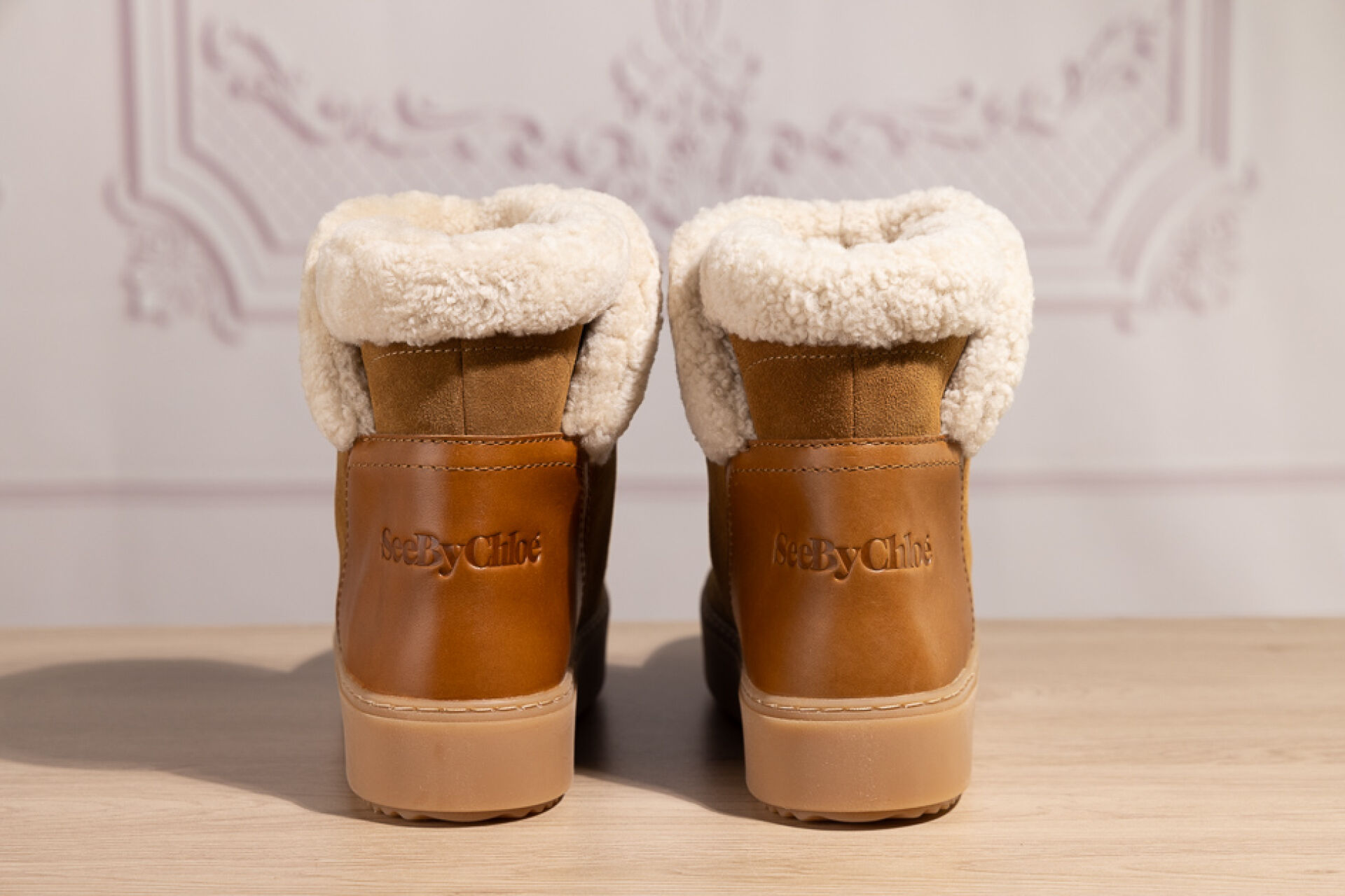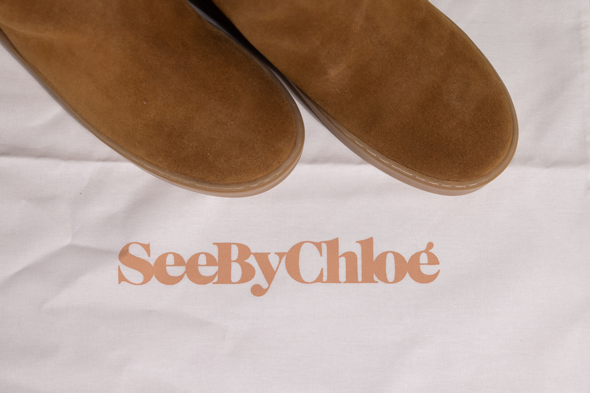 SEE BY CHLOE -,Paire de boots "Juliet" en peau retourné et cuir naturel. Boite. Pointure 39 Non portés