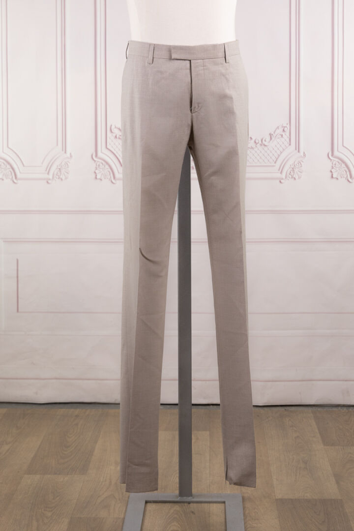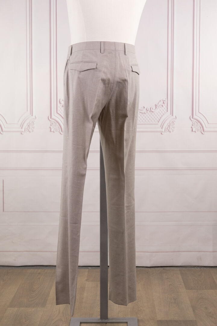 DIOR - Pantalon homme en laine et soie beige, poches plaquées en biais, onglets non faits. Taille 50 Provenance : Ex lot 349 de la vente du 23 juin 2025 chez Aponem : "Garde-robe Black and White de Monsieur - l'univers d'un couturier international iconique."